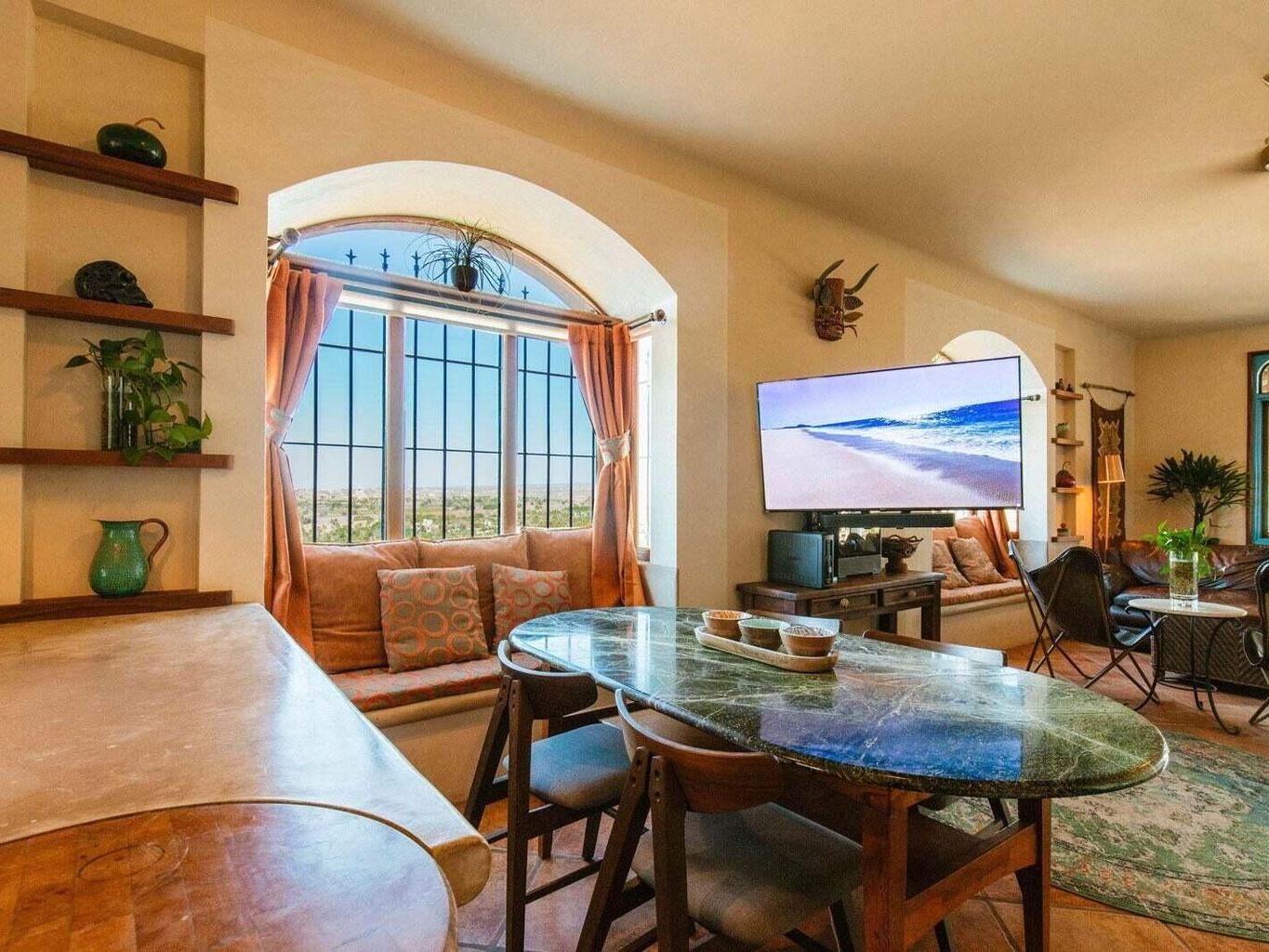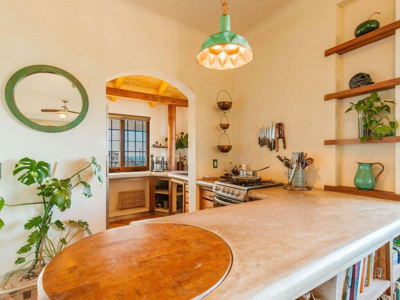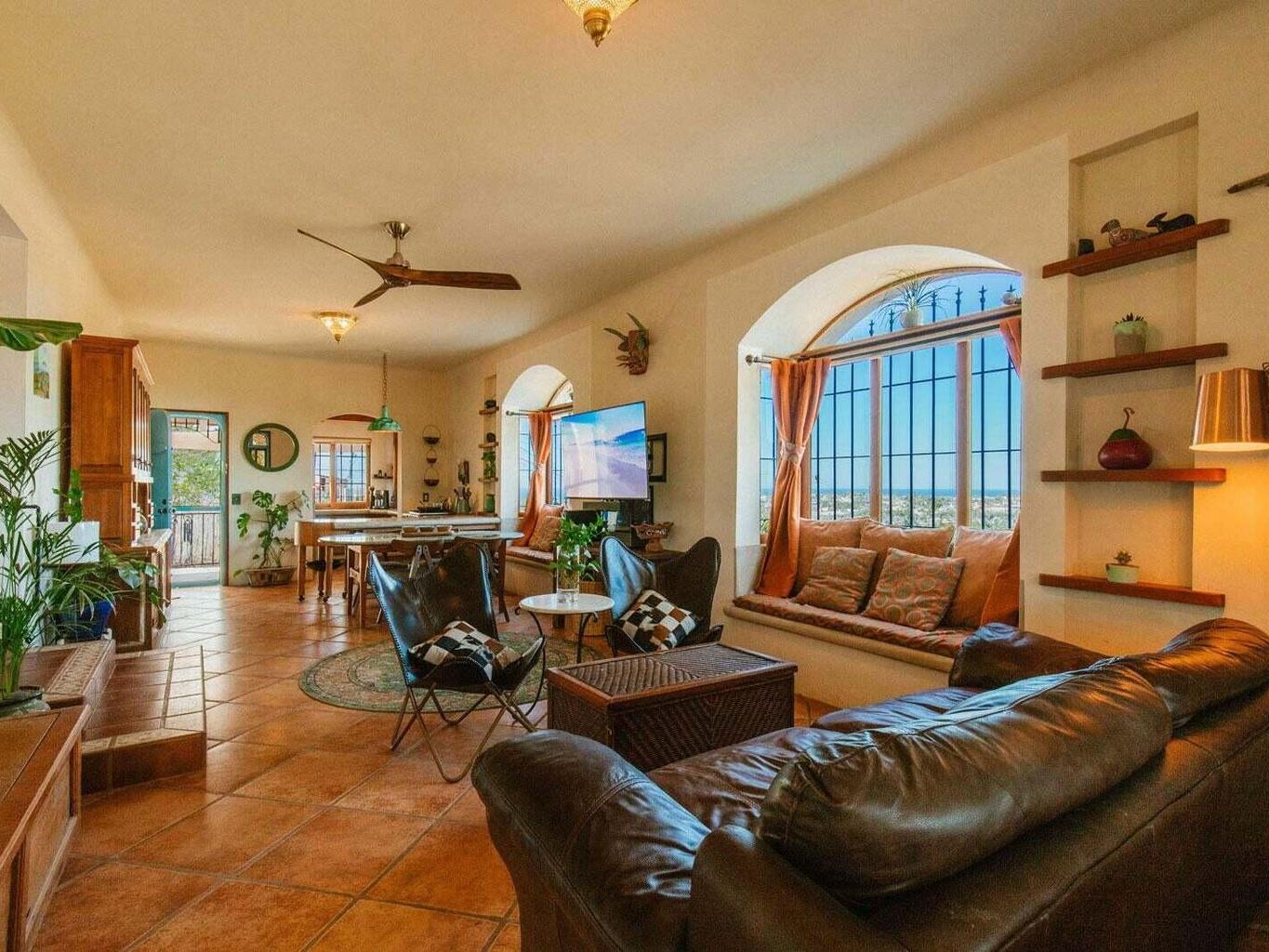 Situated above the historic neighborhood of San Juan Viejo, this majestic 2 bedroom, 1 bath, 2 shower home sits atop a very private hill (one of the highest in the area) & offers unparalleled 360 degree views of sunsets over the ocean, moon rises over the mountains, and the entire lush green huerta. Centrally located, it's just a short walk to Doce Cuarenta Cafe, and then to downtown, a quick 5 minute drive to the nearest beach, and only 15 minutes to both Cerritos surf spot in the South, and La Pastora surf spot in the North. The local hiking and biking trail system is also easily accessed from your front door.