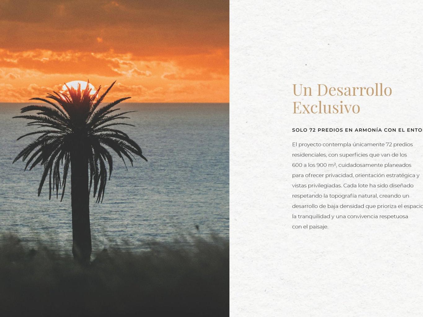 Commercial space/ security 24/7 Pickleball courts, underground electricity. Your residential community in Cerritos, LOTS IN HARMONY WITH THE ENVIRONMENT The project includes only 72 residential lots, with areas ranging from 600 to 900 m², carefully planned to offer privacy, strategic orientation, and privileged views. Each lot has been designed to respect the natural topography creating a low-density development that prioritizes space tranquility, and a respectful coexistence with the landscape.