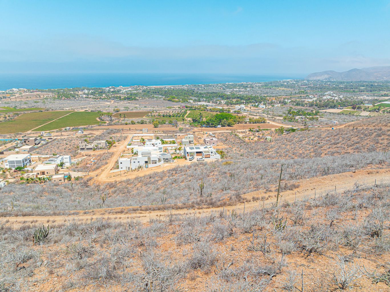 Above the palm groves and farms, on a hilltop in Pescadero's sought-after Potrero neighborhood, this homesite boasts breathtaking panoramic vistas of Pescadero's beach all the way to the point at San Pedrito, the town of Pescadero, and stretching as far as Todos Santos. A standout feature of this property is the inclusion of ''shovel ready''construction permits and engineered plans, providing a fast track to building and living in a your new home—an incredible value already baked into the sales price.The lot is conveniently located just 50 minutes from Los Cabos International Airport and 1.5 hours from La Paz Airport, situated in an up and coming neighborhood that is developing with pride of ownership luxury homes. Additionally, the seller has improved the road to ease of access.