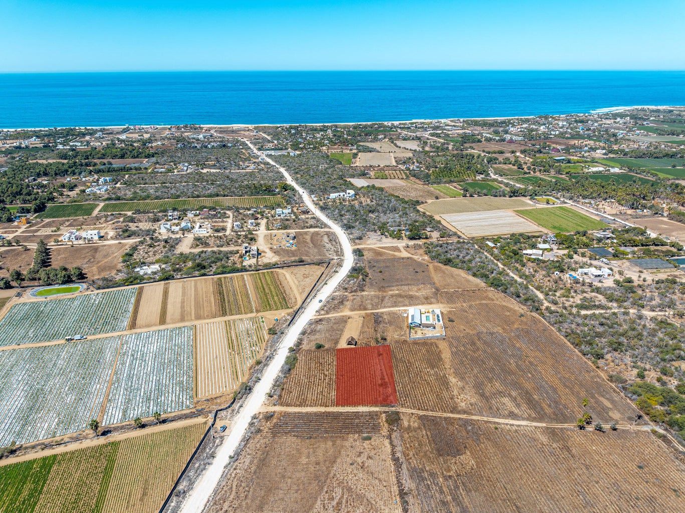 One of three gorgeous, contiguous lots in the hip and coveted area of El Pescadero, fifteen minutes south of downtown Todos Santos, Baja Bliss Lot 2 boasts over a half-acre (2444 SM) of buildable land. Discover the seamless blend of convenience and natural beauty with this exceptional property situated directly on the well-maintained Baja Beans road. The land is perfectly shaped, slightly elevated and gently sloped ground level allowing expansive and unobstructed ocean views from the second floor and third story roof decks. Ample exterior space for guest casitas, a large pool with jetted tub, outdoor kitchen with al-fresco dining, and fertile soil for vegetable and herb garden plots flanked by fruit trees.