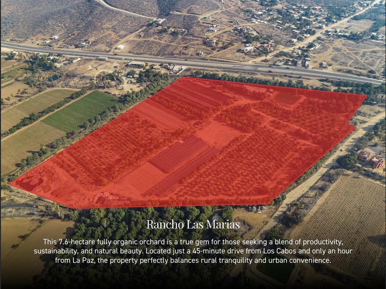 Rancho Las Marías is a rare 7.6-hectare (18.77-acre) fully operational organic orchard located in the heart of El Pescadero, one of Baja California Sur's most desirable and fast-growing lifestyle destinations.