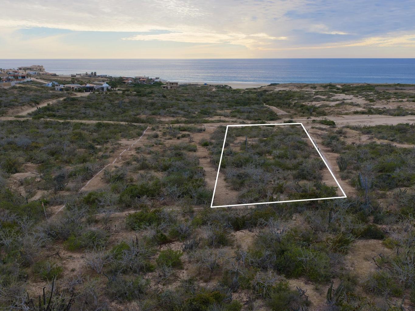 Ocean view lot for sale in the gated beachfront community of Rancho Las Margaritas, located 15-20 minutes north of Cabo San Lucas with easy access from Highway 19. This Pacific Ocean view homesite offers stunning ocean, desert, and mountain views, incredible sunsets, and a peaceful natural setting.