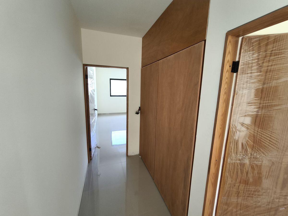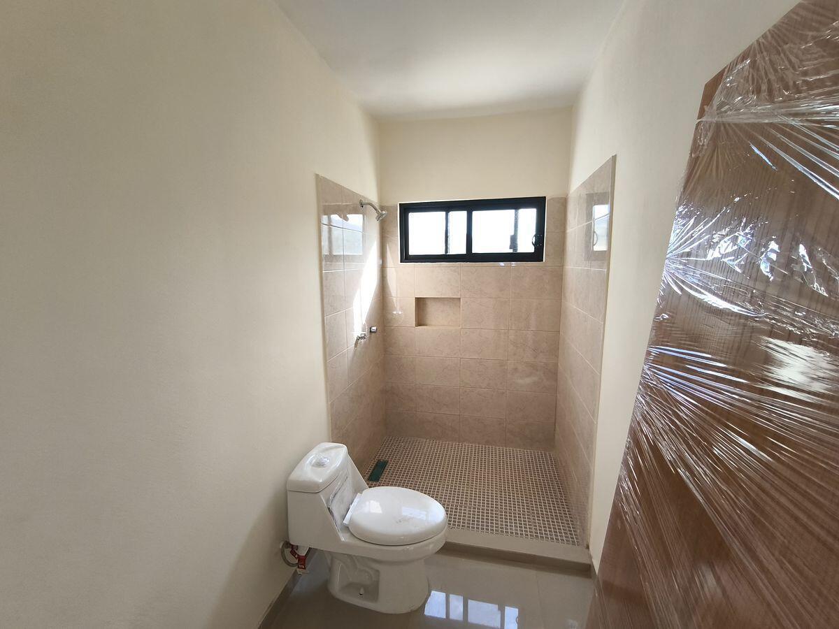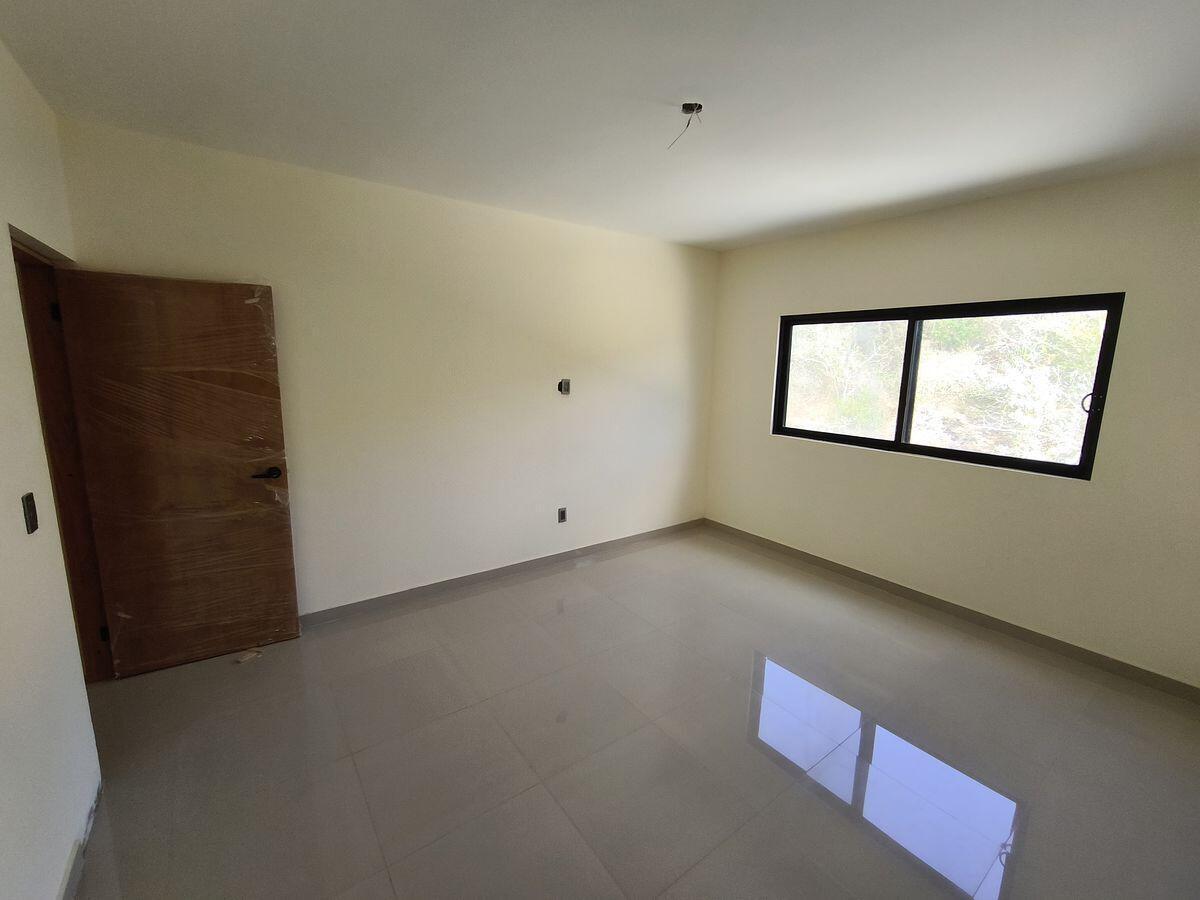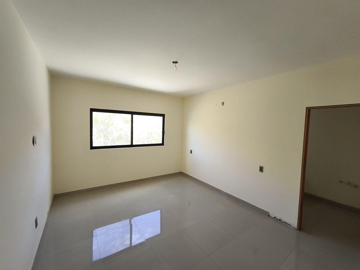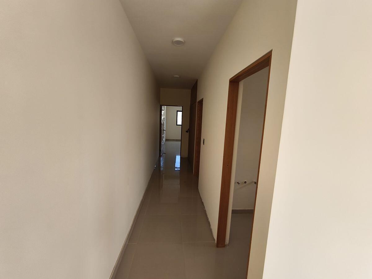 A central staircase leads to each floor. The kitchen, dining room, and living room are in the front of each unit. The primary bedroom with an in suite bathroom is at the back of the unit, with the second bedroom in front of it. The second bathroom is separate and can be used by both guests and the occupants of the second bedroom. The design is modern Mexican with tile floors in the living room, kitchen and bath