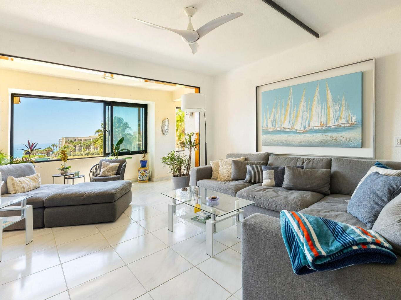 Rare opportunity to own a fully renovated oceanfront condo in the highly desirable Casa del Mar. Priced to move, this turnkey residence features an open-concept design that maximizes space, natural light, and unobstructed Sea of Cortez views. High-end finishes and seamless indoor-outdoor living create strong appeal for both personal use and vacation rentals. Resort-style amenities include nine heated pools, beach club, beachfront dining, gym, tennis and pickleball courts, spa, and more. With 24/7 security, concierge, and room service, this property offers excellent rental income potential in one of Cabo's top beachfront communities.