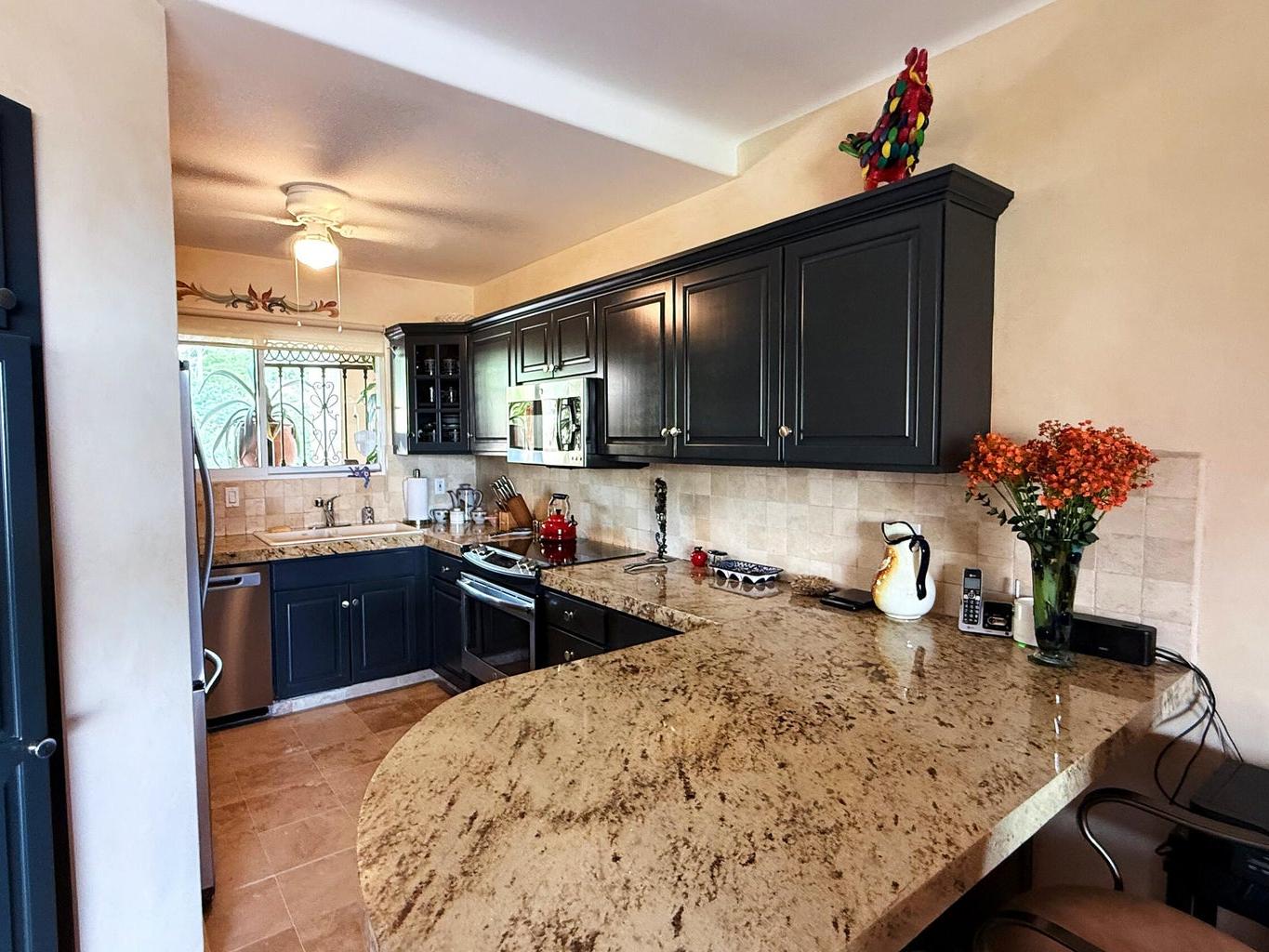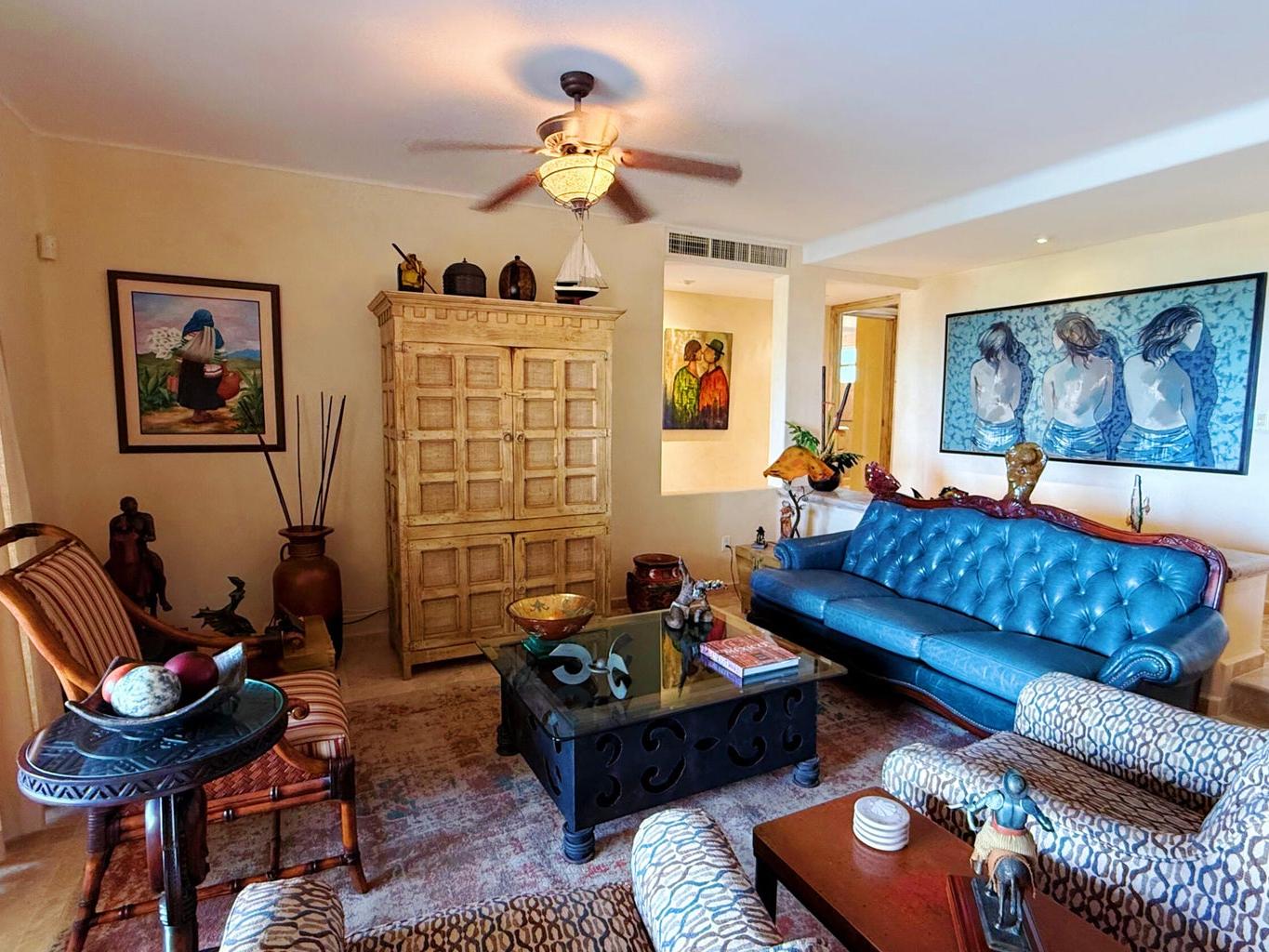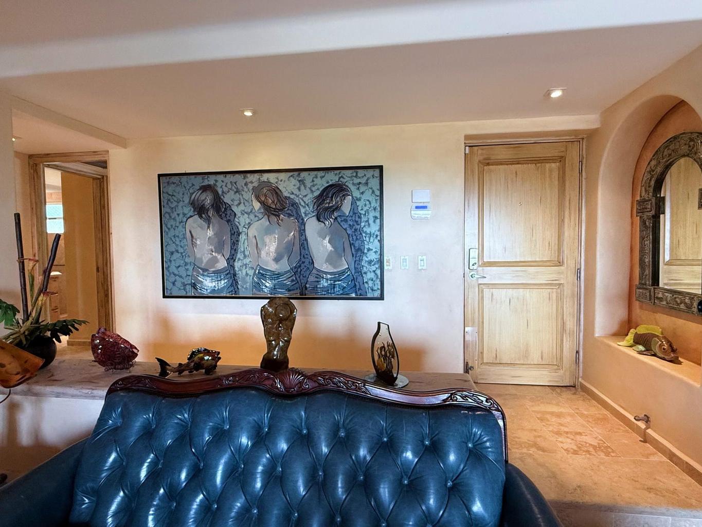 Condominium in excellent condition, with an ocean view, high-quality furniture as well as art items. High quality huracane shutters; condominium is ready for you to bring only your personal belongings and settle in. 24/7 security, pool, jacuzzi, barbecue area, palapa, elevator, tennis court, and gardens in the common area. great golf course. The parking in front of the building is for one car, the second car shoud park in the white marked curb.Pleasant community, you will be able to enjoy the tranquility of your home in this condominium that is waiting for you.