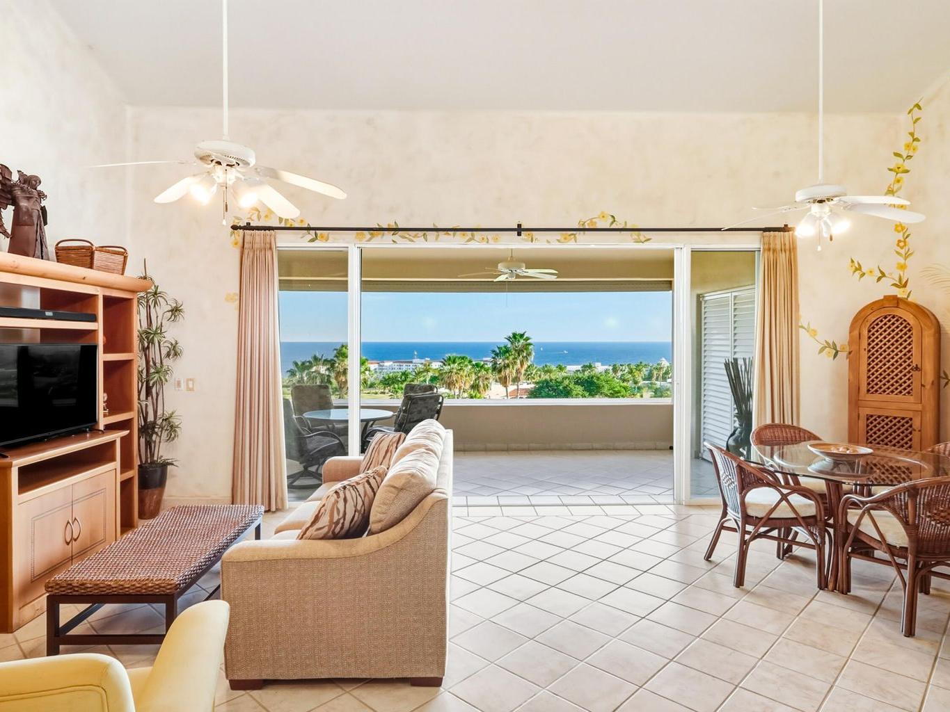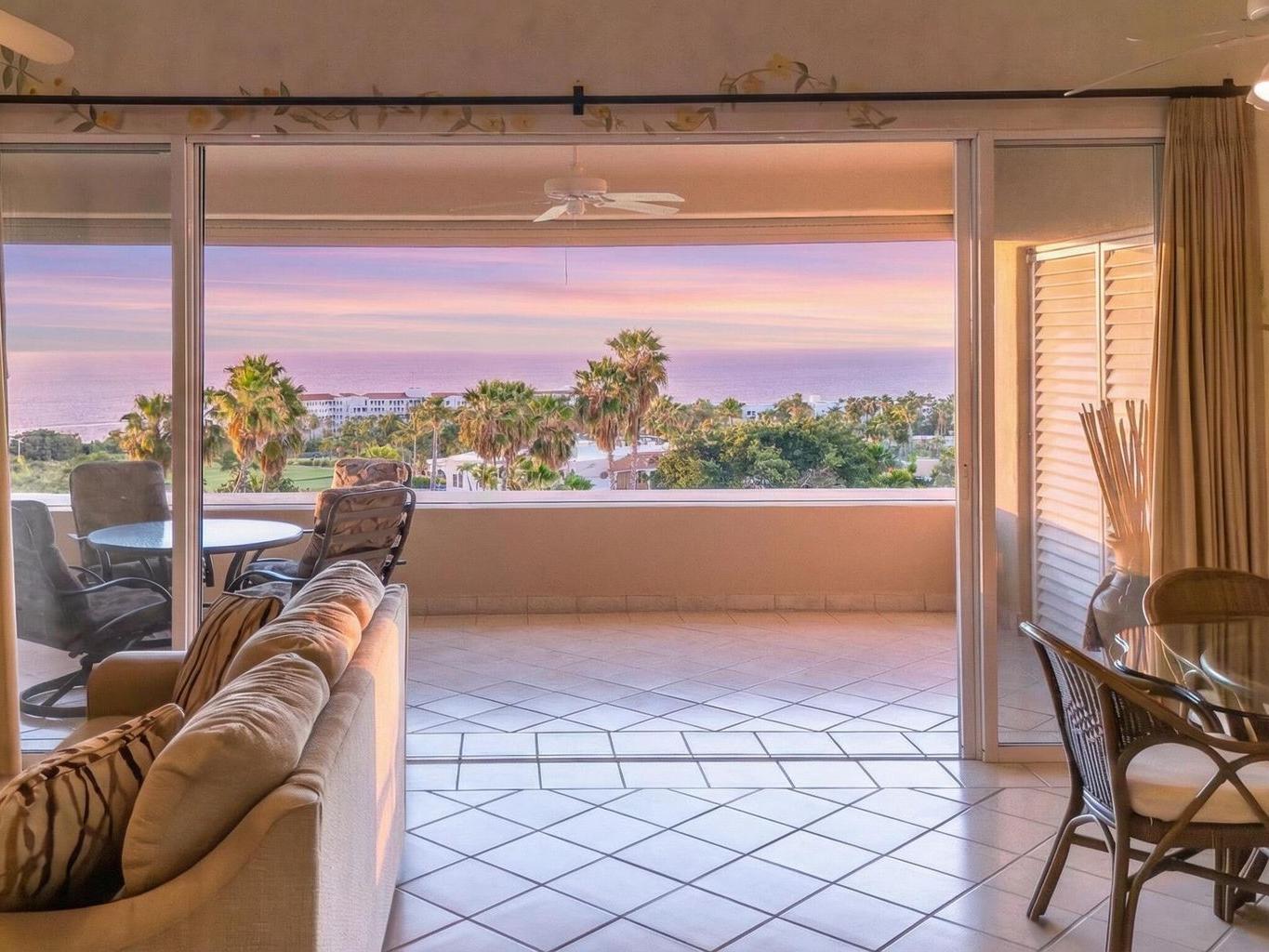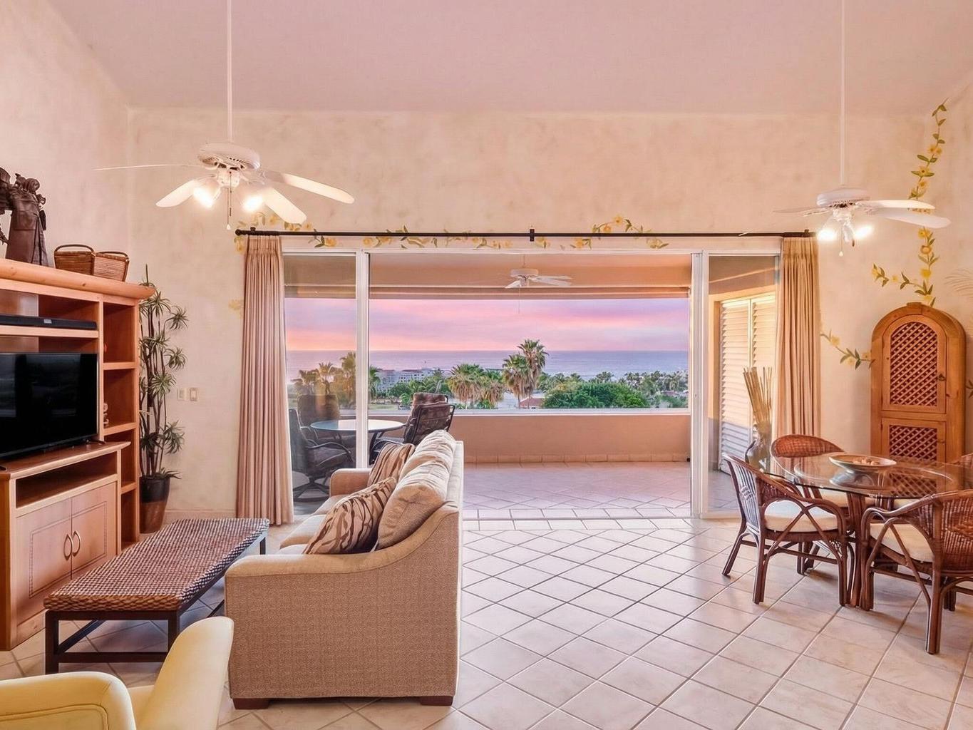 Discover the perfect blend of tranquility and convenience in this beautiful 3rd floor 2-bedroom, 2-bathroom condo, which includes an additional room that could be a 3rd bedroom or convenient office space .Cathedral ceilings are an added bonus. This unit has the most exquisite, direct panoramic ocean views. Located in the heart of the prestigious Cabo Real community along the Los Cabos Corridor, this turn-key unit overlooks the 2nd hole of the legendary Robert Trent Jones II championship golf course, with sweeping views of the Sea of Cortez and lush fairways right from your terrace. From here, you can enjoy breathtaking ocean sunsets and fireworks over the water in the evening. Las Gardenias boasts one of the very best positions within Cabo Real - quiet, peaceful & private.
