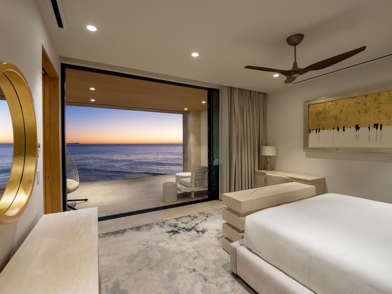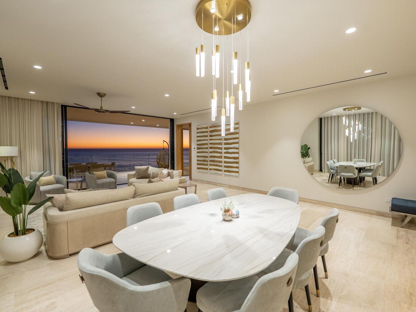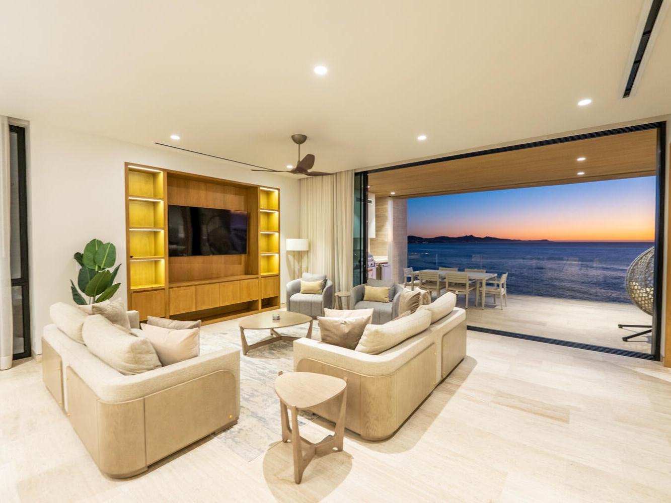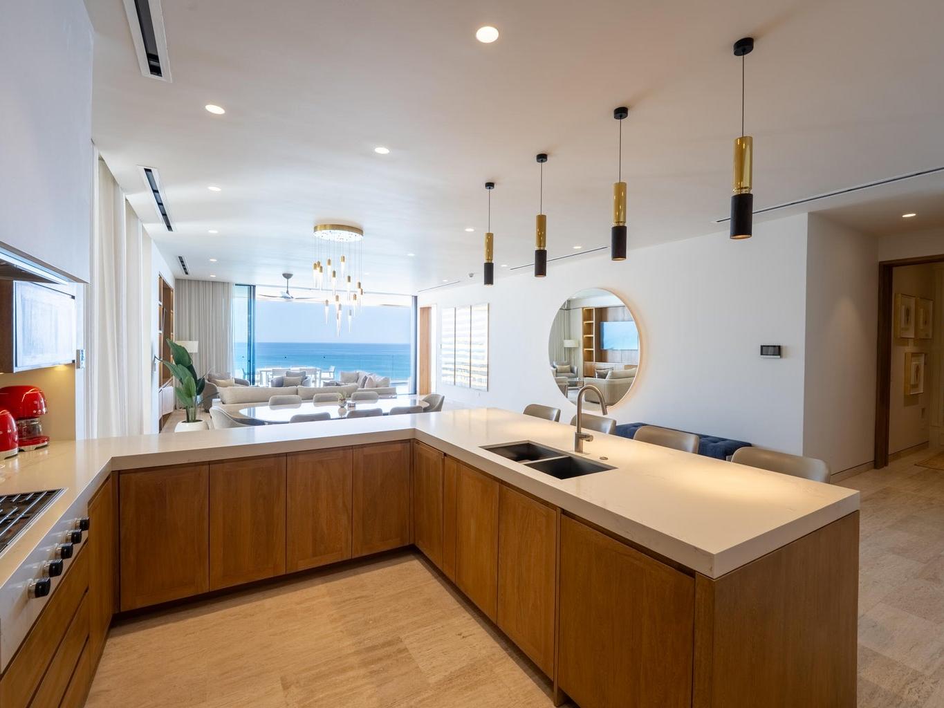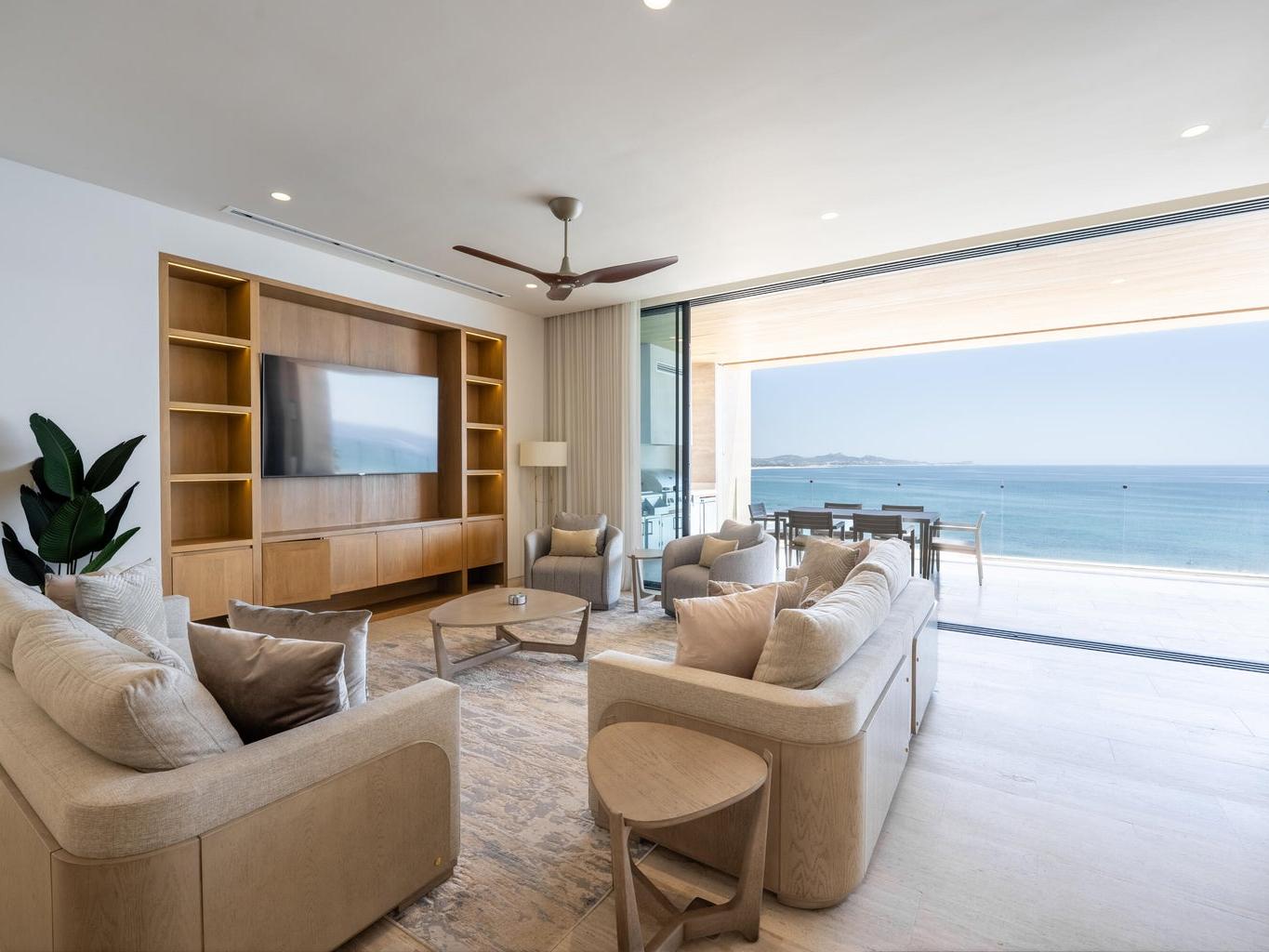 Soar above it ALL in this forever Oceanview Residences in Querencia, offering panoramic Sea of Cortez views, exceptional sunrises, and a refined coastal lifestyle. Positioned on the third floor, one of the highest vantage points in the community, this residence delivers light-filled serenity, privacy with seamless indoor and outdoor living. This three-bedroom plus one bunkroom layout features floor-to-ceiling glass, a spacious terrace overlooking the vibrant Q Beach Club, built-in BBQ, upgraded lighting, two double-space parking spots, and a private owner's lock-off. Footsteps from 3 dining options, Spa, Fitness facility and the warm golden sand, all is provided for. The home is offered fully furnished with a premium, high-quality decor package along with proven rental ROI potential.