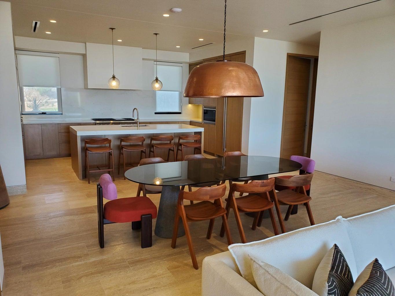 A rare, highly upgraded garden residence in Querencia. Verandas C-101 offers generous living spaces that open to a large private terrace and grassy garden—an uncommon feature within the community. Contemporary architecture is paired with a calm, grounding interior designed with natural materials, custom wood furnishings, clay accents, upgraded flooring, and enhanced interior doors throughout.