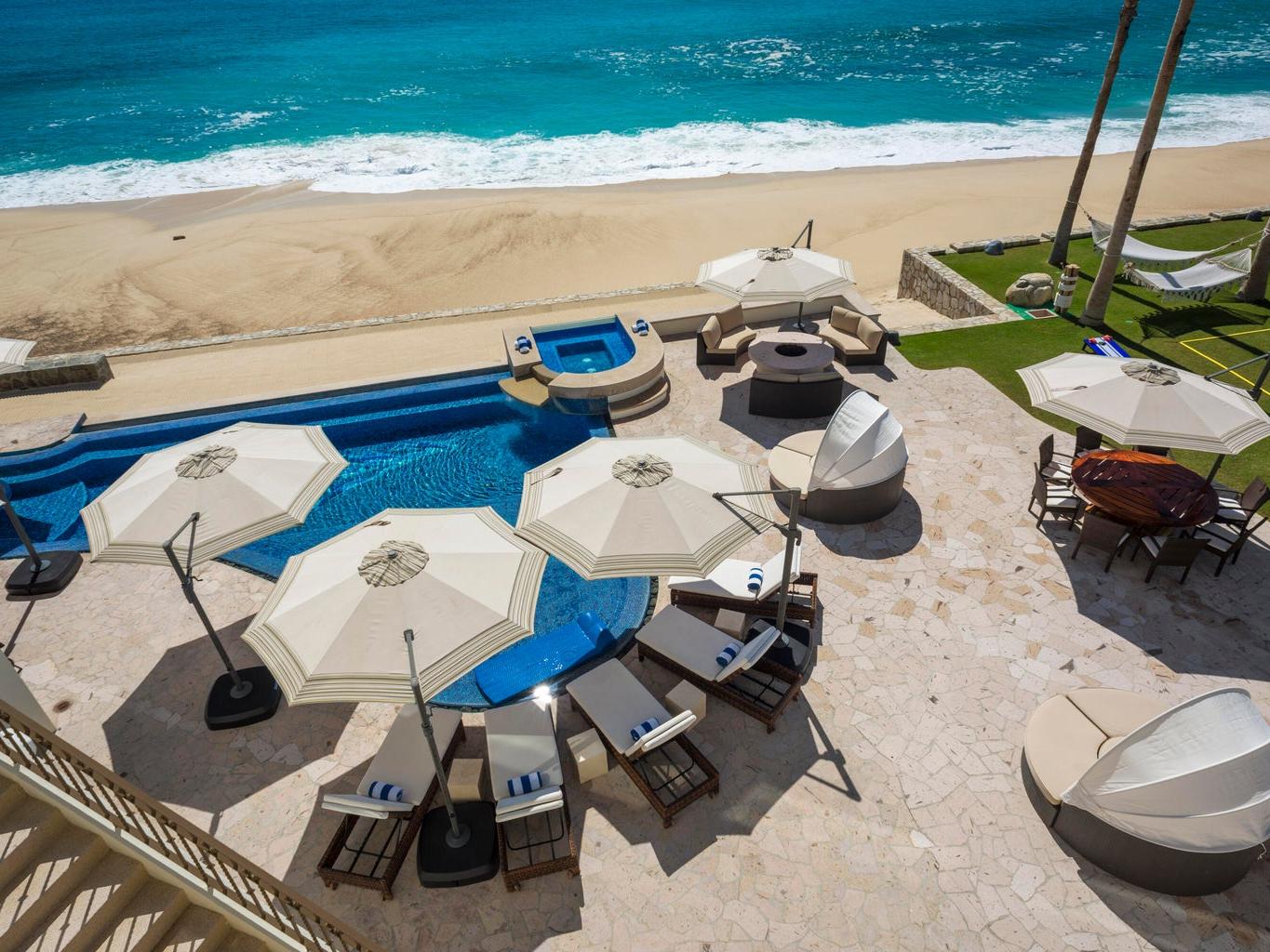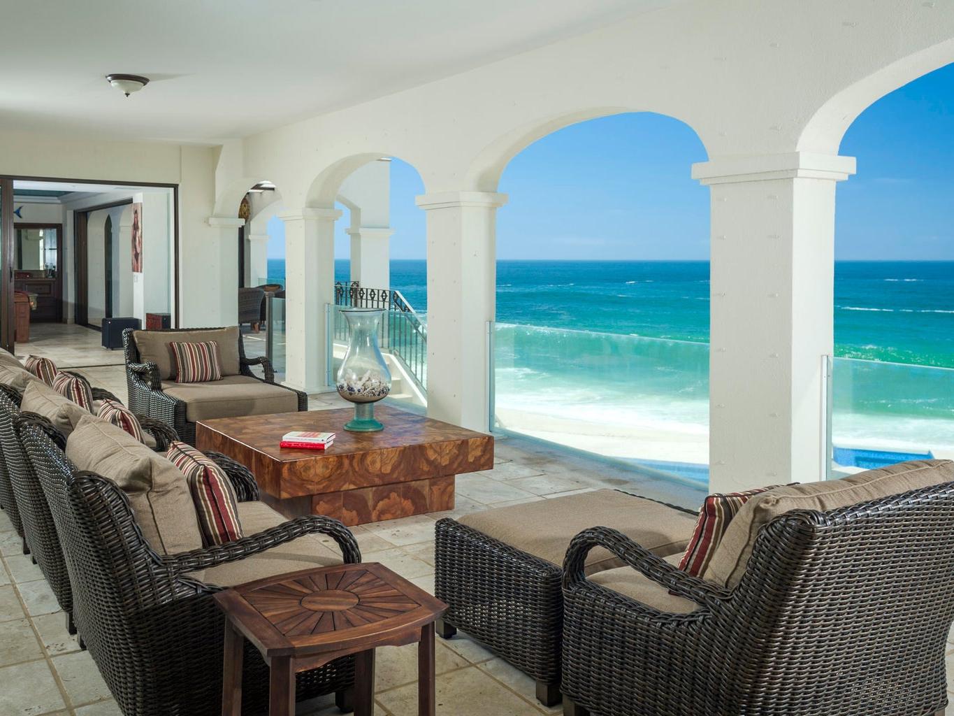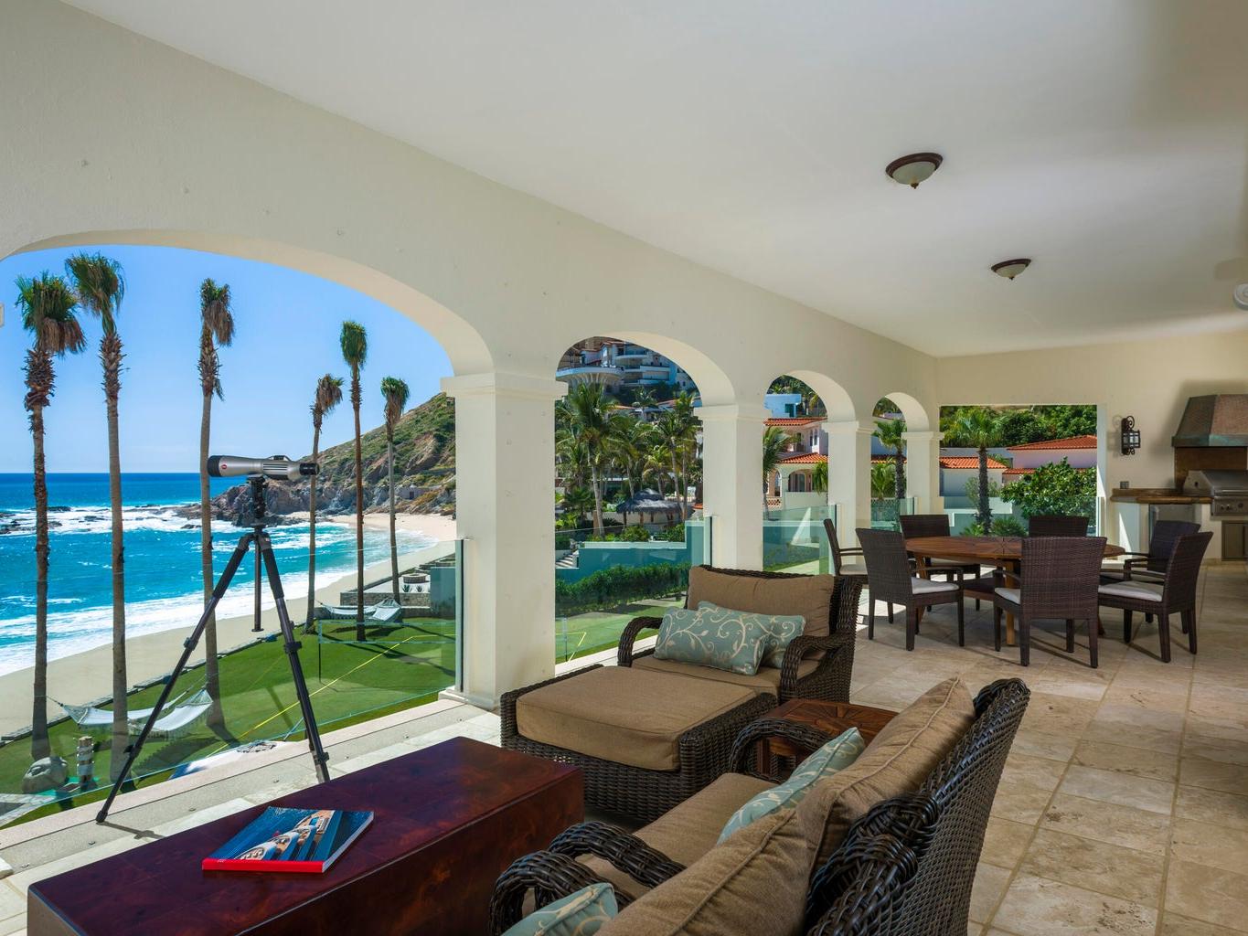 Rare true beachfront estate in Palmilla Sur featuring approximately 62 meters of ocean frontage. This exceptional residence offers 5 bedrooms, 5 full bathrooms, and 4 half bathrooms on a generous oceanfront lot. Expansive decks and patios provide breathtaking, unobstructed ocean views and outstanding outdoor living spaces. A unique opportunity to own one of the most significant beachfront properties in this prestigious community.