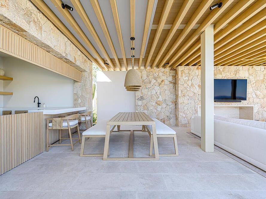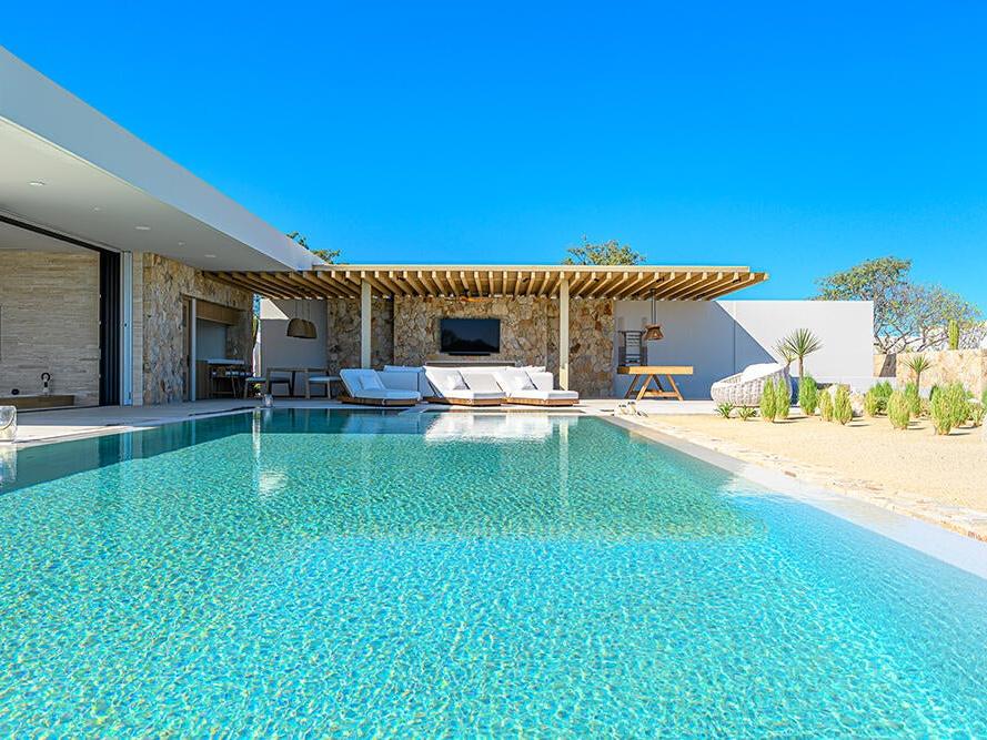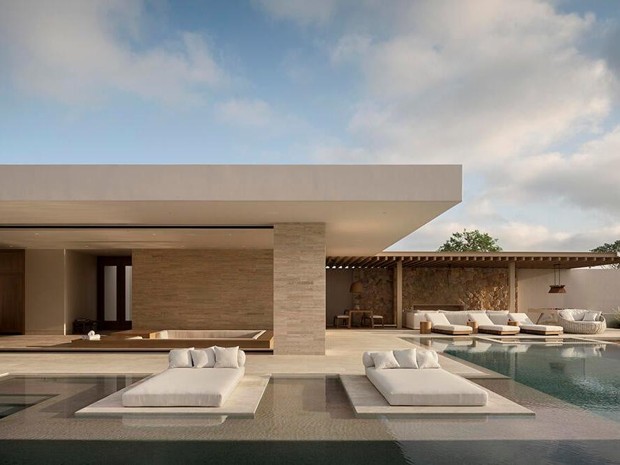 Designed for seamless indoor-outdoor living, the main living areas open directly to expansive terraces, a resort-style pool, and outdoor entertaining spaces. The kitchen, dining, and living areas are all oriented toward the view, capturing stunning sunrises and year-round natural beauty, while the sun sets behind the home.