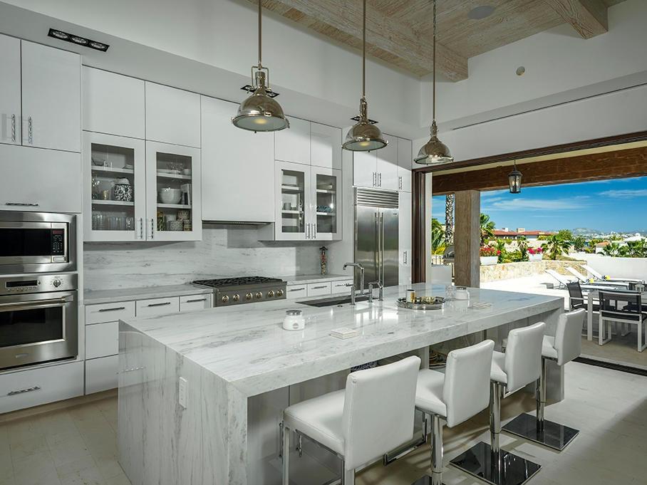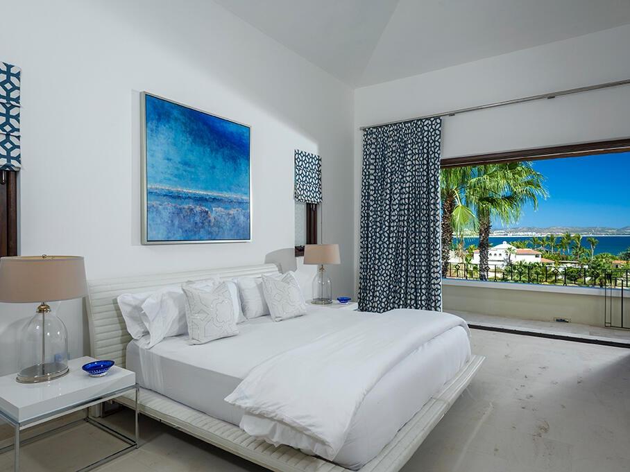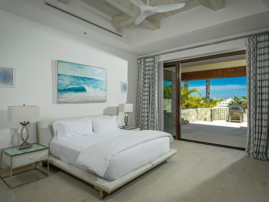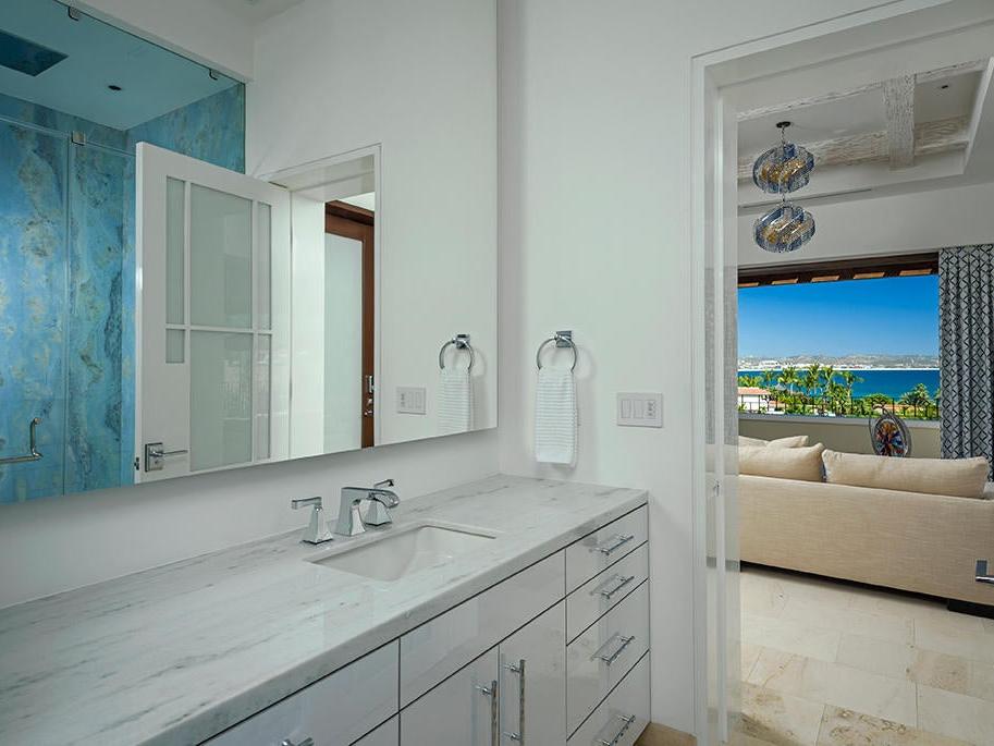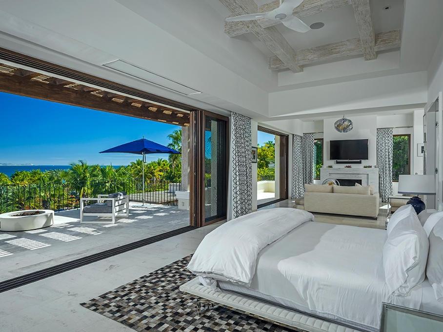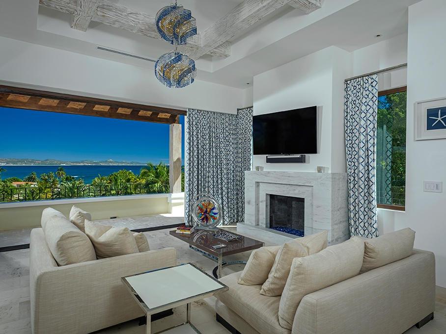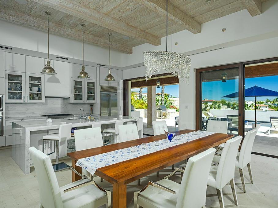 With seven bedrooms, eight bathrooms, and one powder room, the residence is ideal for entertaining and provides stunning views of Palmilla Bay, from sunrises to the lights of San José del Cabo.