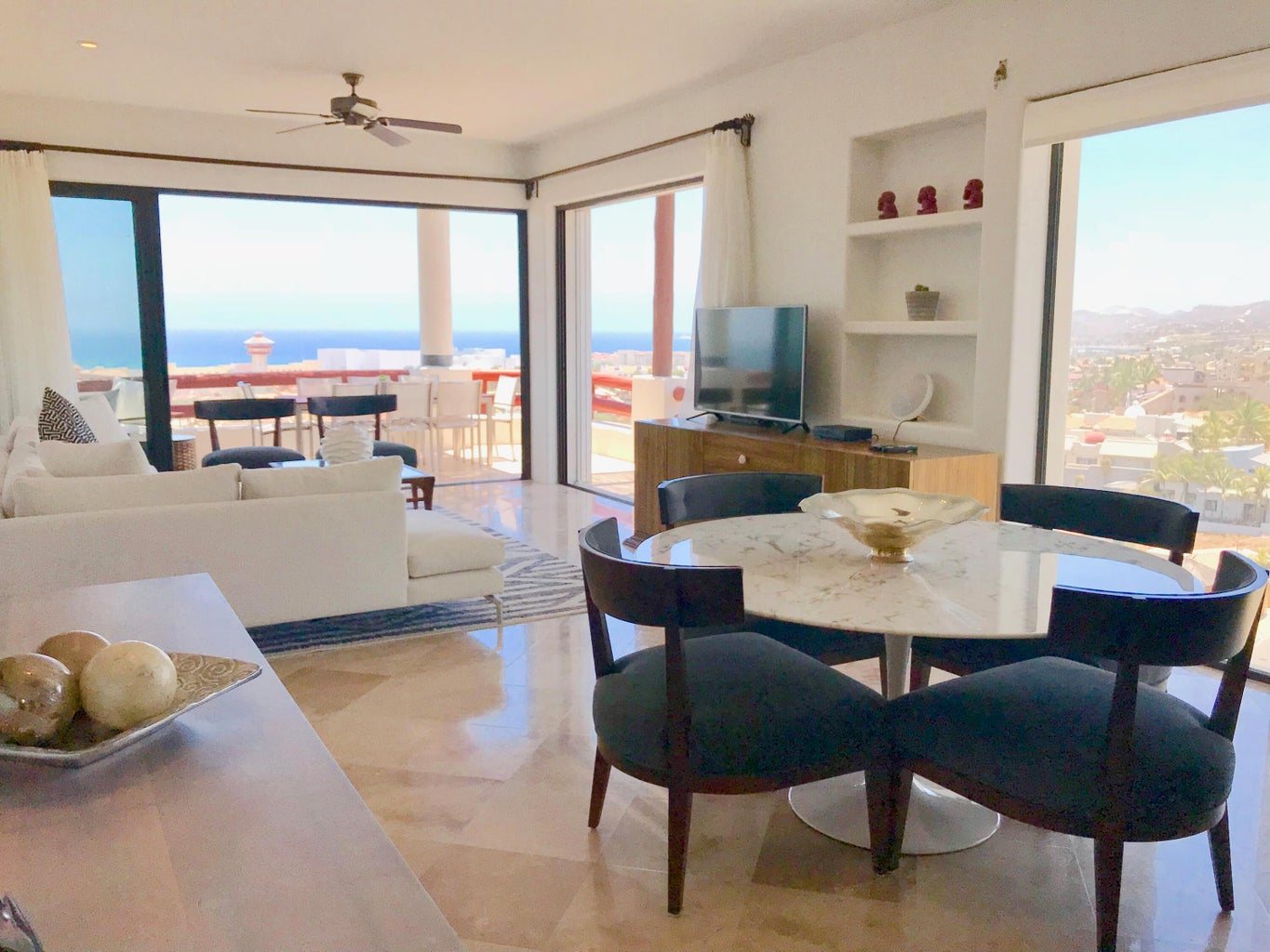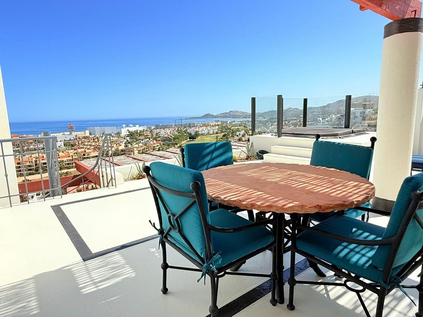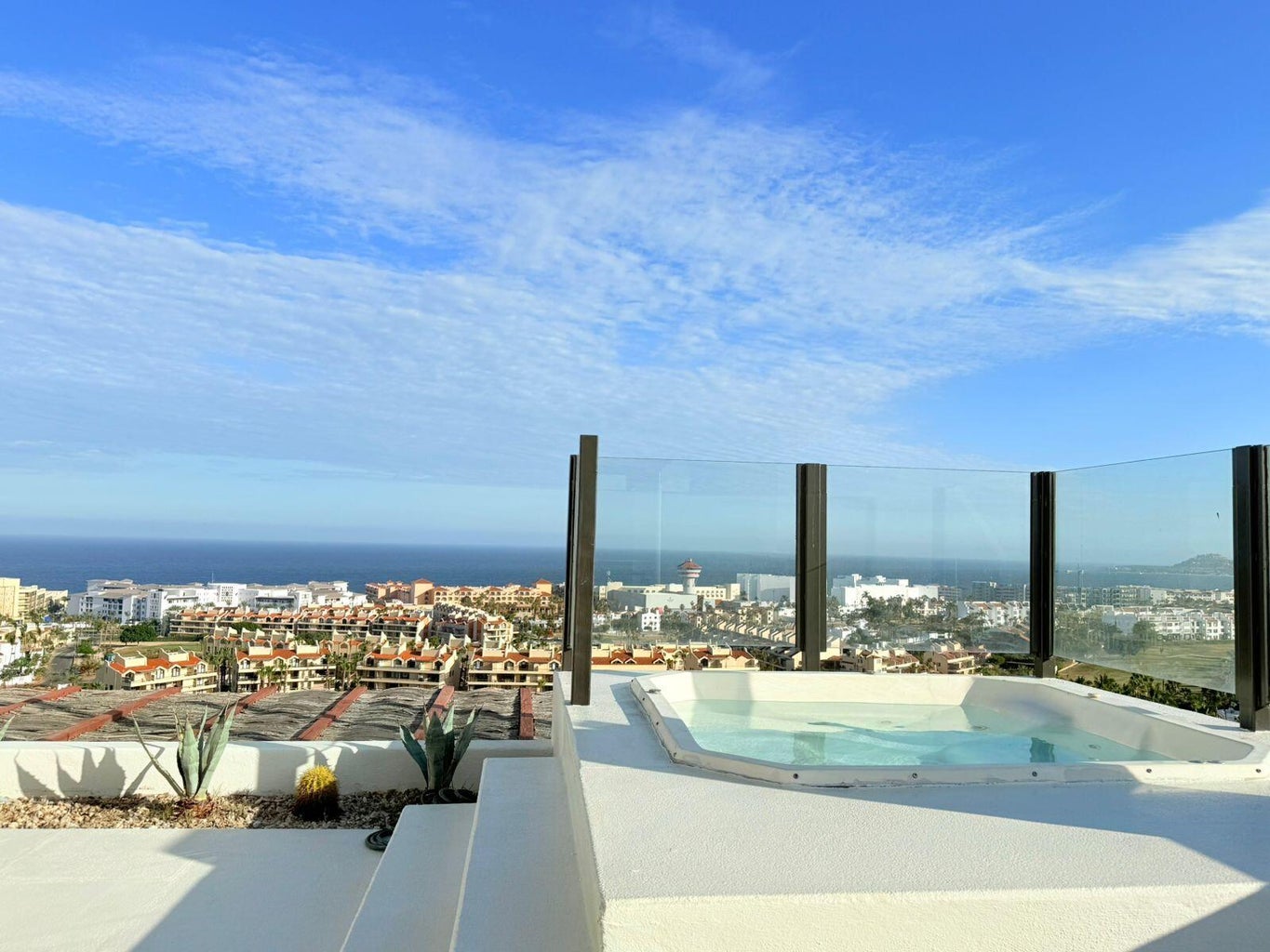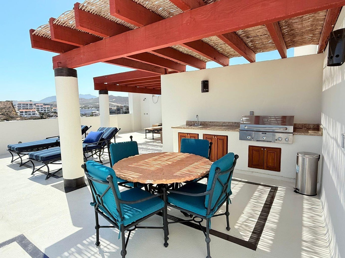 The private rooftop terrace is an oasis of relaxation, featuring a Jacuzzi, grill, sink, and spacious living and dining areas—the perfect setting to embrace the Cabo lifestyle.