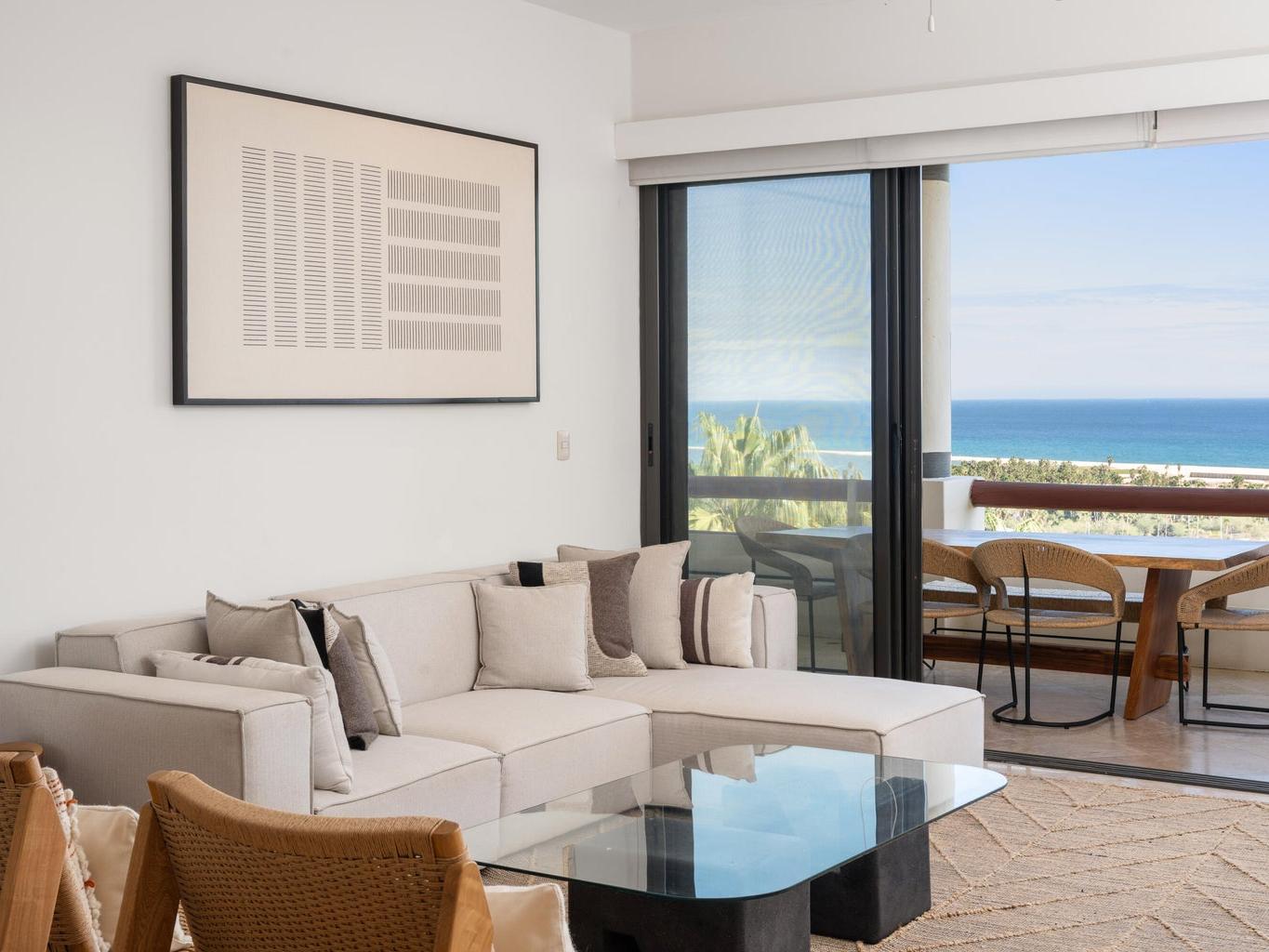 A refined contemporary residence in Alegranza, boasting breathtaking ocean views that stretch across San José del Cabo and the Sea of Cortez. From sunrise to sunset, the expansive vistas create a constant connection to the landscape, filling the home with light and a sense of calm.