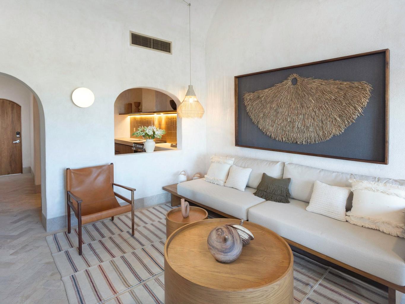 This spacious 1-bedroom casita features a beautiful arched hallway with a skylight that fills the space with natural light. The full bathroom offers dual access from both the bedroom and living area. Enjoy a generous patio with great sunlight, perfect for installing a BBQ and creating your own outdoor retreat. The resort-style community features a two-level gym with cardio, weights, yoga and pilates rooms, steam rooms, and showers, plus two pickleball courts, a heated pool with jacuzzi, kids' splash pad, game area, beach club-inspired palapa bar with sand, a beautiful restaurant, coworking spaces, and a vibrant kids club. Built with 20 cm concrete walls (no drywall) and high ceilings, the property stays cool and quiet year-round, even during the hottest summer days.