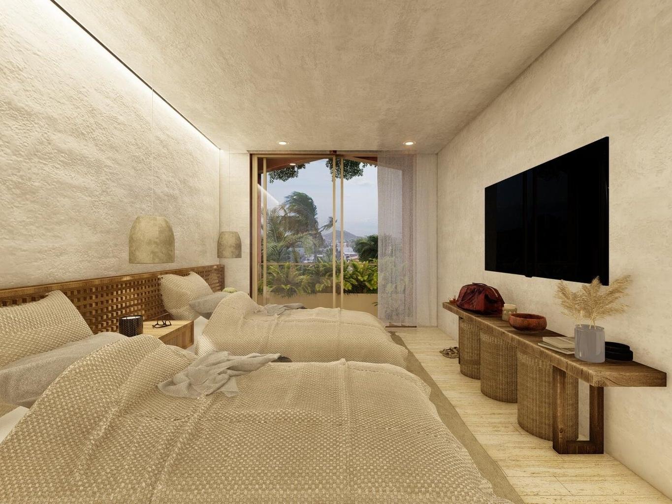Tucked in the historic heart of San José del Cabo, this 2-bed, 2-bath lock-off condo blends contemporary chic with subtle colonial charm. Just steps from the city's buzzing art galleries, nightlife, and world-class dining, it offers the ultimate urban beach lifestyle. Thoughtfully designed with modern finishes and natural textures, the light-filled space flows to a private terrace perfect for laid-back mornings or cocktail hour. With the adjacent, branded boutique hotel, owners enjoy access to rooftop pools, lounges, and on-site restaurants, but also have their own private amenites including fitness facility and underground parking...plus the golden beaches of the Sea of Cortez just minutes away. Stylish, social, and effortlessly Baja.