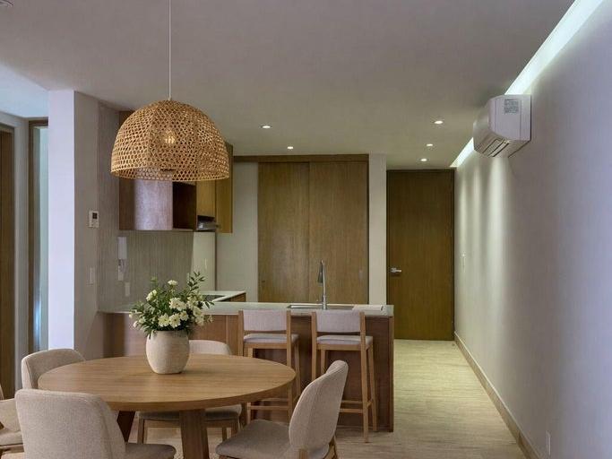 The Laiva building stands out for its modern architecture with local touches, combining clean lines, natural textures, and a relaxed atmosphere that reflects the spirit of San José del Cabo. It offers amenities such as a swimming pool, landscaped common areas, a rooftop terrace, and private parking. Every space is designed for a peaceful, comfortable lifestyle, surrounded by art, gastronomy, and the sea. The one-bedroom, one-bathroom apartment, unfurnished, is ideal to customize to your taste. It features large windows that fill the space with natural light, a full kitchen, a bathroom with contemporary finishes, and a cozy bedroom. Perfect for those seeking style, functionality, and an exceptional location.