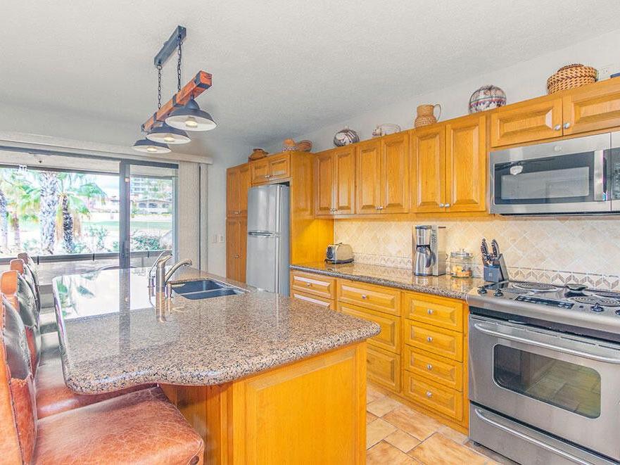 Beautiful custom-made, extra-large one-bedroom condo in Club La Costa Phase 2. This second-floor home is the size of a typical 2-bedroom, offering a far more spacious layout than any other 1BR in the community. It features a huge kitchen, high-quality floors, stunning carpentry, and beautiful brand-new high-quality shutters. Every detail was thoughtfully designed by the owners, and it truly shows. Enjoy a lovely terrace with open views and great natural light. Includes a rare 1.5 garage plus an additional parking space right outside. Located in the most desirable and walkable area of San José del Cabo, across from the beach and minutes from downtown, restaurants, shops, and grocery stores. Phase 2 is pristine, quiet, beautifully maintained, and offers pools and hot tubs.