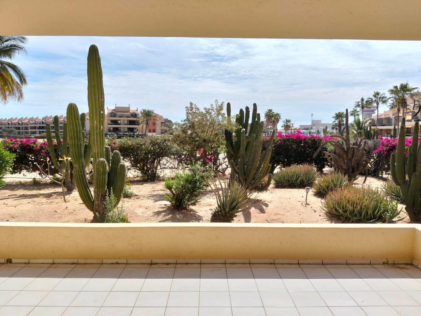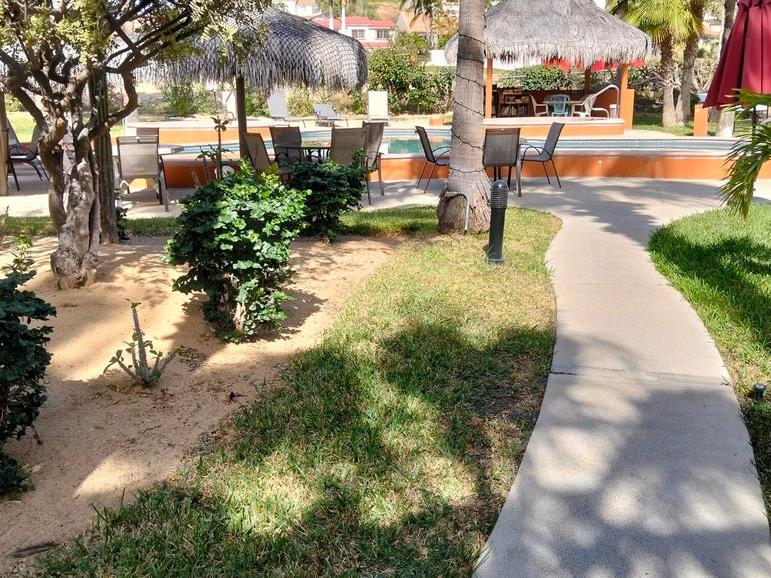 End unit 1 bedroom/1 bath unit in great condition in a fully gated community on the Vidanta Golf Course.. Ground level for easy access with large 13' X 18' deck. unit location has both front and side gardens offering more privacy.