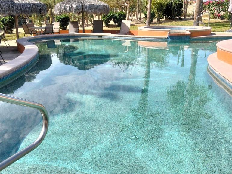 Has many additional built-ins, has never been a rental and features exclusive assigned parking space out front of the building. F2 offers 3 swimming pools plus hot tubs.