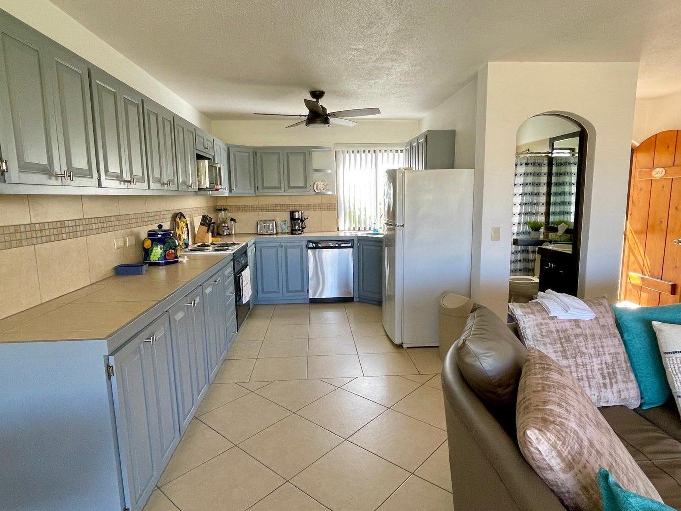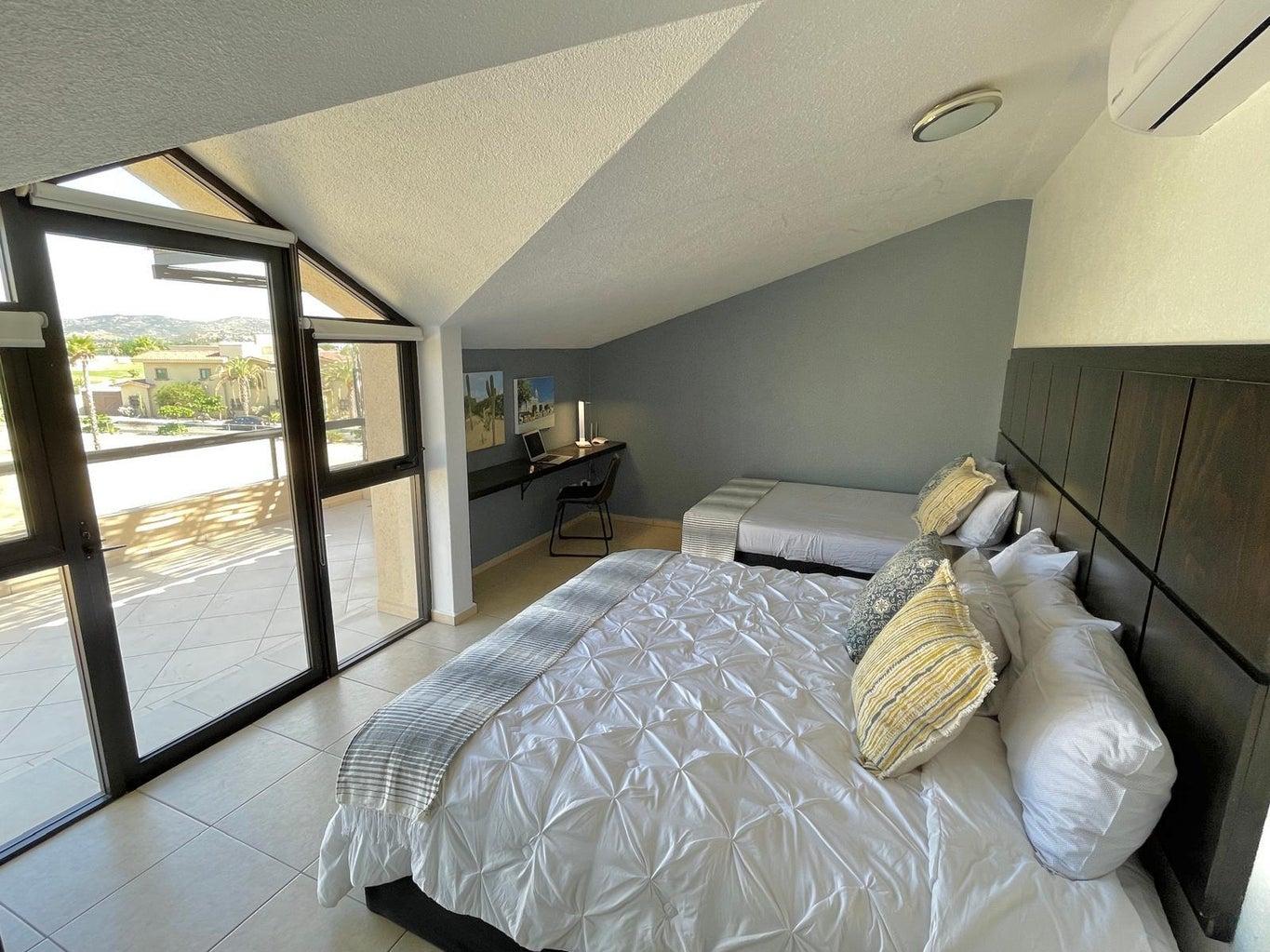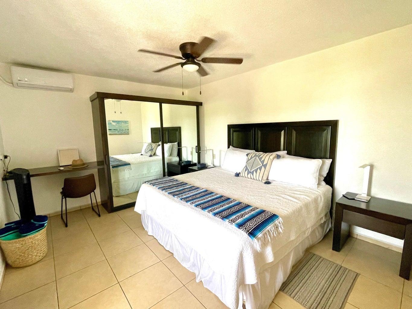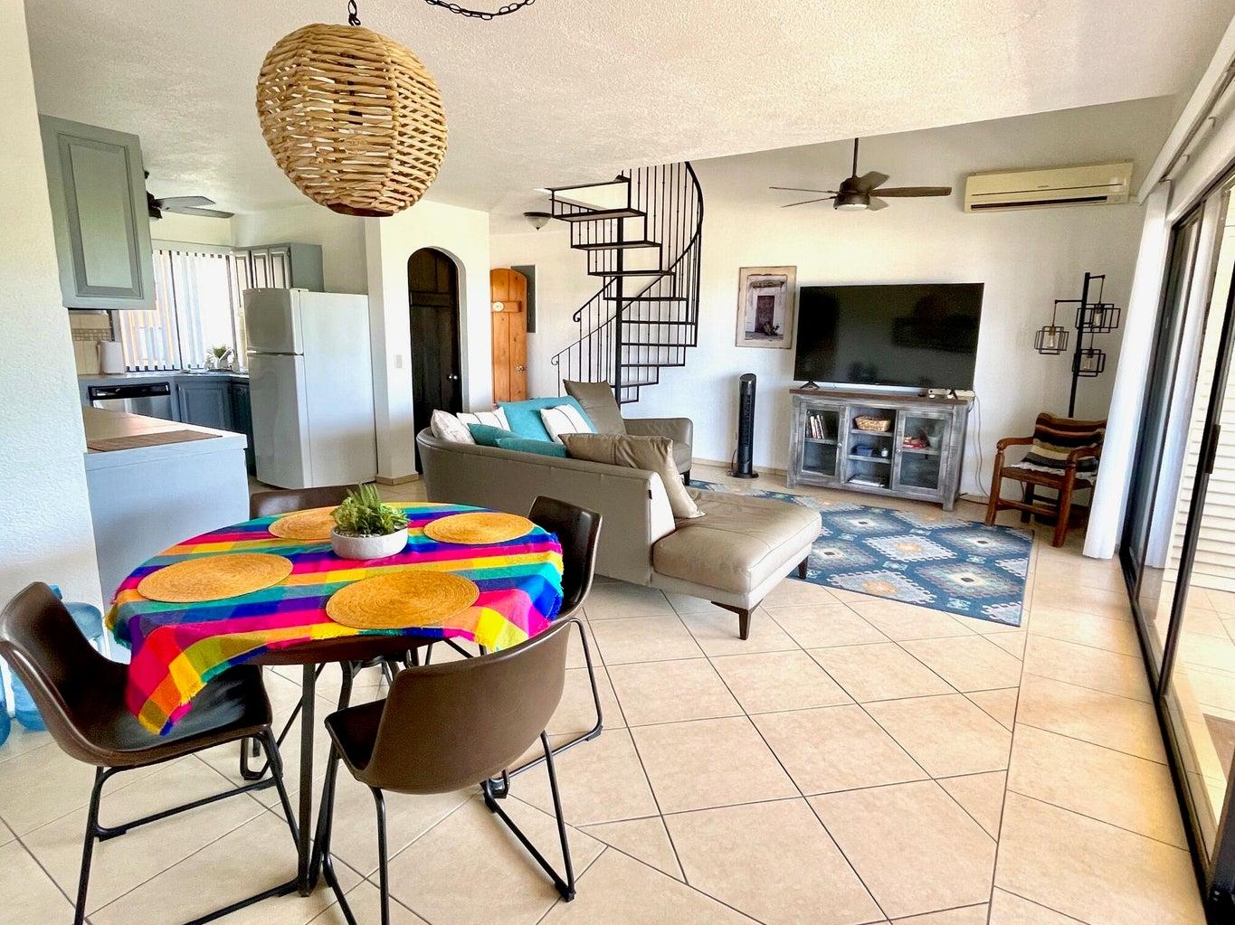 Beautifully renovated two-story penthouse in the highly coveted Club La Costa community. Ideally located just steps from restaurants, shopping, Plaza Pescador, and the Art District, and only a 3-minute walk to the beach. This pristine condo offers beautiful golf course and mountain views and has been recently upgraded with fresh interior paint, new kitchen cabinets, new lighting fixtures, all new mattresses, and a new air conditioner in the main living area. Gated community with three swimming pools, jacuzzis, and private access to Plaza Pescador. Turnkey and move-in ready.