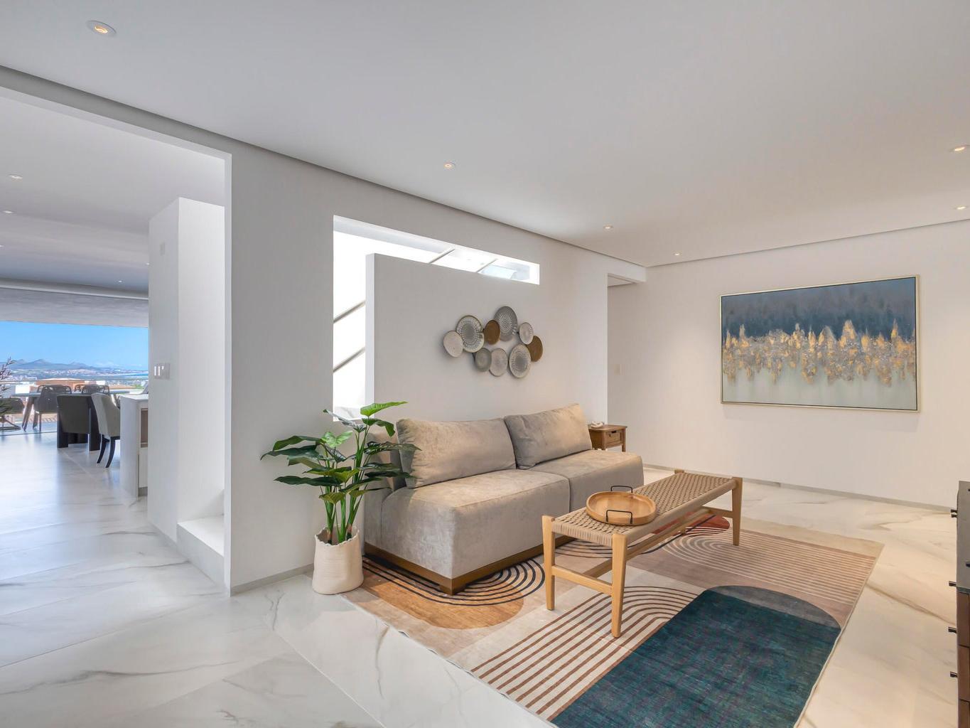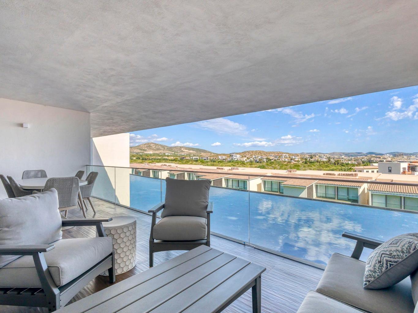 Stunning 3BR, 3.5BA penthouse in Cora Sunset with a private upper sundeck and whirlpool tub boasting panoramic ocean and golf views. Premium access to Campestre Golf & Beach Club, plus community tennis, pool, gym, kids' room, and meeting space. Inside: 75'' LG Smart TV, LG Door-in-Door fridge/freezer, LG TruSteam QuadWash dishwasher, LG AI WiFi washer/dryer, Whirlpool range, LED bathroom mirrors, glass shower doors, mosquito blinds, and upgraded patio furnishings. Minutes to downtown San José, with desert garden and dog park nearby.