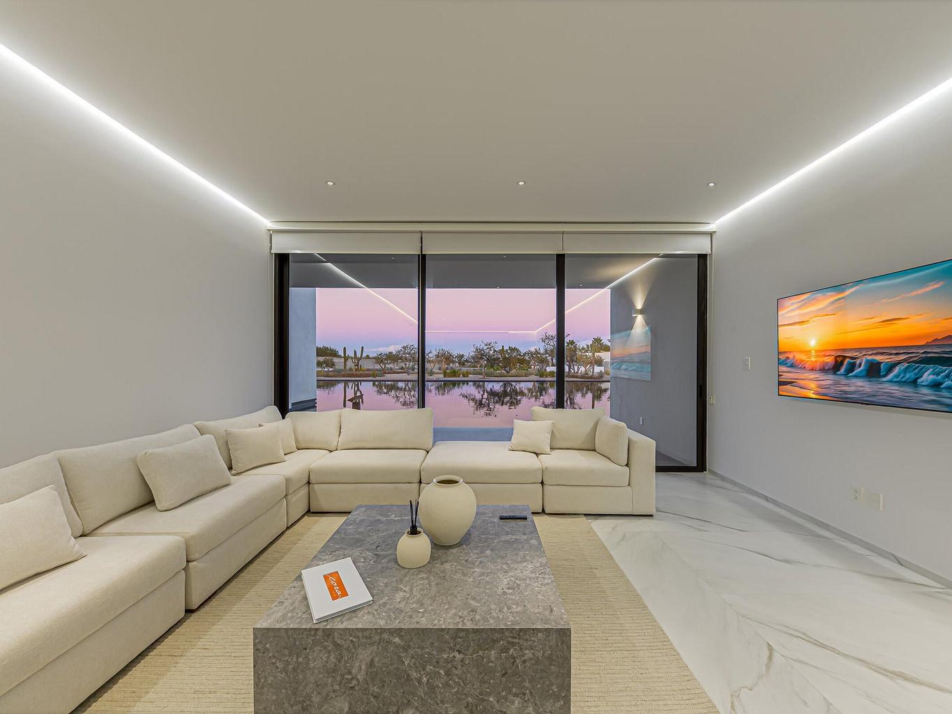 Located within the prestigious community of Cora at Club Campestre San José, this exceptional ground-floor residence offers refined living in one of San José del Cabo's most desirable settings, just approximately 20 minutes from Los Cabos International Airport. This beautifully appointed three-bedroom, three-and-a-half-bathroom condominium with den encompasses 1,842 square feet of interior living space, complemented by 356 square feet of covered terrace and an additional 284 square feet of private garden. Fully furnished and thoughtfully equipped, the home presents a seamless blend of comfort and sophistication.