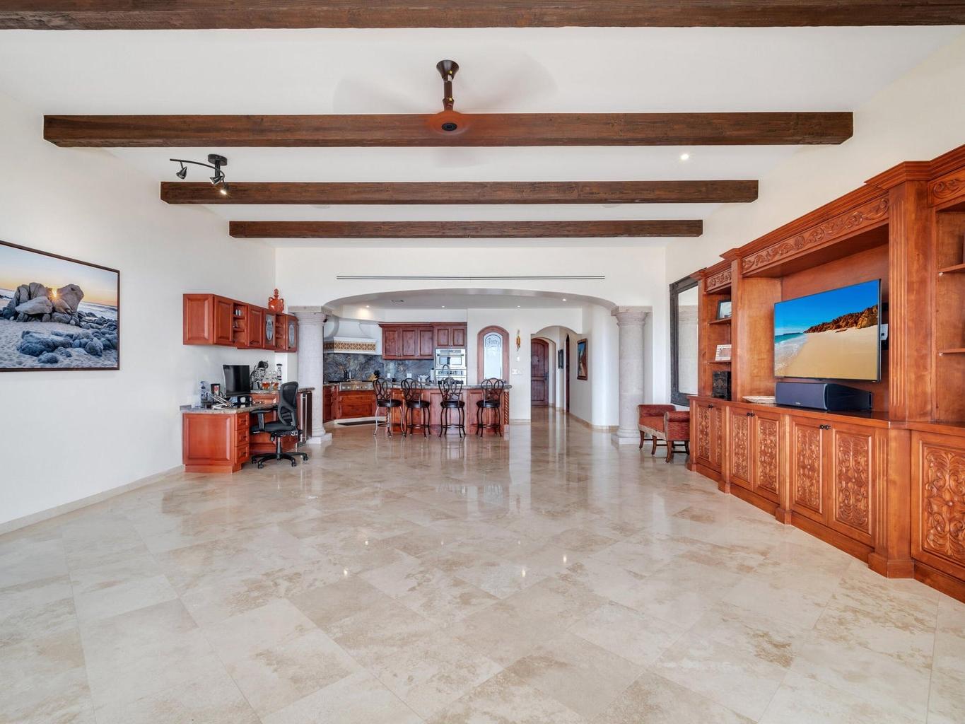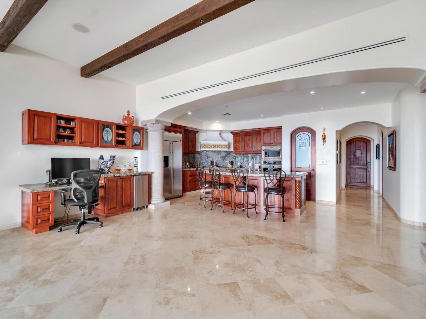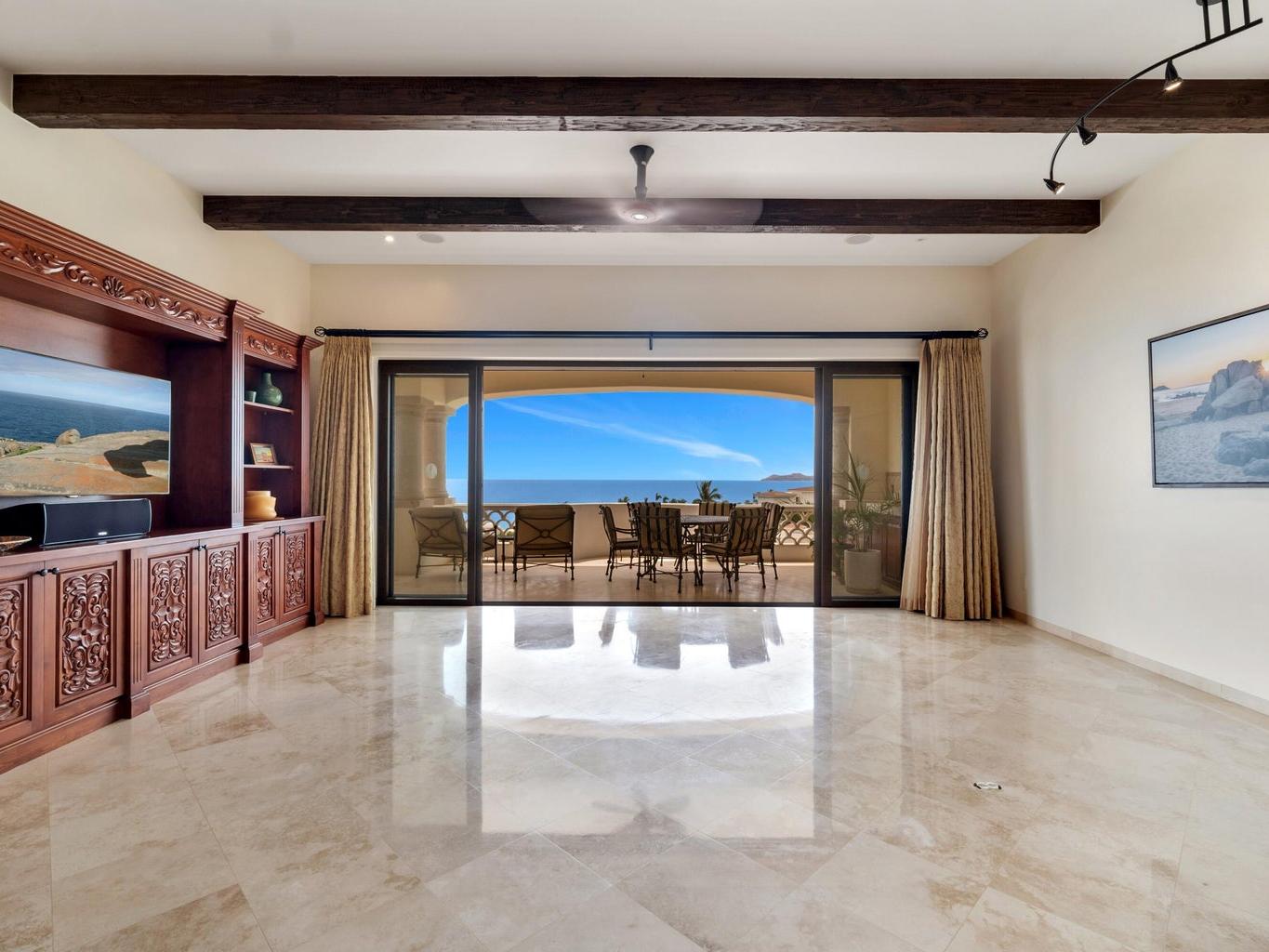 Partially furnished 2 bedrooms and 2.5 bathrooms, there is plenty of space and the views are absolutely stunning. This condo was customized during the construction process to its full potential. This condo exudes luxury and quality from the hand finished carpentry details to the upgrades appliances. Nothing was missed in this condo residence and it shows. The Olas 202 location is truly privileged as it enjoys a large covered terrace that offers privacy and views of Palmilla. Condo includes very coveted oversized garage. A must see residence!