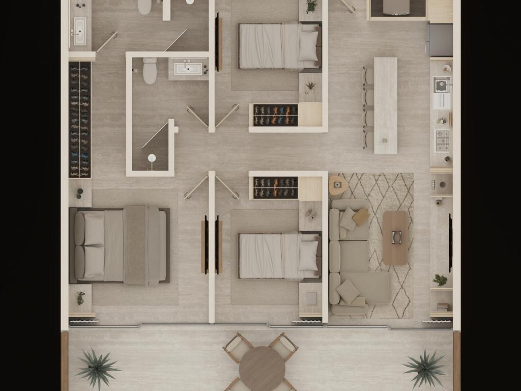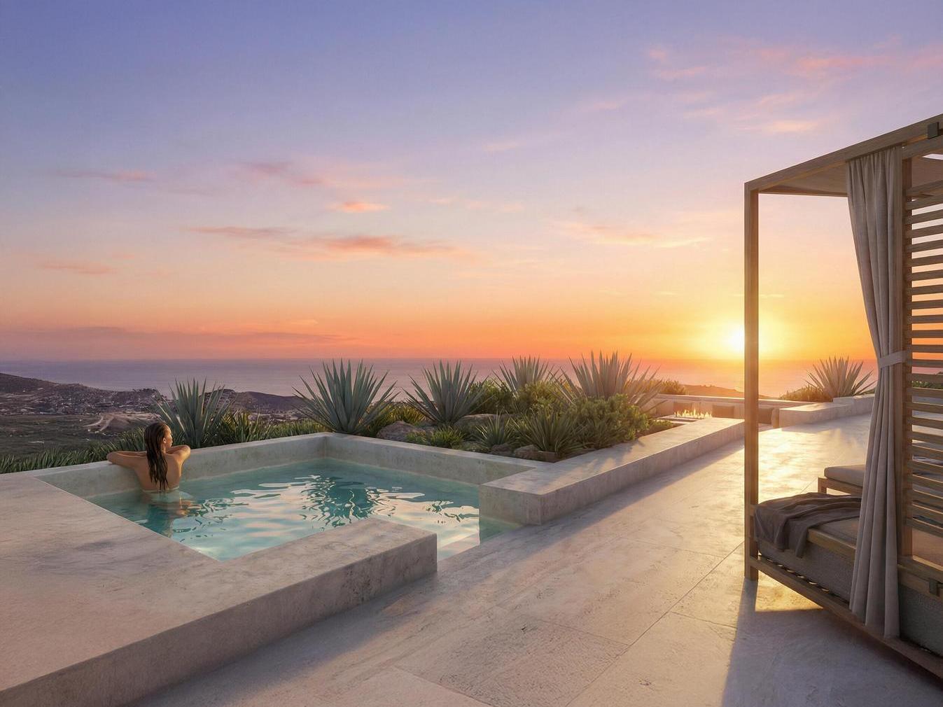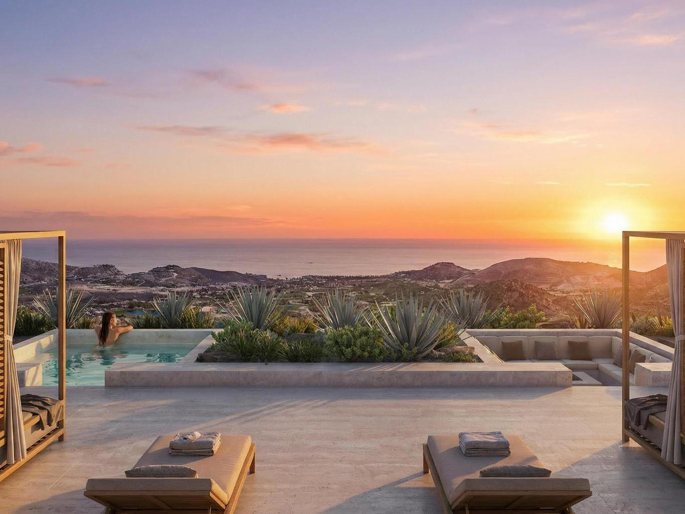 Stunning 3-bedroom unit at Hideaways with sweeping views of San José del Cabo's natural beauty. This elevated residence offers 92.82m2 of thoughtfully designed interior space plus a 22.44m2 private terrace perfect for entertaining or morning coffee with mountain views. The cactus-inspired architecture brings sustainable design to life with green roofs, vertical gardens, and natural materials including concrete, wood, and local stone. Three bedrooms provide ample space for family living or rental income optimization. Residents enjoy exclusive access to resort-style amenities: infinity-edge pool, sports bar, golf simulator, jacuzzi, fire pit lounge, state-of-the-art gym, yoga studio, game room, and rooftop bar. Located in Tower 1, Level 2.