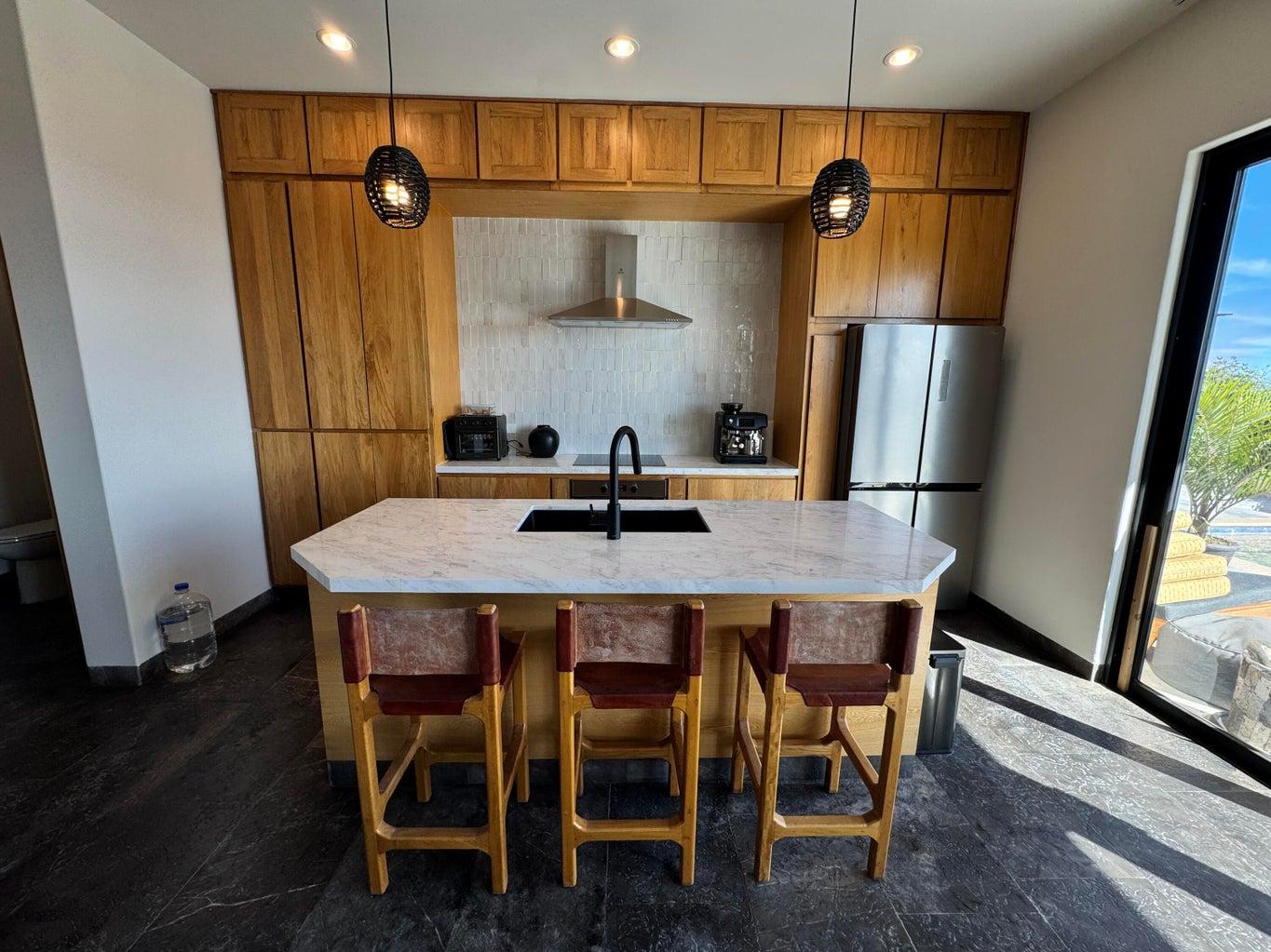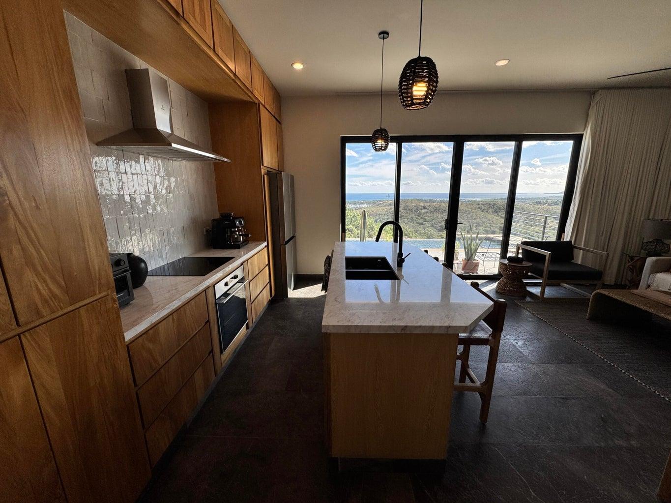 Perched on a hilltop in Las Ánimas, this ground-floor condo offers expansive views over the Sea of Cortez, the San José del Cabo marina, Puerto Los Cabos, downtown, and surrounding mountain terrain. Every room enjoys a view, creating a strong sense of openness and connection to the landscape.