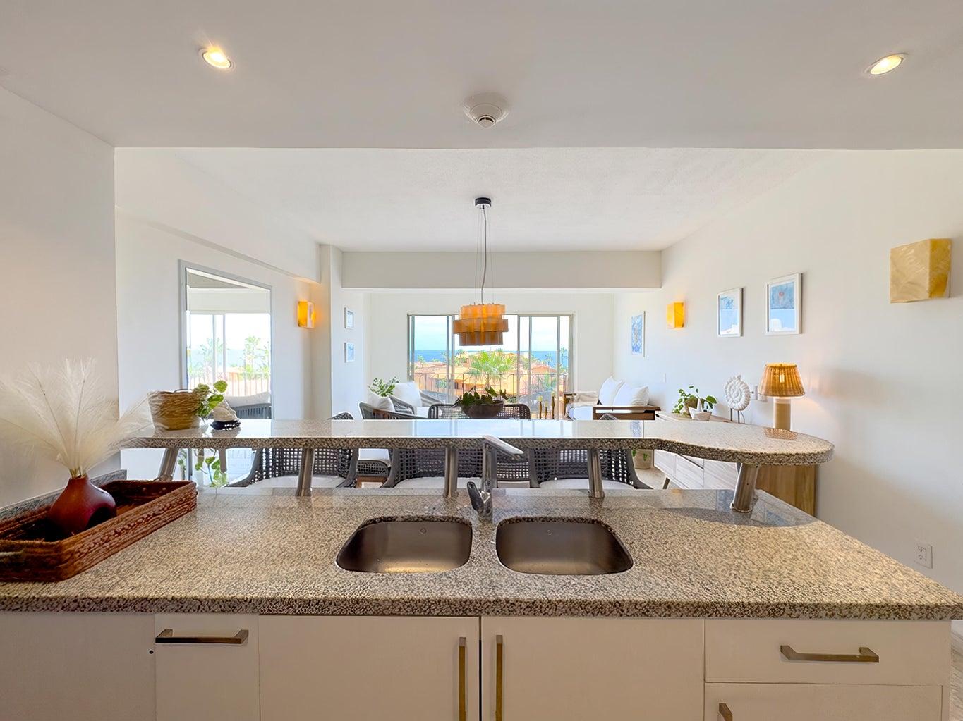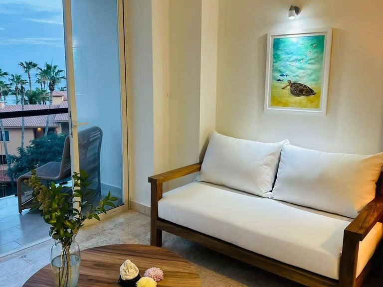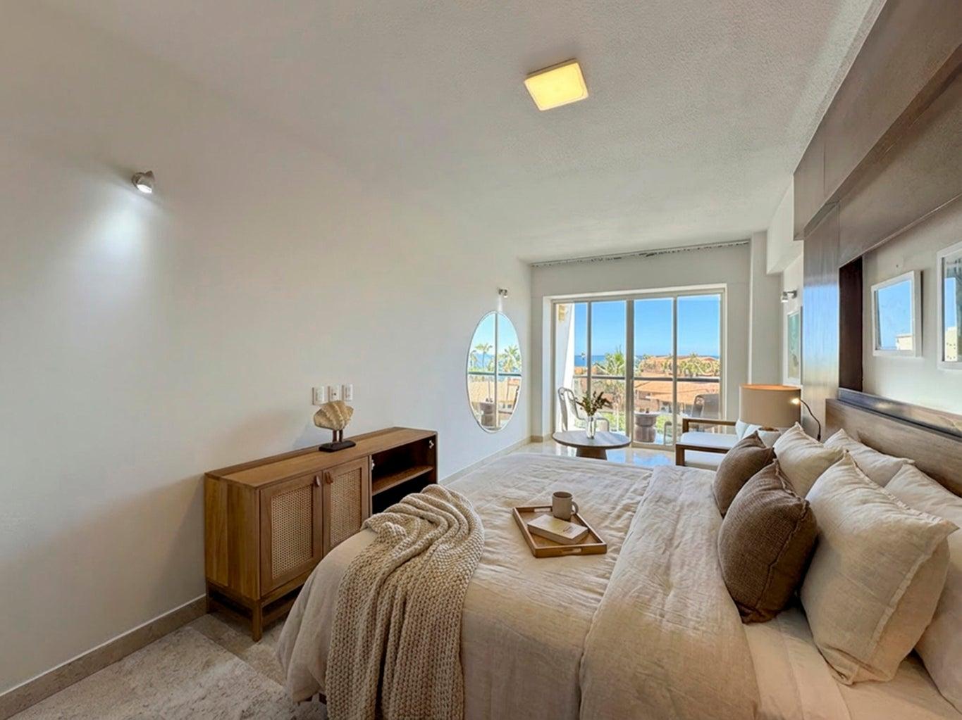 2-bedroom condo with lock-off in Vista La Jolla, set in the heart of San José del Cabo's Tourist Corridor and just steps from the beach. Recently renewed, this residence offers ocean views from its private balcony and a flexible lock-off layout ideal for living, hosting, or rental income. Amenities include a rooftop with soaking pool and panoramic views, fully equipped gym, kids' playroom, underground parking, elevator access, and an on-site commercial plaza. Prime location near cafés, restaurants, shops, and downtown.
