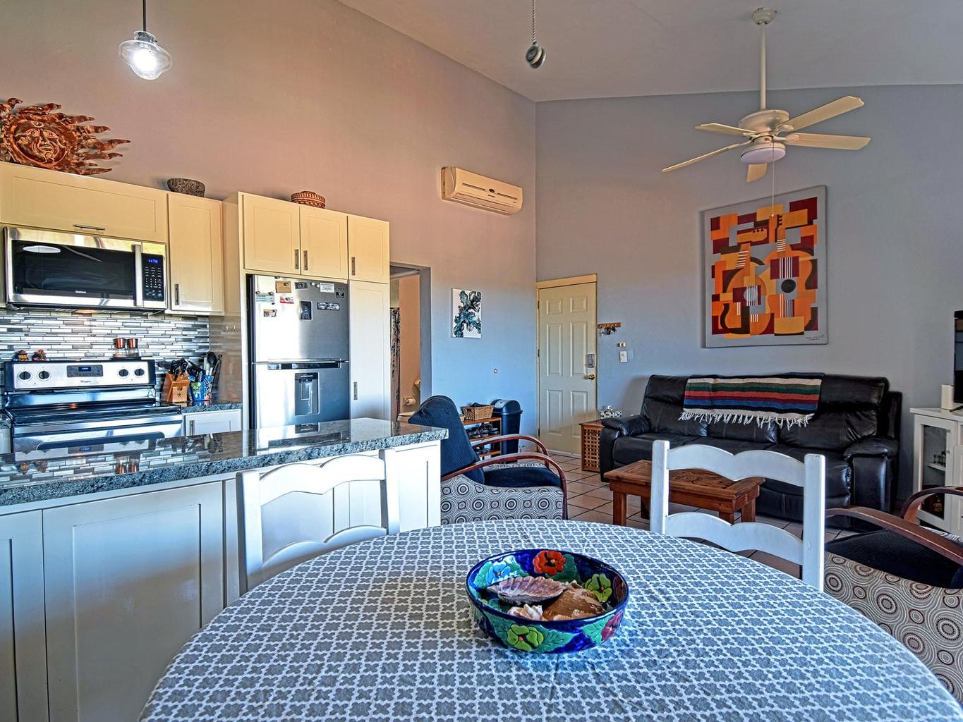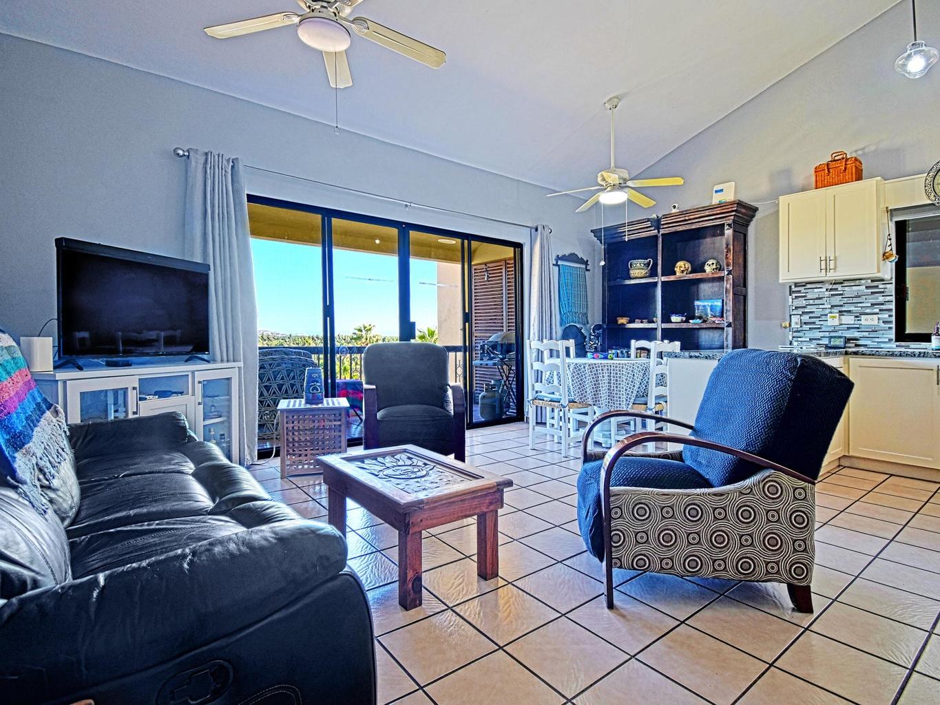 This top-floor 1-bedroom condo in the desirable Laguna Vista community offers an amazing Esterito or palm orchard view and an unbeatable location! A short 7-minute stroll to the vibrant Art Walk of downtown San Jose del Cabo, under 5 minutes to the white sandy beaches and you are just around the corner from the Fonatur Golf Course! The open concept floor plan opens up to a private terrace where you can enjoy the majestic sunrises and sunsets of Baja! You can also cool off in the large community pool which also offers lounges, an outdoor kitchen and BBQ area. This unit can enjoy a strong rental income should you with to use this property as a rental investment. Inquire for more information about making the move to Cabo!