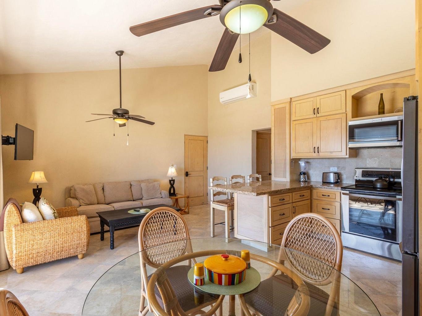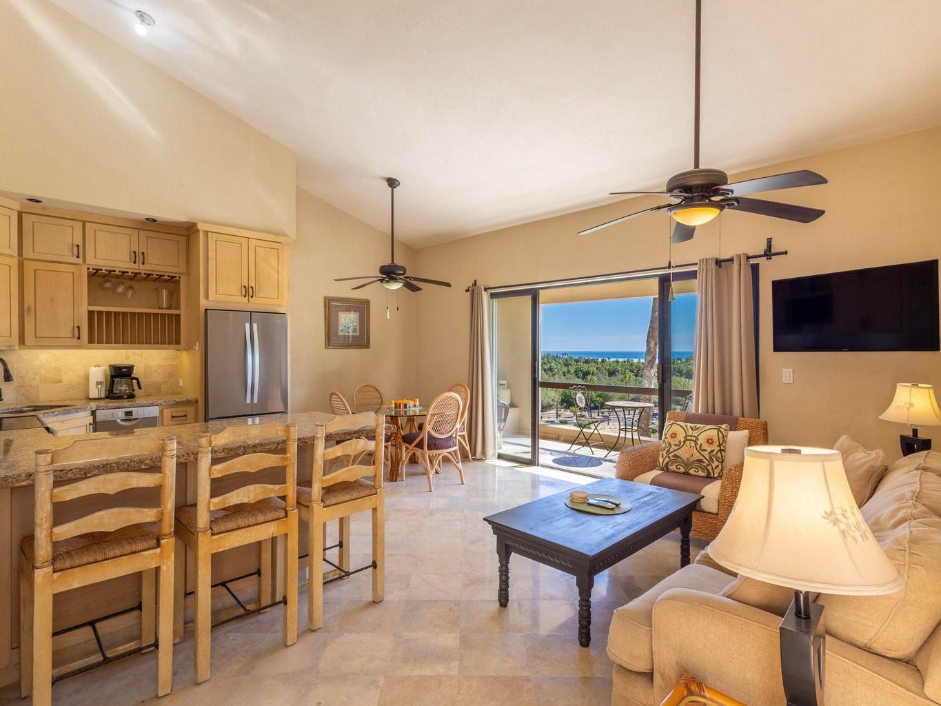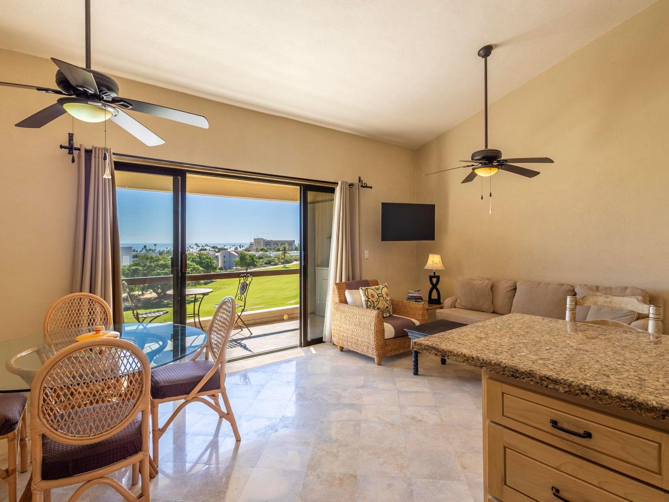 This fully remodeled 1 bedroom, 1 bath condo offers spectacular panoramic views of the Sea of Cortez, Estuary, and the 5th green of Vidanta Golf Course. The protected golf course frontage ensures these views remain unobstructed. Vaulted ceilings fill the home with natural light, creating a bright and open living space. The condo is move-in ready and equipped with furniture, air conditioning, appliances, ceiling fans, hurricane shutters, telephone line, fiber optic internet