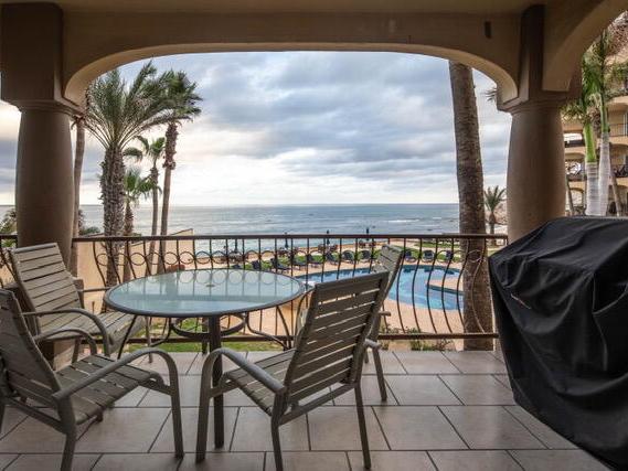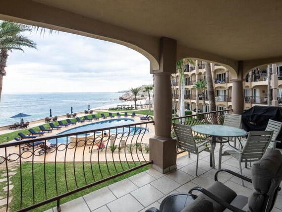 LOCATION, LOCATION, LOCATION! WELCOME TO LAS OLAS BEACHFRONT PROPERTY! Just steps to the sand on the 3 most popular surf breaks in Los Cabos. This 3 bedroom quiet 2nd floor end unit is fully furnished and turn-key! Perfect for surfers or beachfront loungers. Las Olas is a gated and guarded community with lush surroundings and on-site amenities including pool, 3 Jacuzzis, gym, tennis/pickleball court, beach lounge area and private beach access. This condo includes 1 surfboard locker and a designated covered parking space . Great rental income producer!