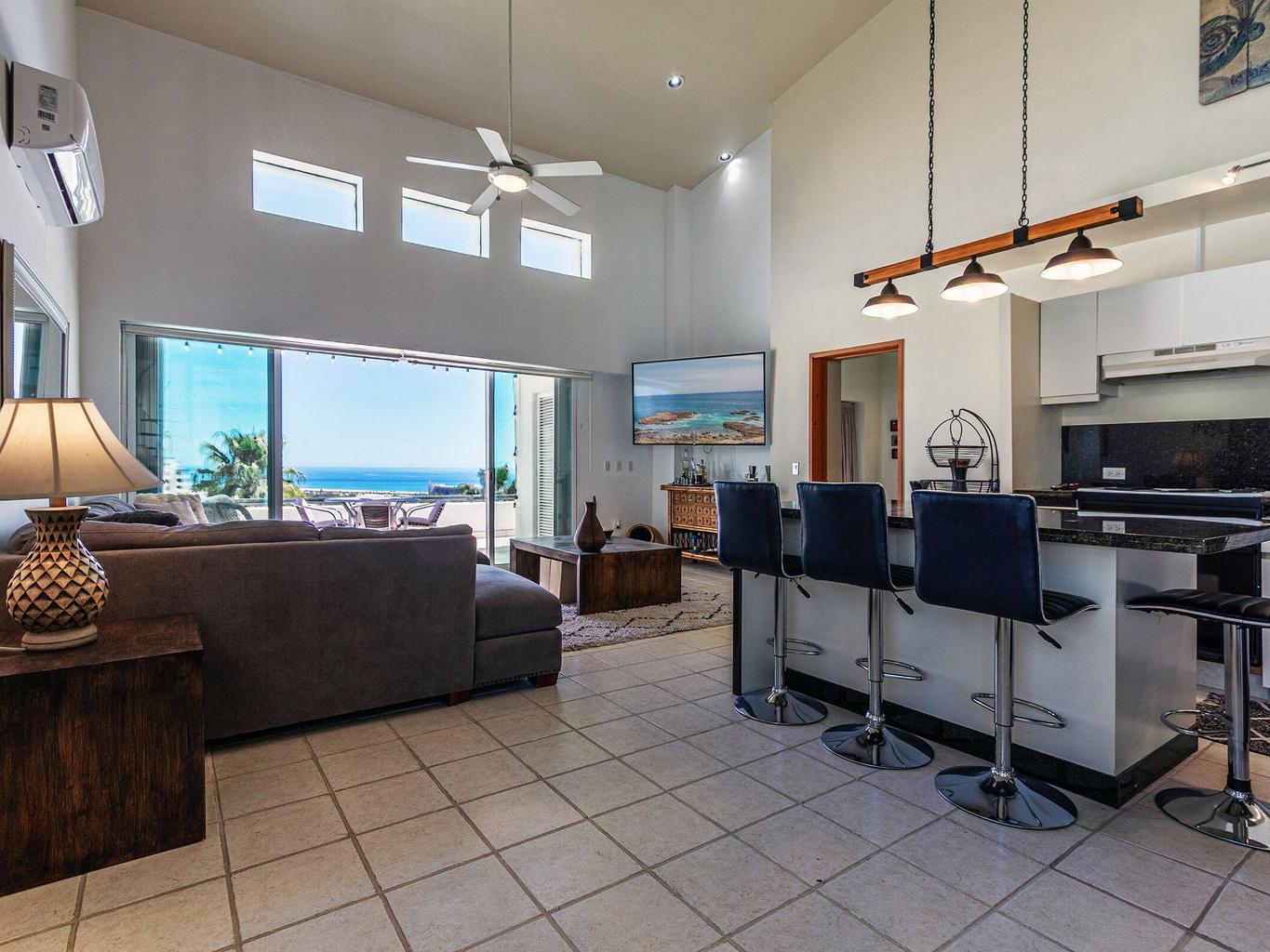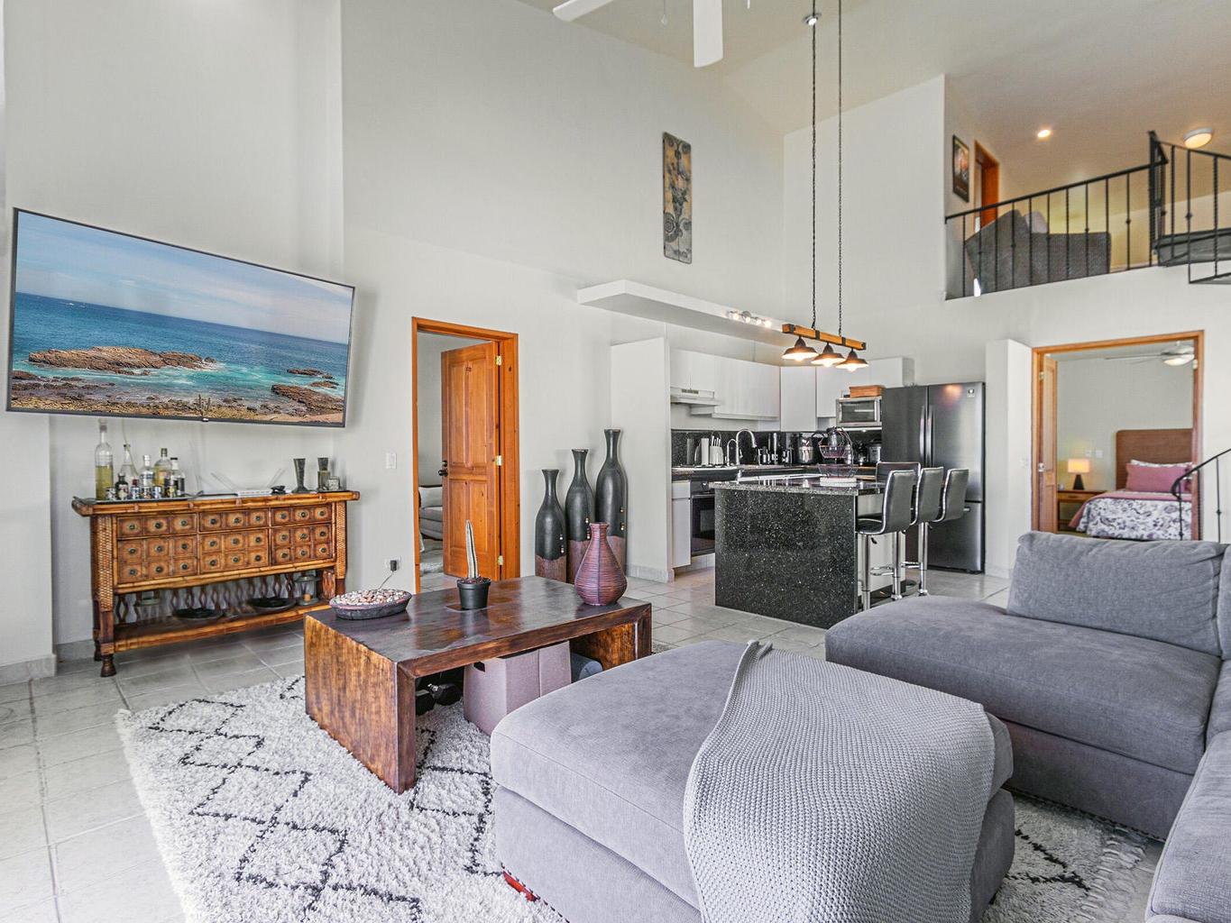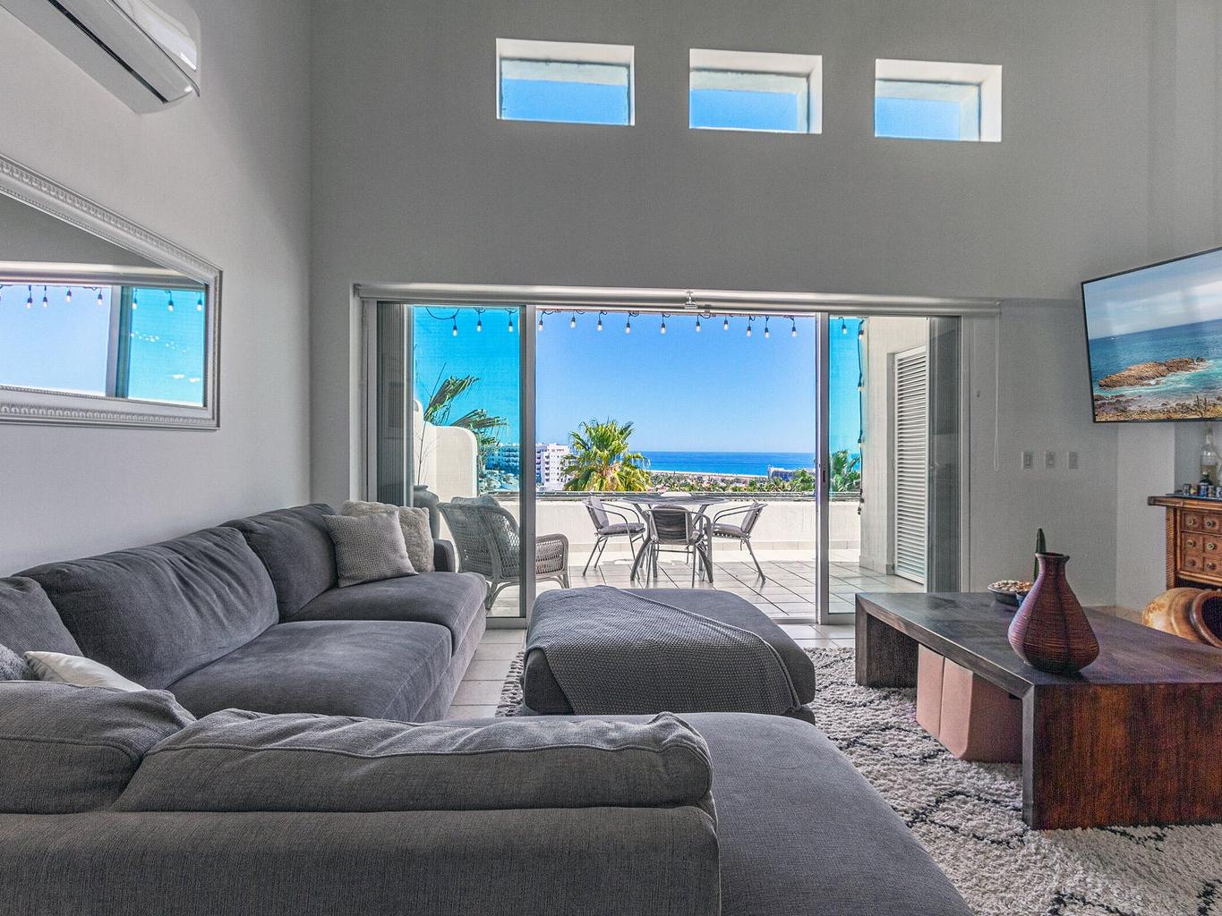 Amazing panoramic views set this two level penthouse condo apart from the rest! Look no further if you need that special ocean scenery from your very own large terrace off the master bedroom as well kitchen/living room. Located in the small yet exclusive gated community of Loma Linda perched on the hillside overlooking the surrounding area. Extremely spacious with high vaulted ceilings and large master bedroom/bathroom with jetted tub and shower including extra storage space and double vanity. two full bedrooms with ensuite baths and a third sleeping quarters/bathroom upstairs on overhead loft.Fully furnished and decorated this unit needs nothing to move in and cali your own right now! No pets or short term rentals permitted in this peaceful tranquil piece of paradise!