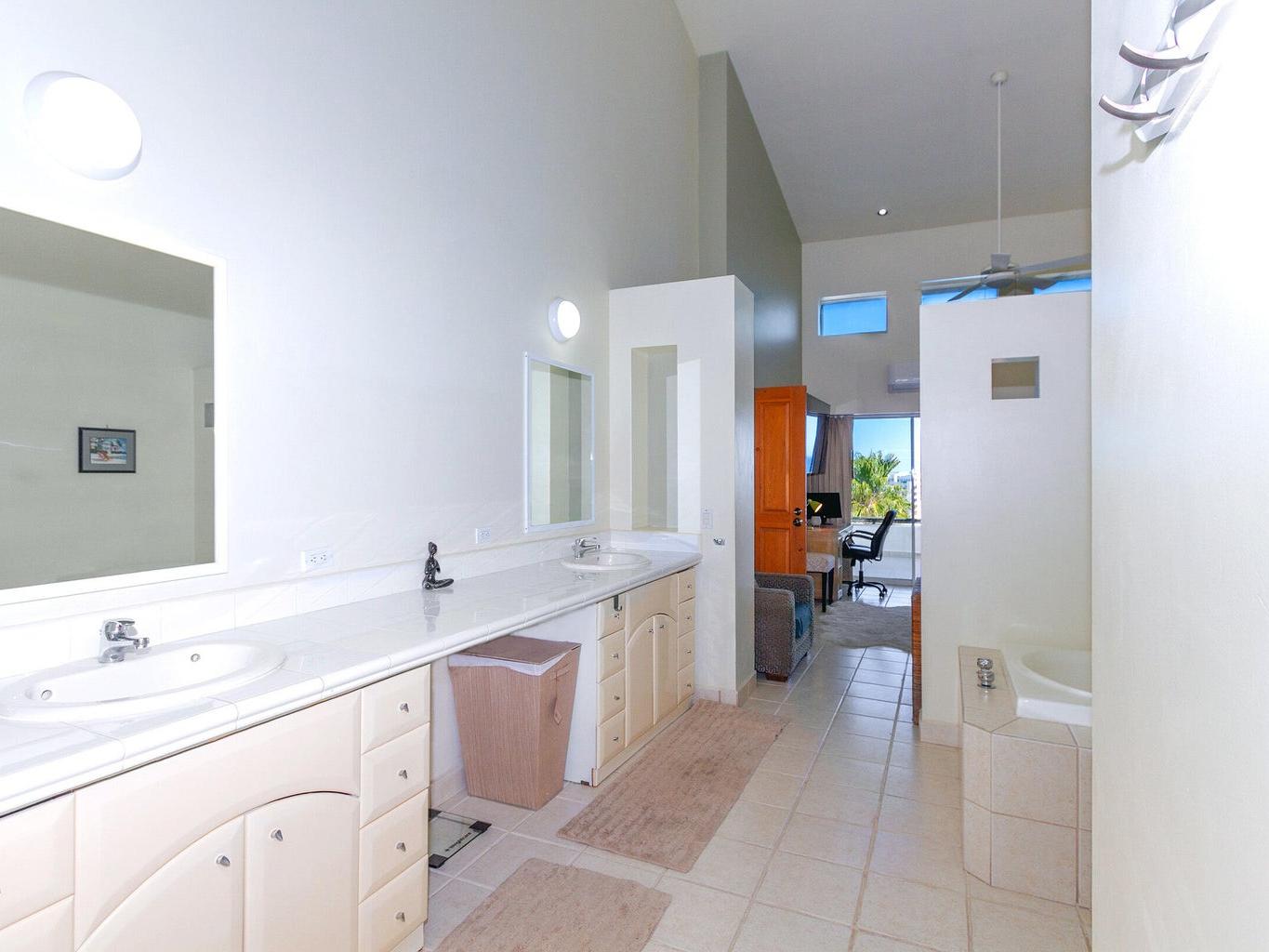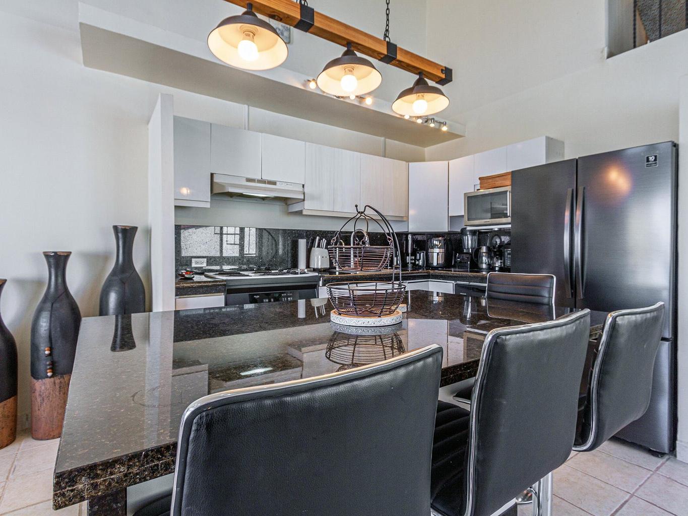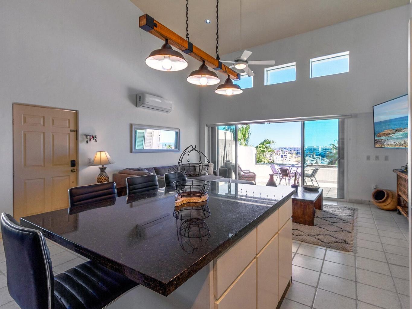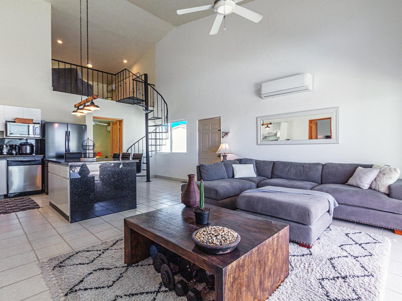Amazing panoramic views set this two level penthouse condo apart from the rest! Look no further if you need that special ocean scenery from your very own large terrace off the master bedroom as well kitchen/living room. Located in the small yet exclusive gated community of Loma Linda perched on the hillside overlooking the surrounding area. Extremely spacious with high vaulted ceilings and large master bedroom/bathroom with jetted tub and shower including extra storage space and double vanity. two full bedrooms with ensuite baths and a third sleeping quarters/bathroom upstairs on overhead loft.Fully furnished and decorated this unit needs nothing to move in and cali your own right now! No pets or short term rentals permitted in this peaceful tranquil piece of paradise!