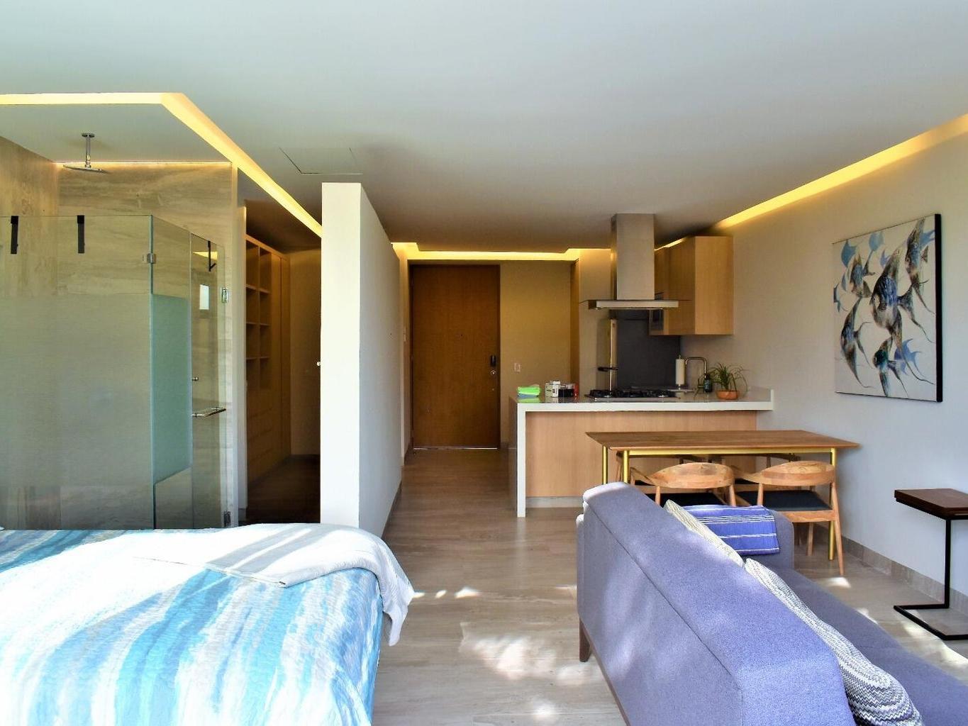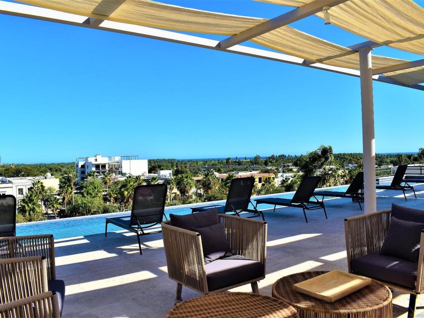 Perfectly positioned in the heart of San José del Cabo, this beautifully furnished studio condo delivers the best of walkable downtown living with strong income potential. Located just steps from restaurants, cafés, galleries, boutique shopping, the historic Art Walk, and the beach, this is one of those rare properties where location truly does the heavy lifting. The residence is turnkey and thoughtfully designed, featuring modern, up-to-date appliances, air conditioning, and stylish finishes that appeal to both short-term renters and personal use. Its cozy yet efficient layout has consistently attracted vacation guests, resulting in high occupancy and a proven rental track record. Owners and guests alike can enjoy sweeping sunset views from the rooftop common area, overlooking downtown