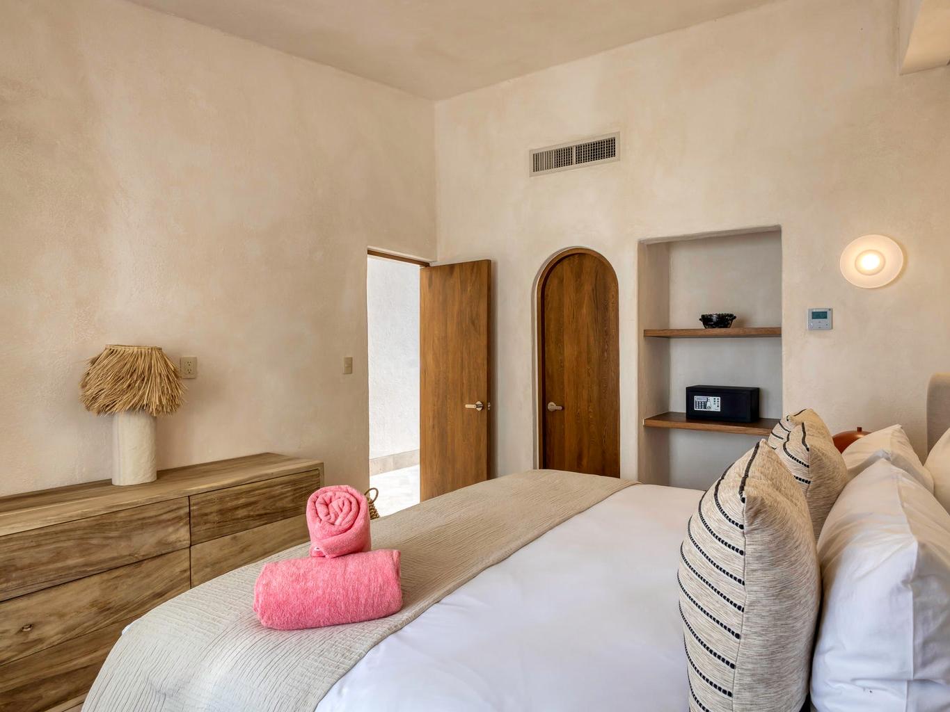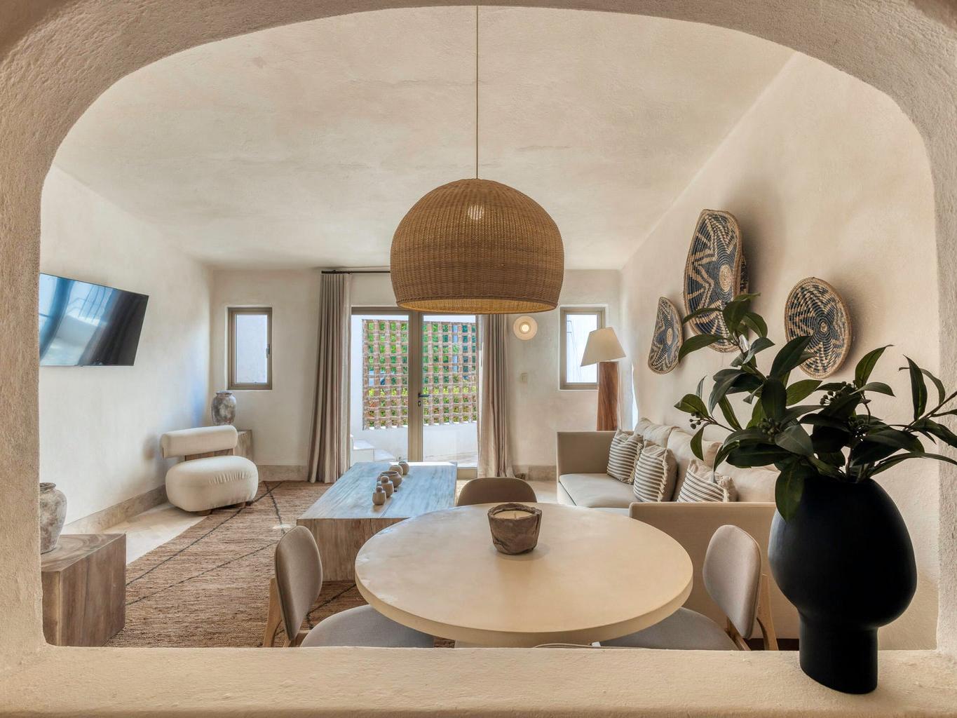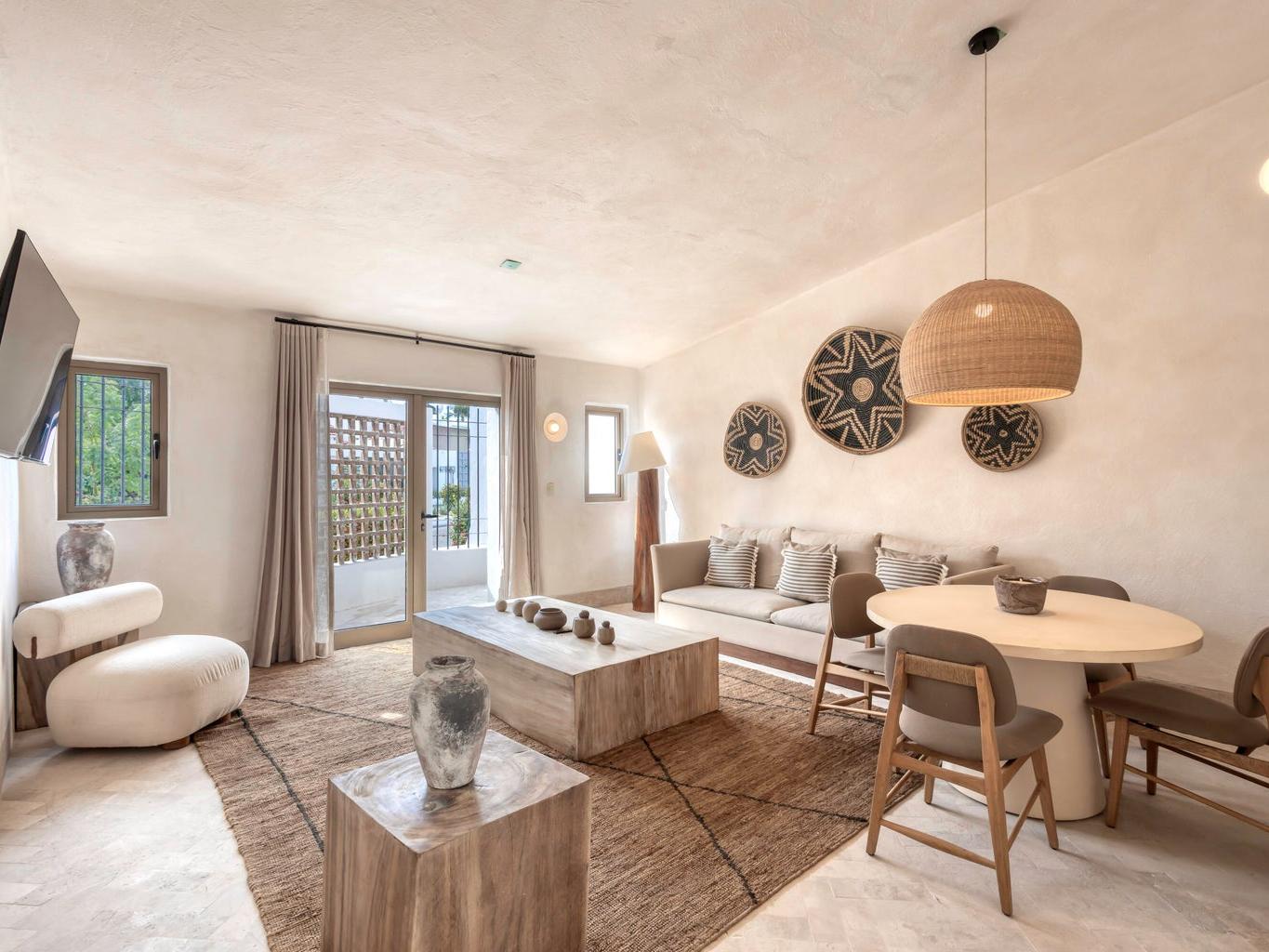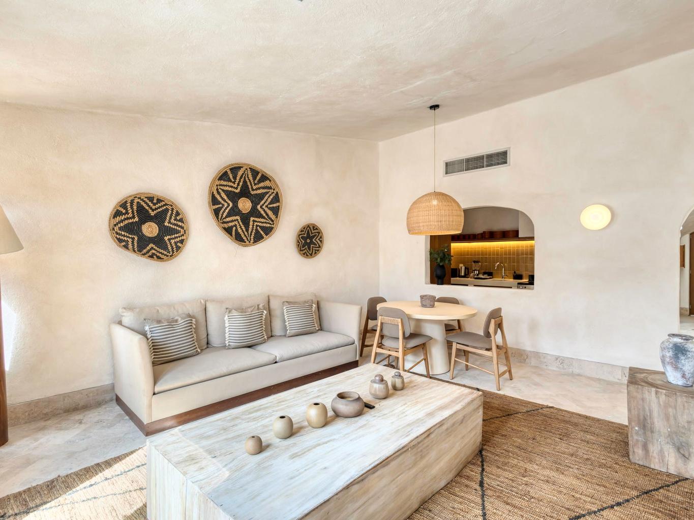 This charming casita at Casa Nima features a spacious living and dining area, a bright kitchen with quartz countertops, and a full Jack-and-Jill bathroom.