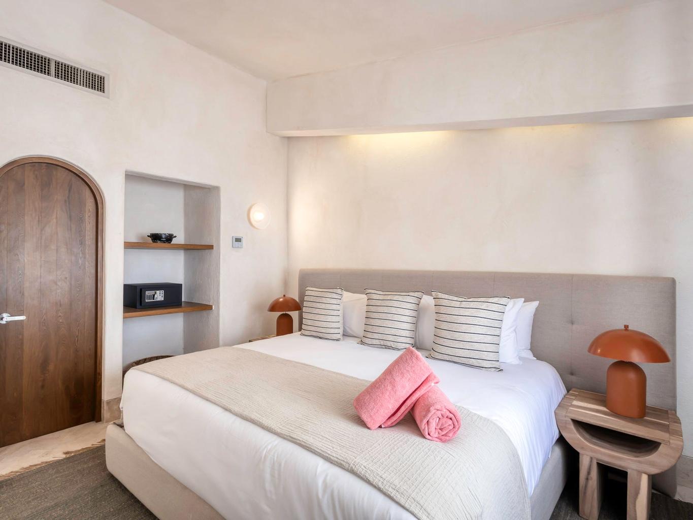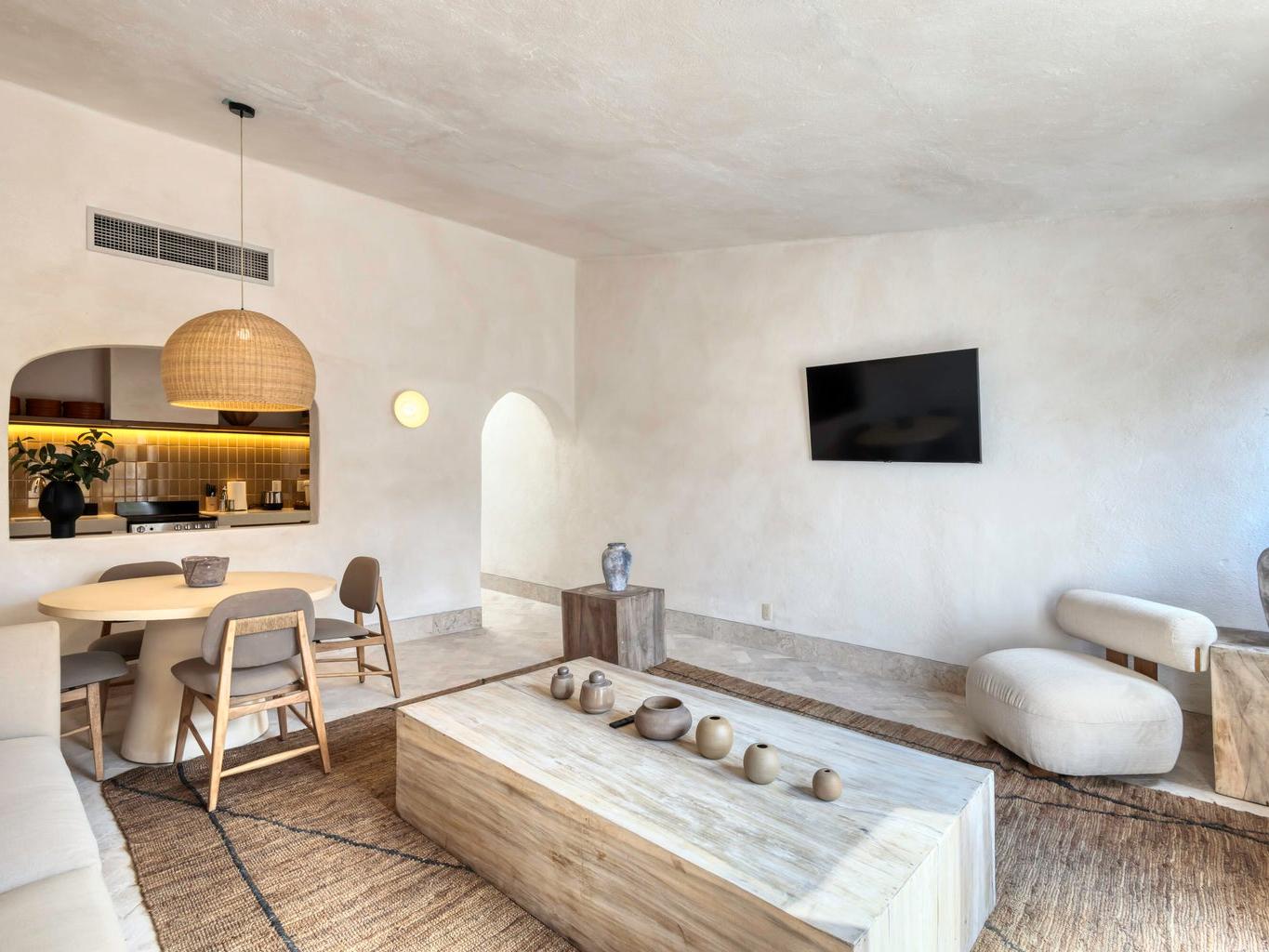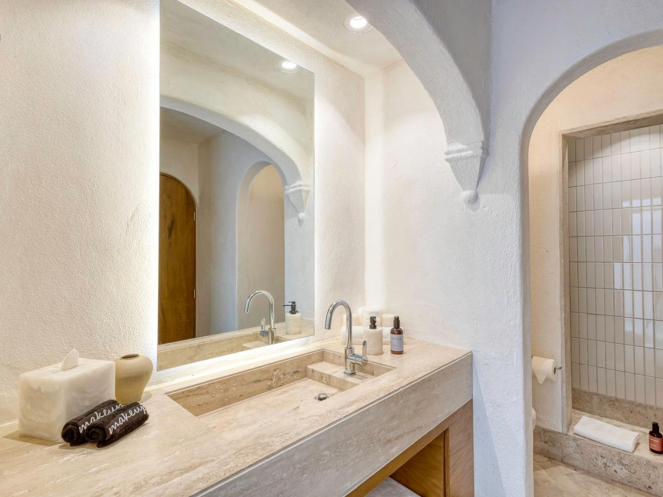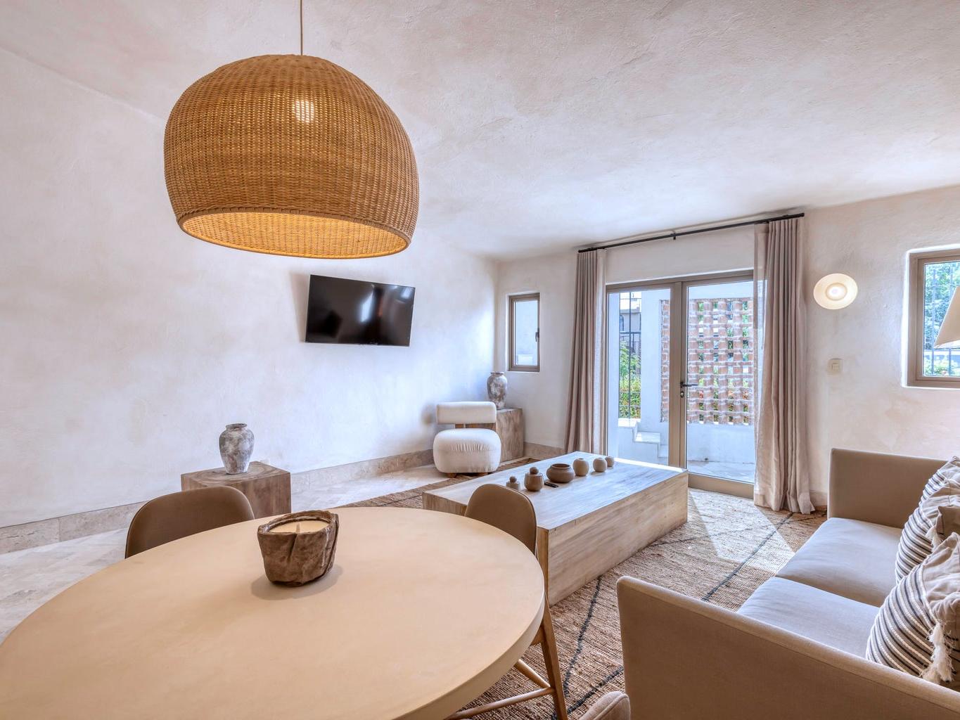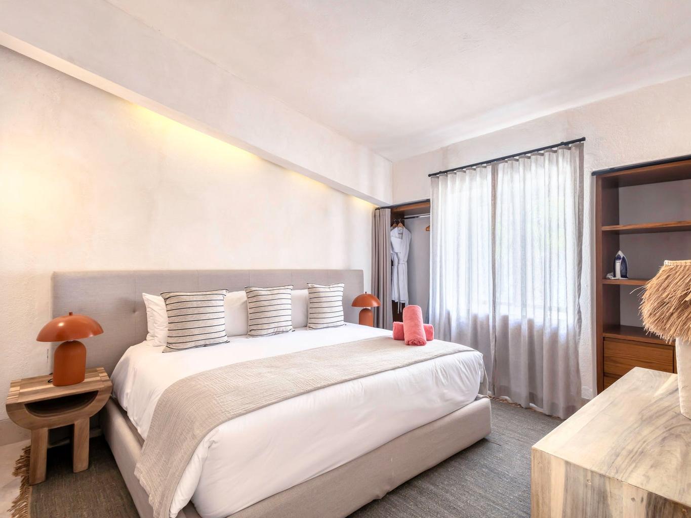 This charming casita at Casa Nima features a spacious living and dining area, a bright kitchen with quartz countertops, and a full Jack-and-Jill bathroom.