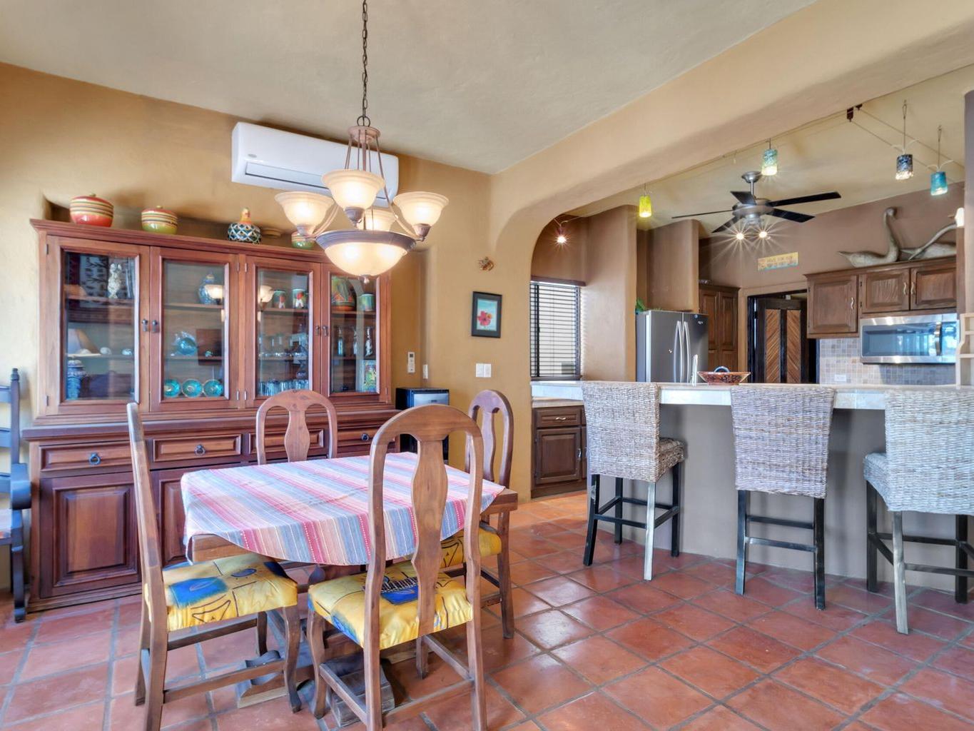 Welcome to Casa Delfines, located on the 7th hole of Vidanta. This home has 3 bedrooms and 3.5 bathrooms in the main house as well as a private 1 bedroom 1 bathroom casita on the property. You will feel like you are in a lush tropical paradise while you enjoy the salt water pool and outdoor entertainment area. There is access to the golf course from the backyard. There are 3 large storage bodegas on the property as well as a generator and a second cistern. The house is 5 minutes from the Malecon, boutiques, restaurants, grocery stores and 15 minutes to the San Jose Airport. The house has an impressive rental history.