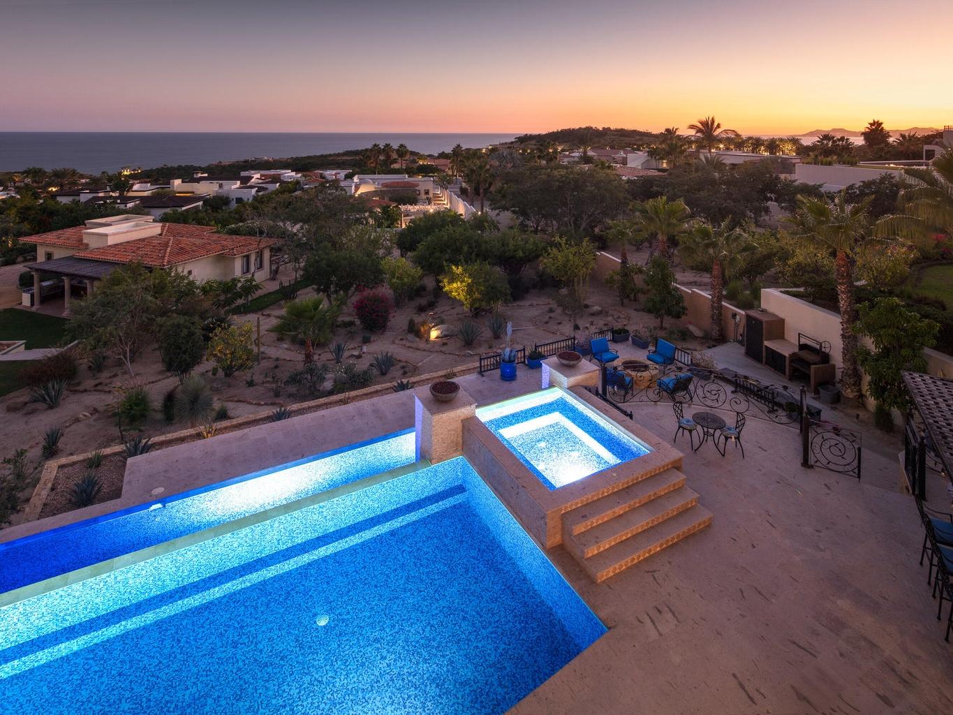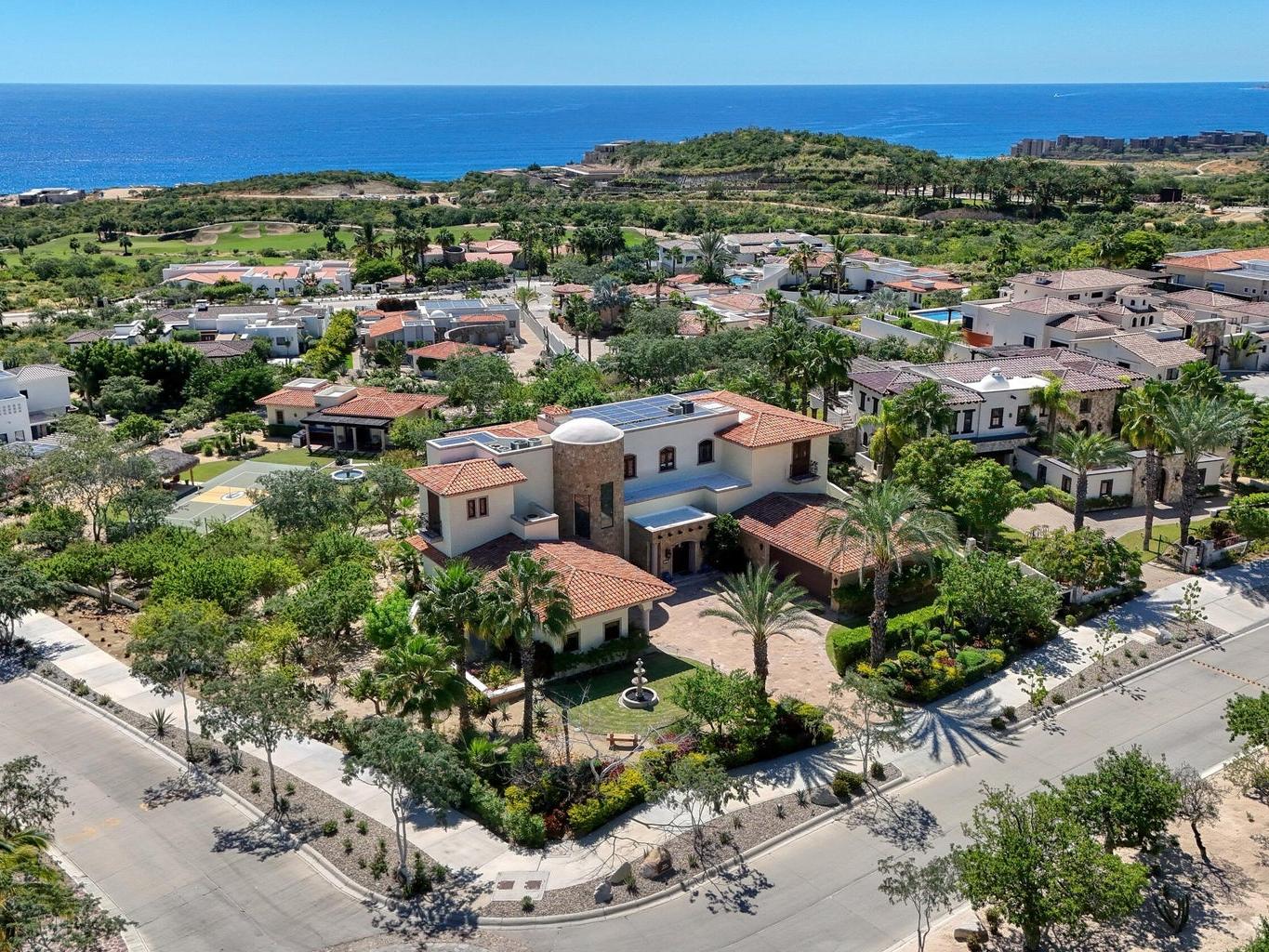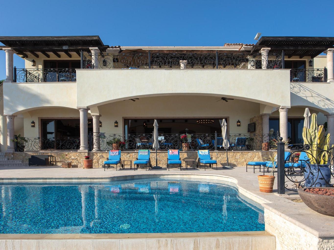 Casa Miramar, Puerto Los Cabos — A timeless Hacienda-style estate perched above the Sea of Cortez in one of Cabo's most prestigious gated communities. This residence features 4 spacious bedrooms, 5 bathrooms, a dedicated office, and a separate TV/media room. Enjoy clear ocean views from both the first and second levels, elegant architectural details, and seamless indoor-outdoor living designed for entertaining and relaxation.