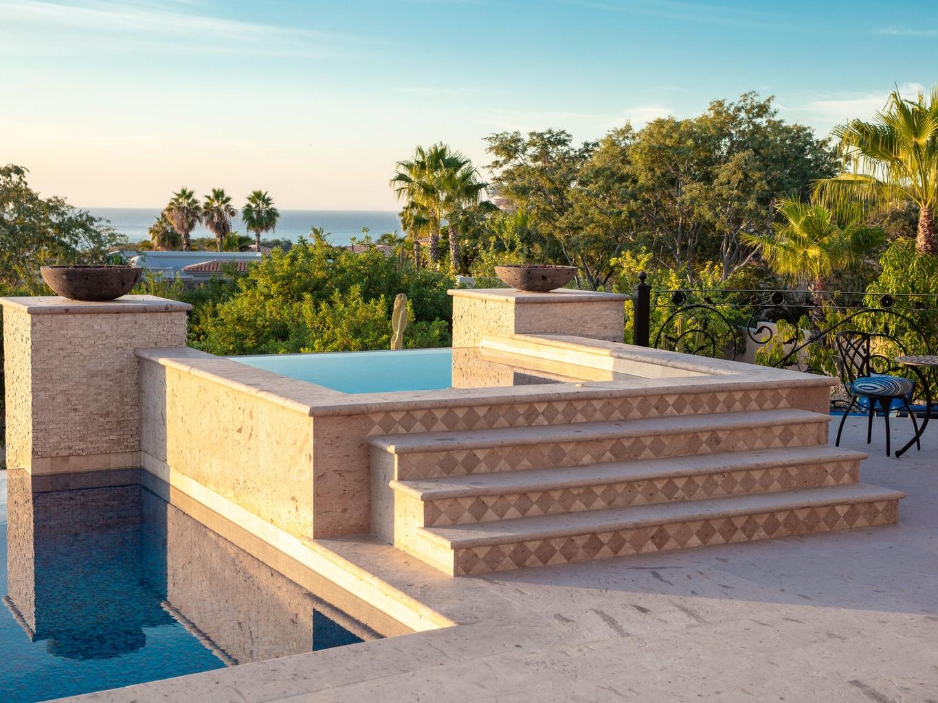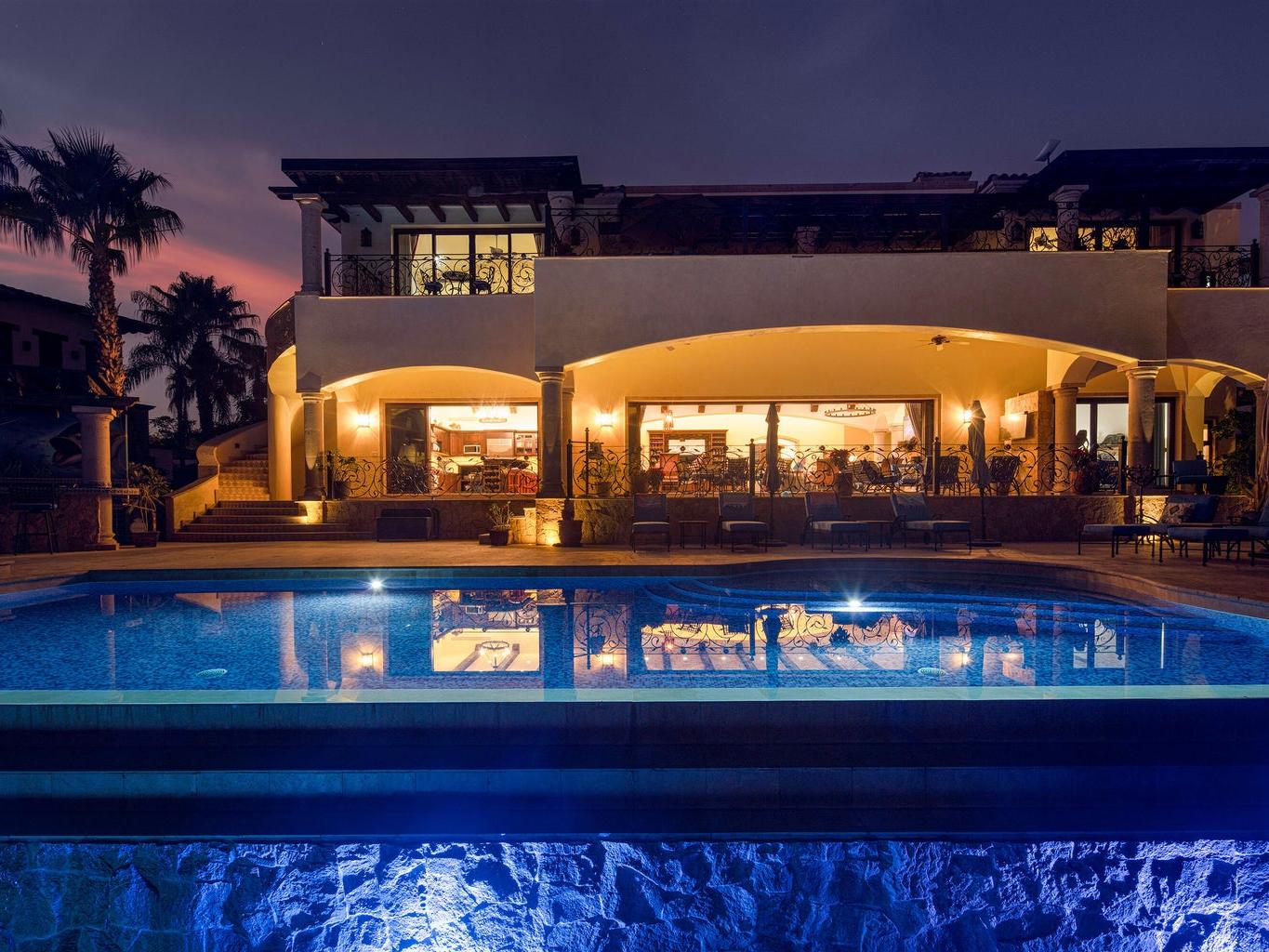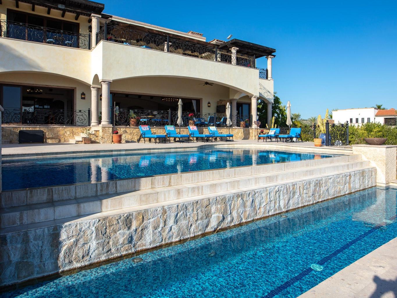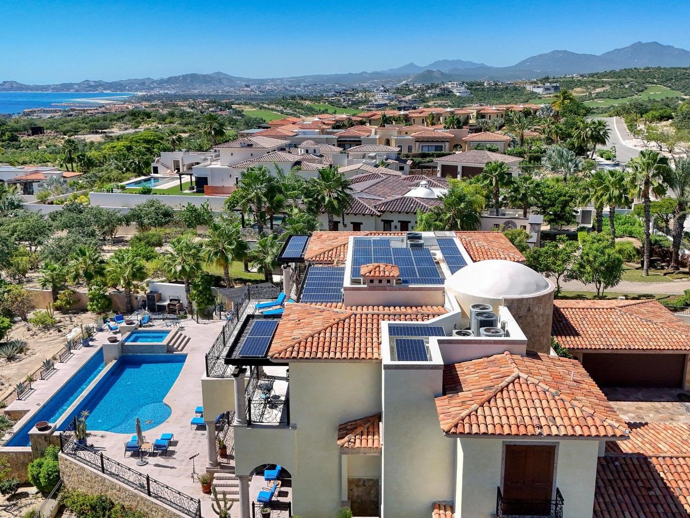 Casa Miramar, Puerto Los Cabos — A timeless Hacienda-style estate perched above the Sea of Cortez in one of Cabo's most prestigious gated communities. This residence features 4 spacious bedrooms, 5 bathrooms, a dedicated office, and a separate TV/media room. Enjoy clear ocean views from both the first and second levels, elegant architectural details, and seamless indoor-outdoor living designed for entertaining and relaxation.