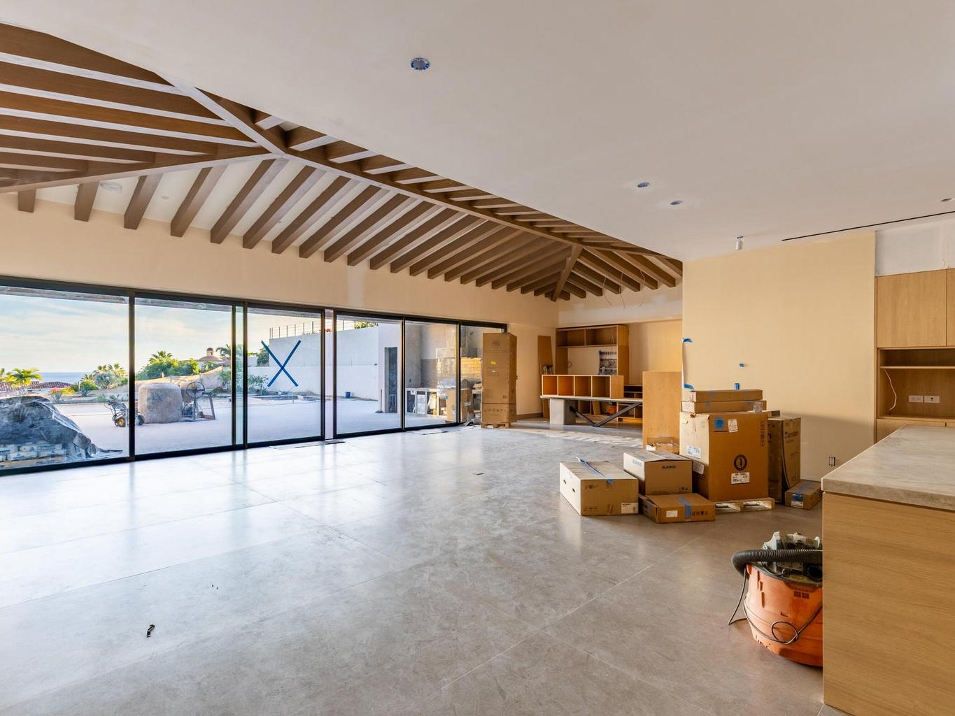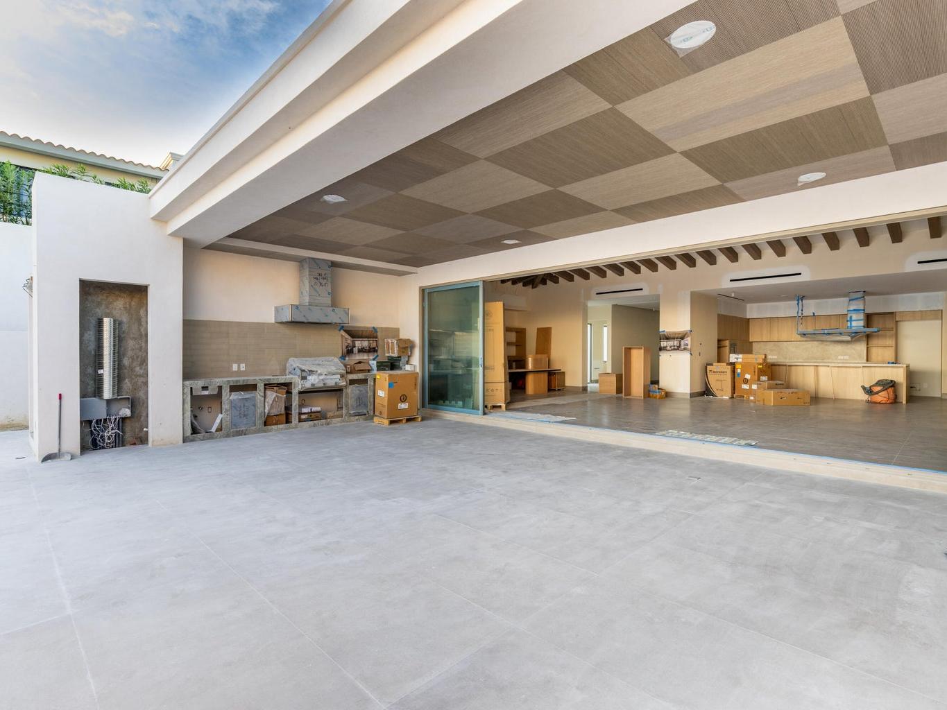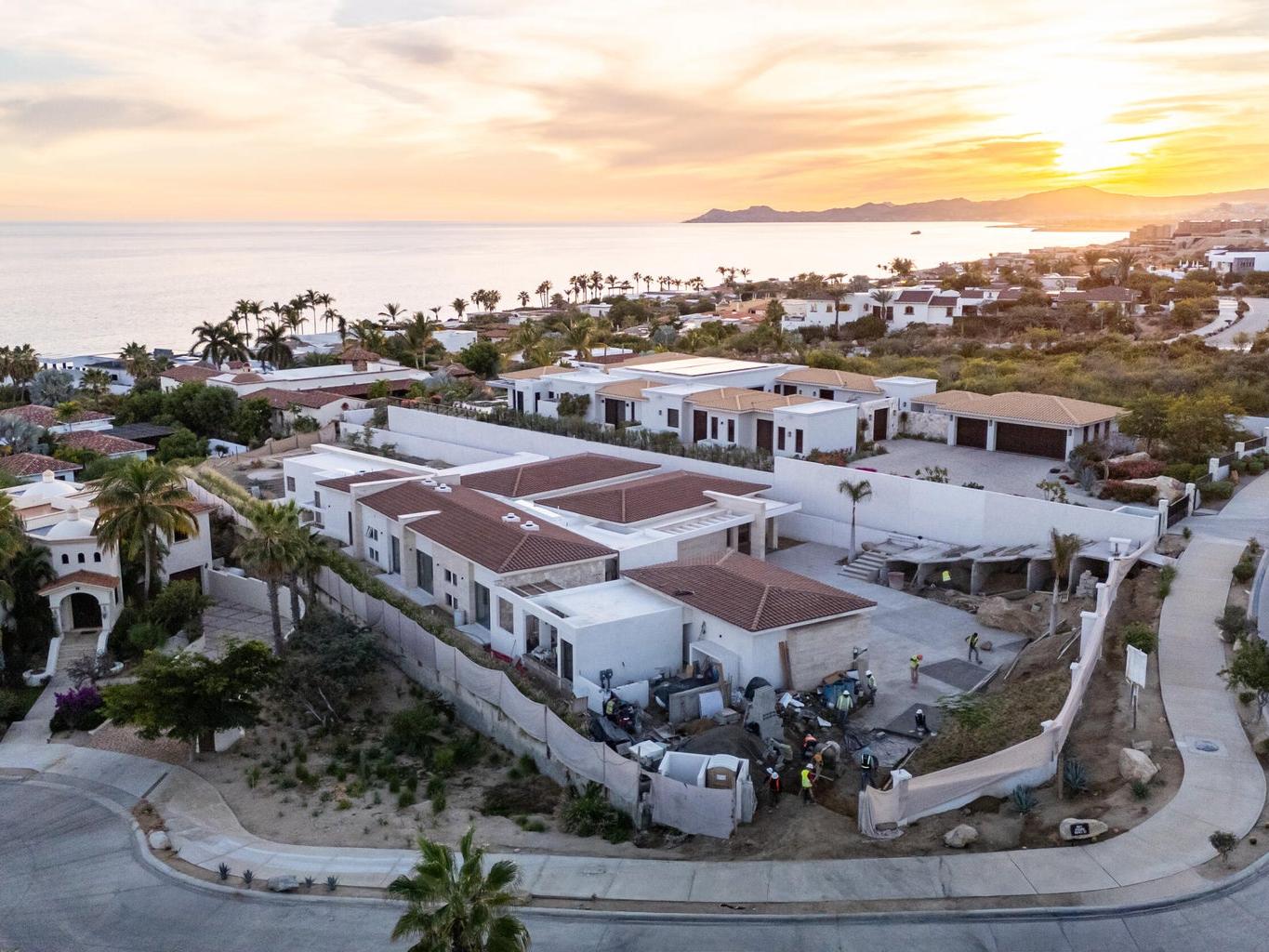 Construction is 95% complete as of December 2025, offering a rare opportunity to step into refined luxury in the prestigious Fundadores community of Puerto Los Cabos. This exceptional residence captures breathtaking views of the Sea of Cortez from a third-row lot, just approximately 200 meters from the ocean.