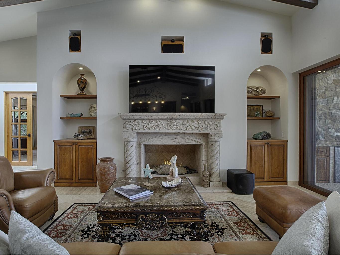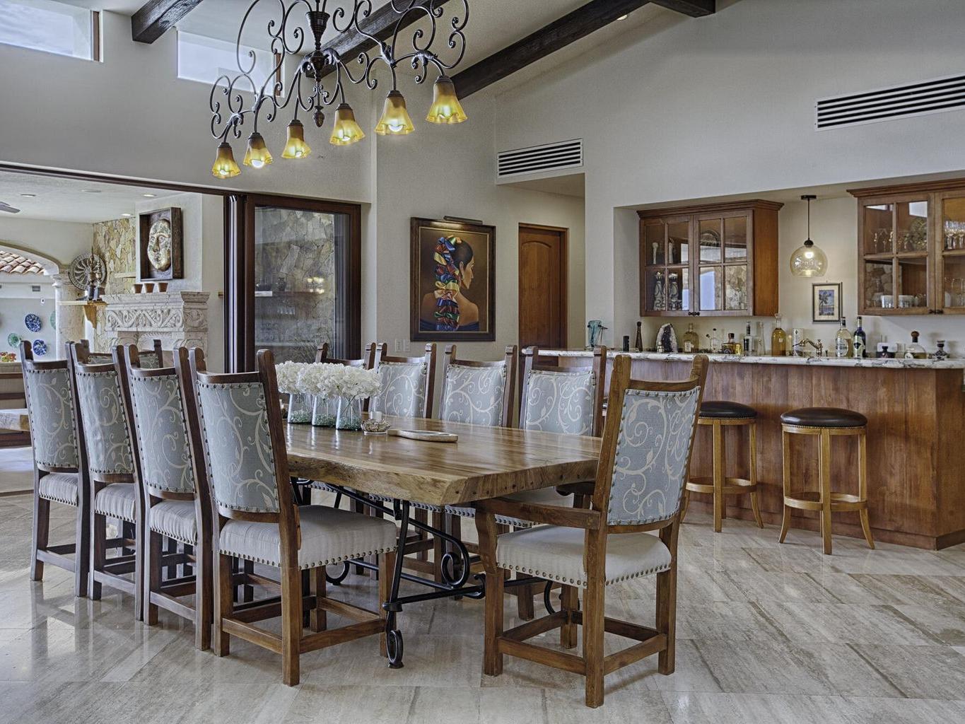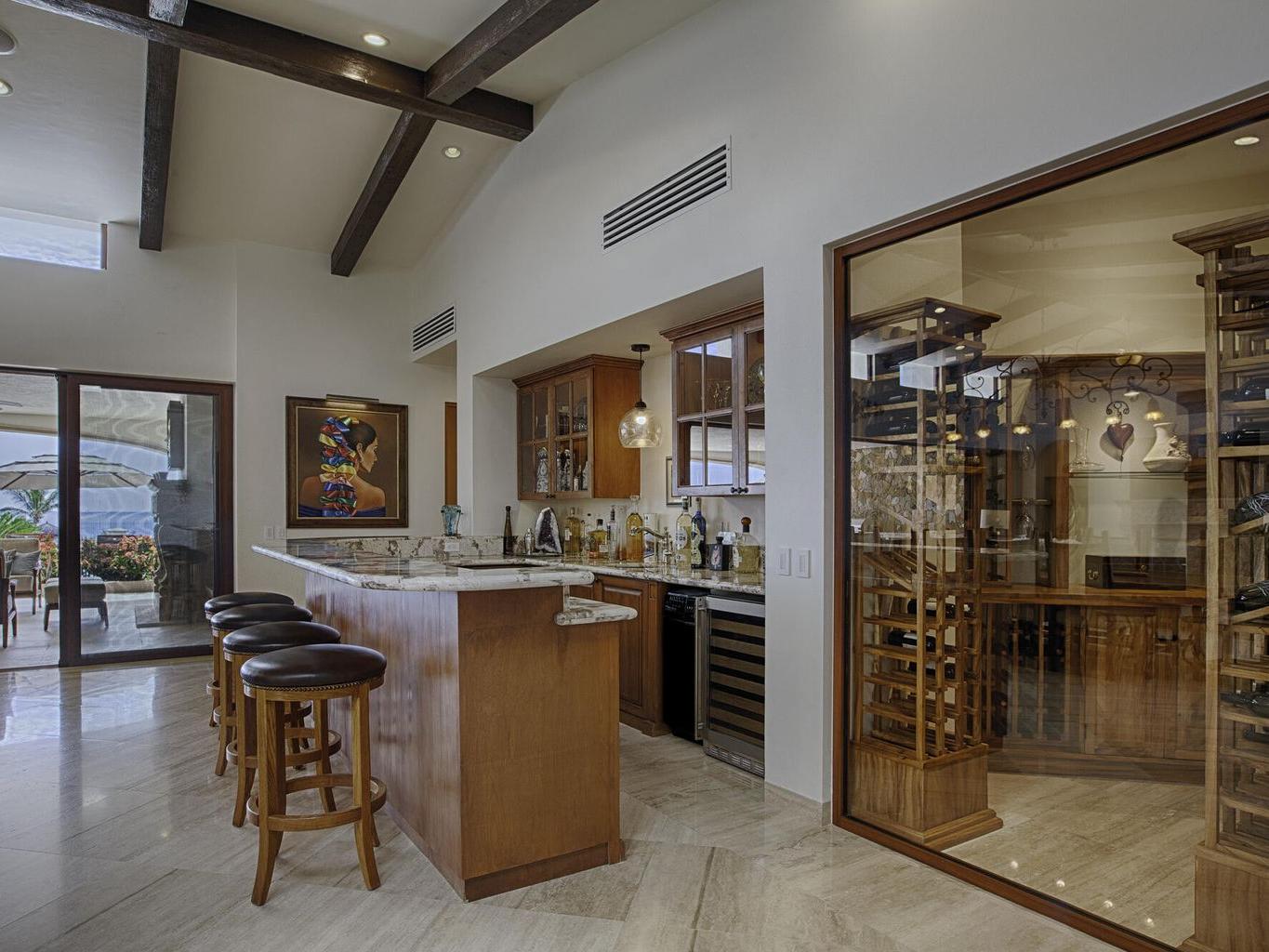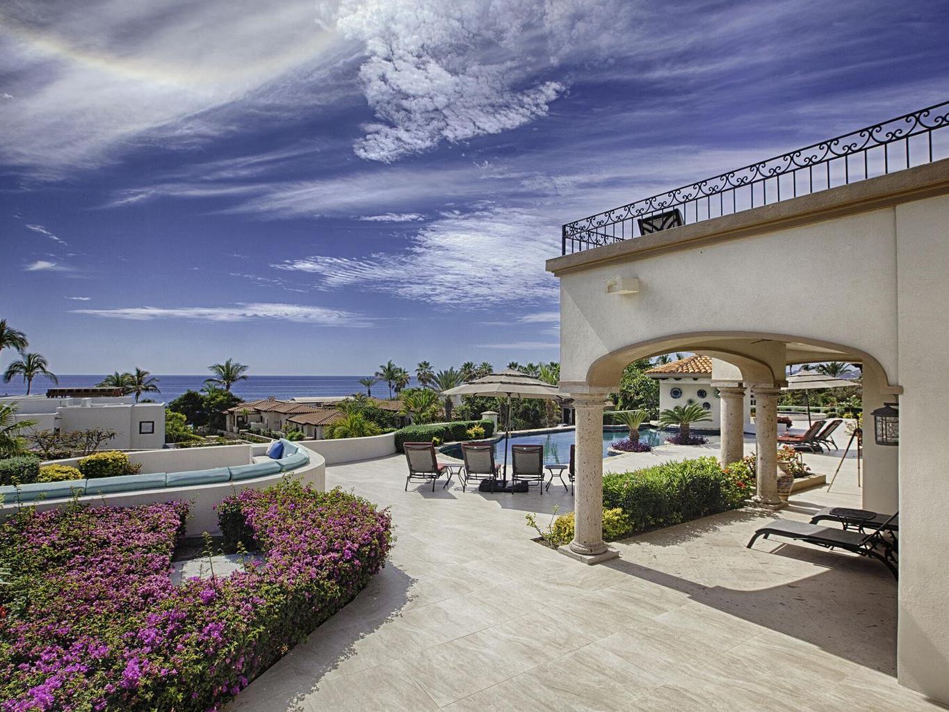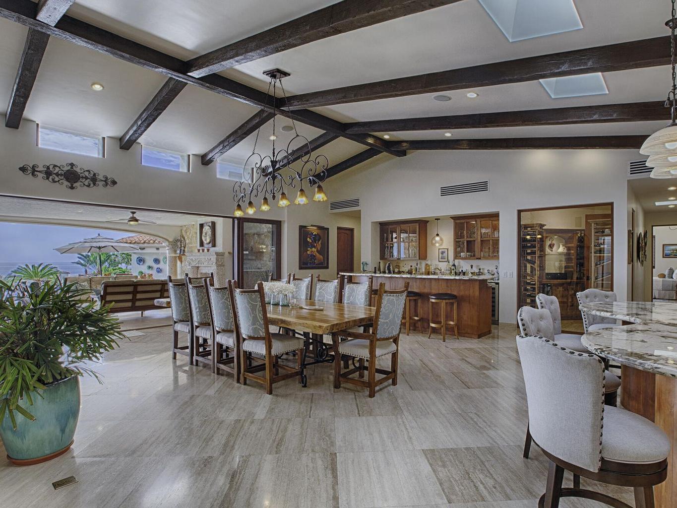 A private coastal sanctuary is this newer 2nd row oceanfront villa meticulously maintained for supreme privacy & luxury. Tranquil cul-de-sac, no thru traffic, beach access across street, easy walk to private Beach Club. 5 bedrooms w/ en-suite baths (one serves as office), 2 half baths, big ocean views from nearly every room. Epic outdoor retreat: expansive terraces with large pool and swim-up bar, Jacuzzi, firepit, rooftop terrace offering 360° ocean & mountain views. Large-shaded outdoor living/dining w/fireplace, gourmet outdoor BBQ kitchen. Home features breathtaking Custom Parotta wood wine room, premium 4K theater, elegant custom bar w/appliances. Single-story, flooded with natural light via windows & skylights, 29 solar panels, ultra-low bills, on-demand water heaters