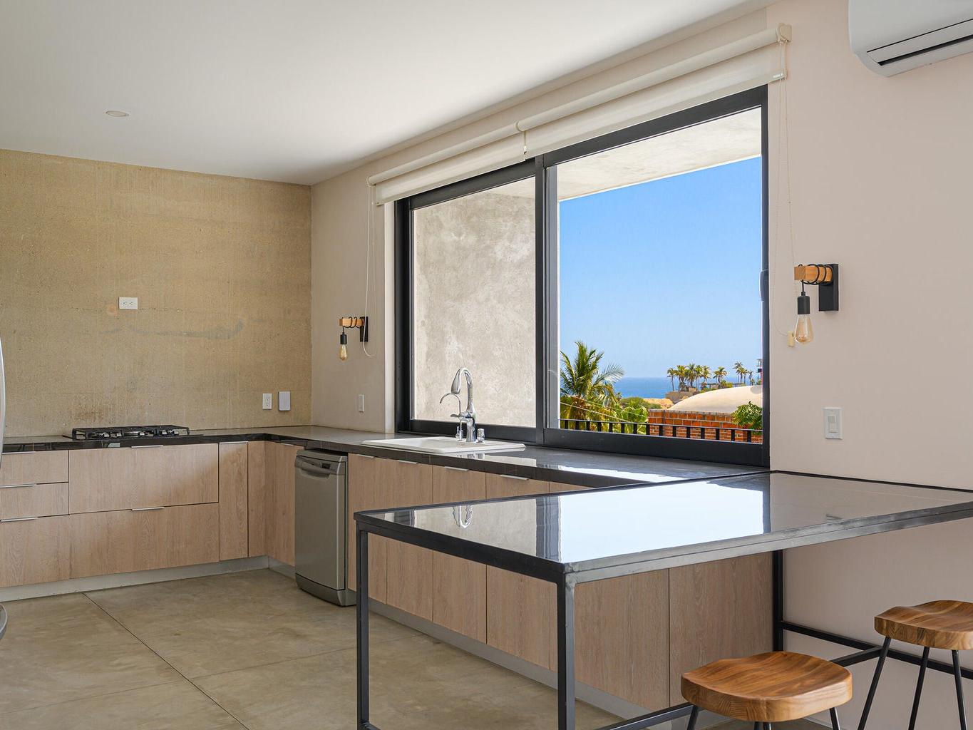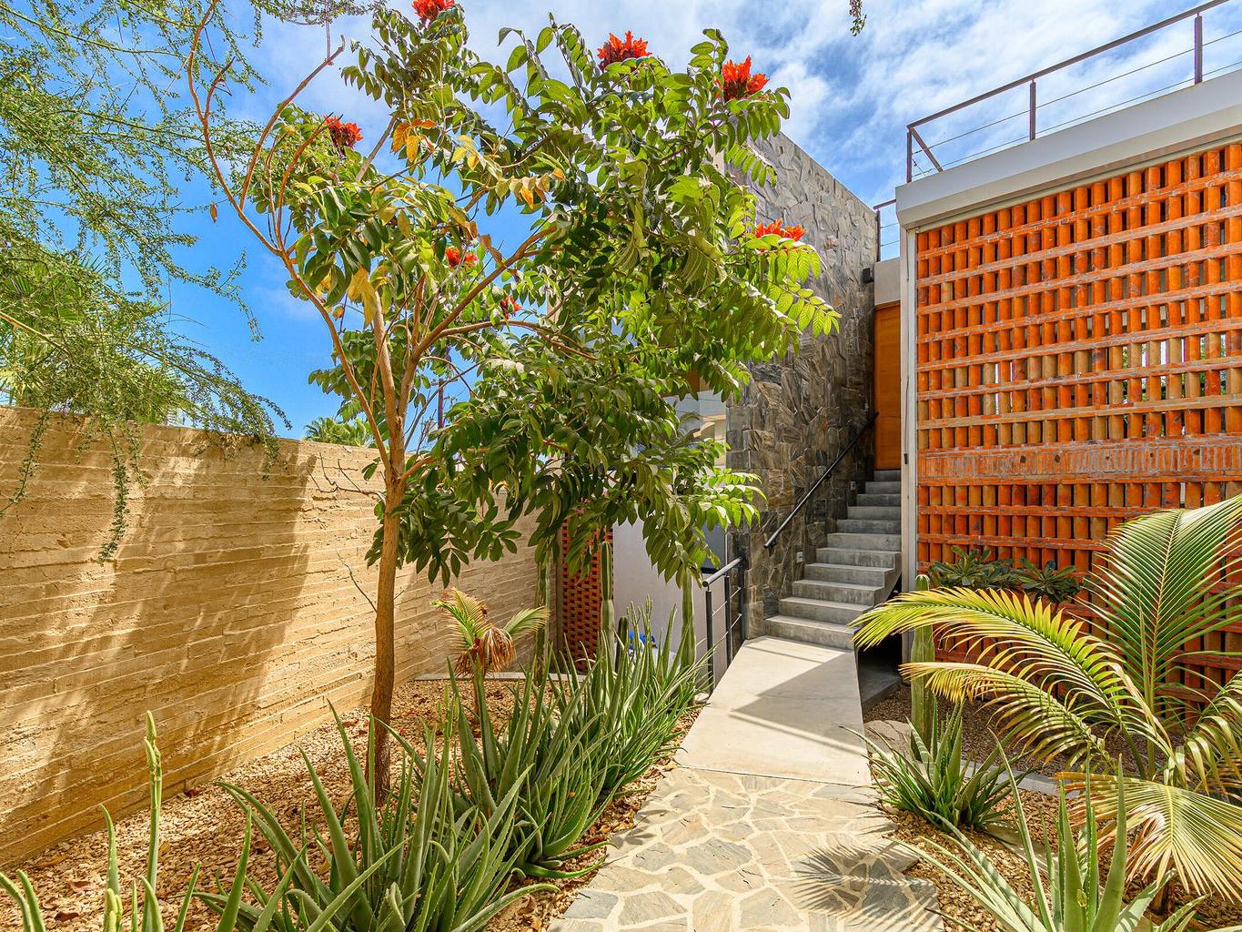 Tucked into the coveted hillside community of Gringo Hills in Costa Azul, Casa Asha is a contemporary residence by architect Gonzalo Elizarraras. Set on a 519sm lot, the 3-bedroom home blends natural Baja materials with modern architecture, open living spaces, and expansive terraces. The upper-level living, dining, and kitchen flow to a generous terrace, while the lower level opens to a lush garden ideal for entertaining under the shade of mature trees. The rooftop offers a versatile space perfect for sunrise yoga, morning coffee, or a BBQ overlooking the Sea of Cortez. Just a short walk to Costa Azul beach and minutes from San José's historic center, Gringo Hills offers a relaxed lifestyle loved by surfers, artists, and long-time locals.