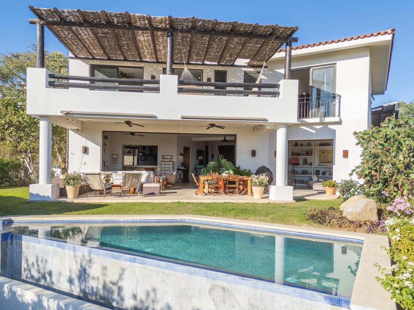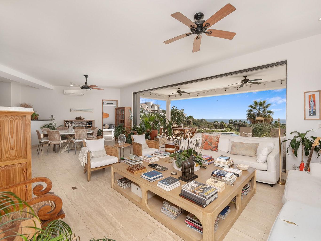 This luxurious residence showcases elegant contemporary architecture, enhanced by breathtaking views of the desert, mountains, and ocean. The property is harmoniously integrated into a landscape designed by the renowned Jack Nicklaus Golf Design. With an emphasis on Cabo's iconic outdoor living, the home features seamless indoor-outdoor transitions, creating a harmonious flow between spaces. The thoughtfully designed family home includes a spacious master suite with a private terrace and a walk-in closet, along with two additional guest bedrooms. A versatile media room can easily be converted into a fifth bedroom, while a stunning infinity pool invites relaxation and entertainment. A separate entrance leads to a maid's quarters for added privacy and convenience.