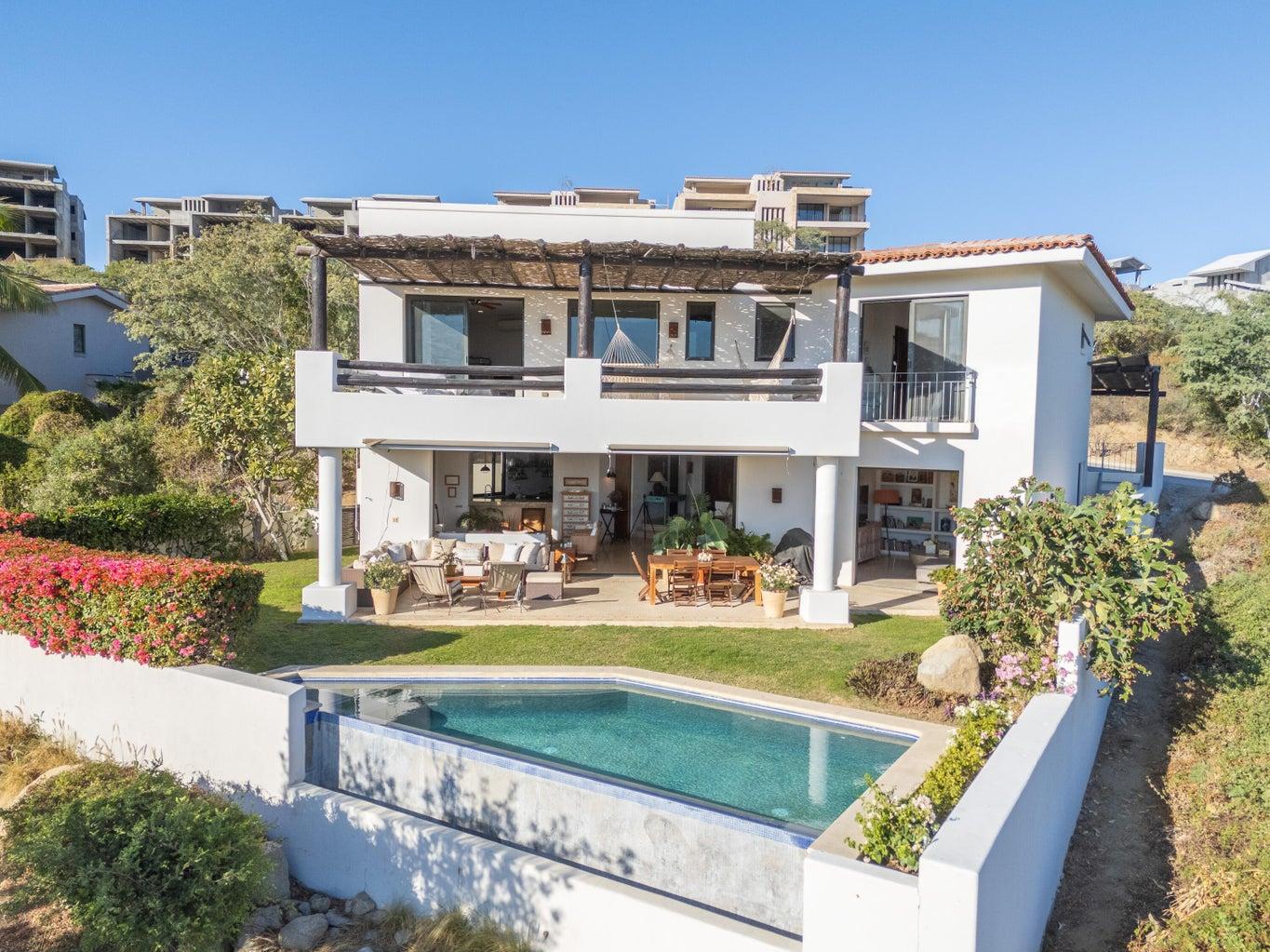 This luxurious residence showcases elegant contemporary architecture, enhanced by breathtaking views of the desert, mountains, and ocean. The property is harmoniously integrated into a landscape designed by the renowned Jack Nicklaus Golf Design. With an emphasis on Cabo's iconic outdoor living, the home features seamless indoor-outdoor transitions, creating a harmonious flow between spaces. The thoughtfully designed family home includes a spacious master suite with a private terrace and a walk-in closet, along with two additional guest bedrooms. A versatile media room can easily be converted into a fifth bedroom, while a stunning infinity pool invites relaxation and entertainment. A separate entrance leads to a maid's quarters for added privacy and convenience.