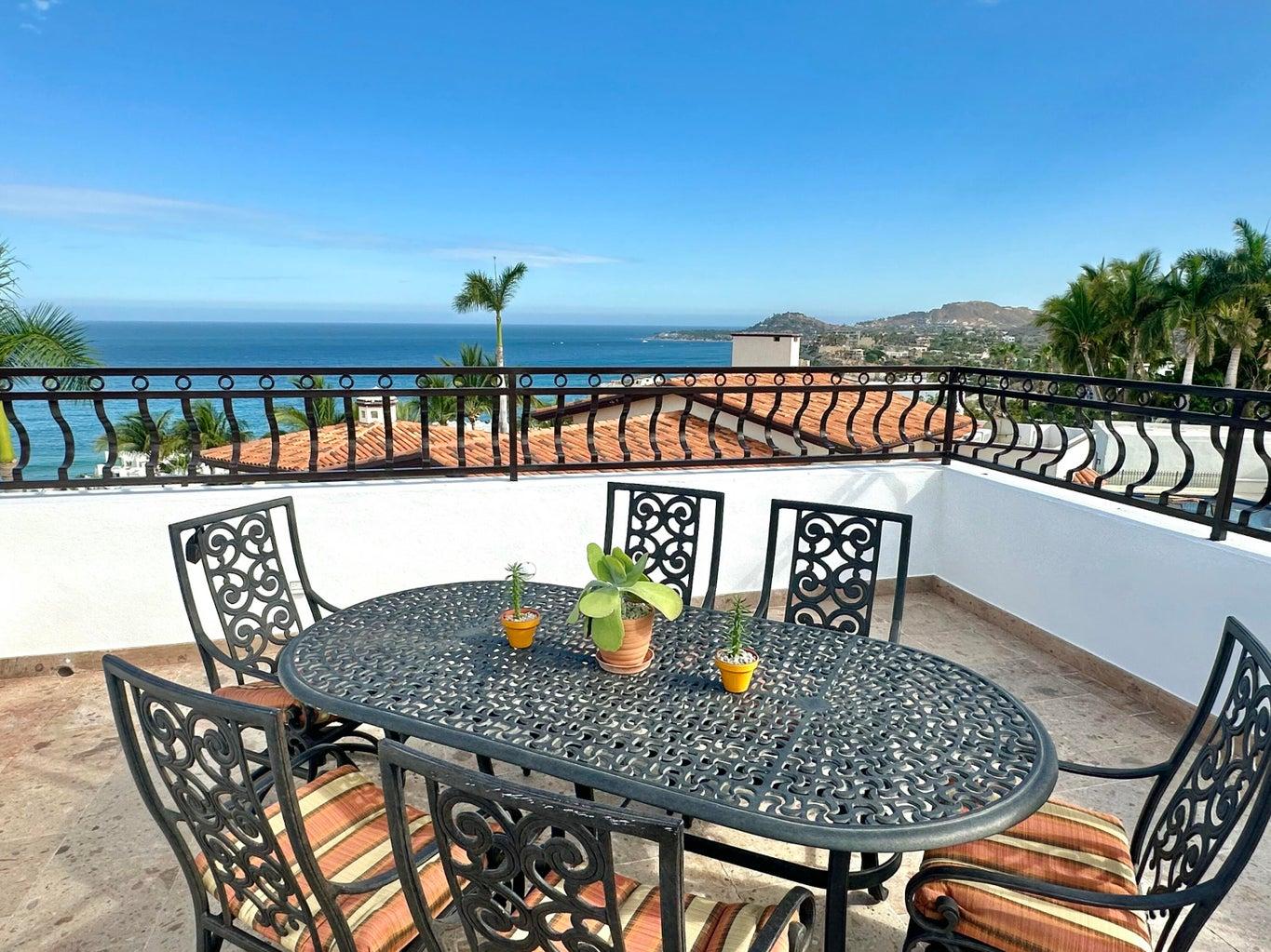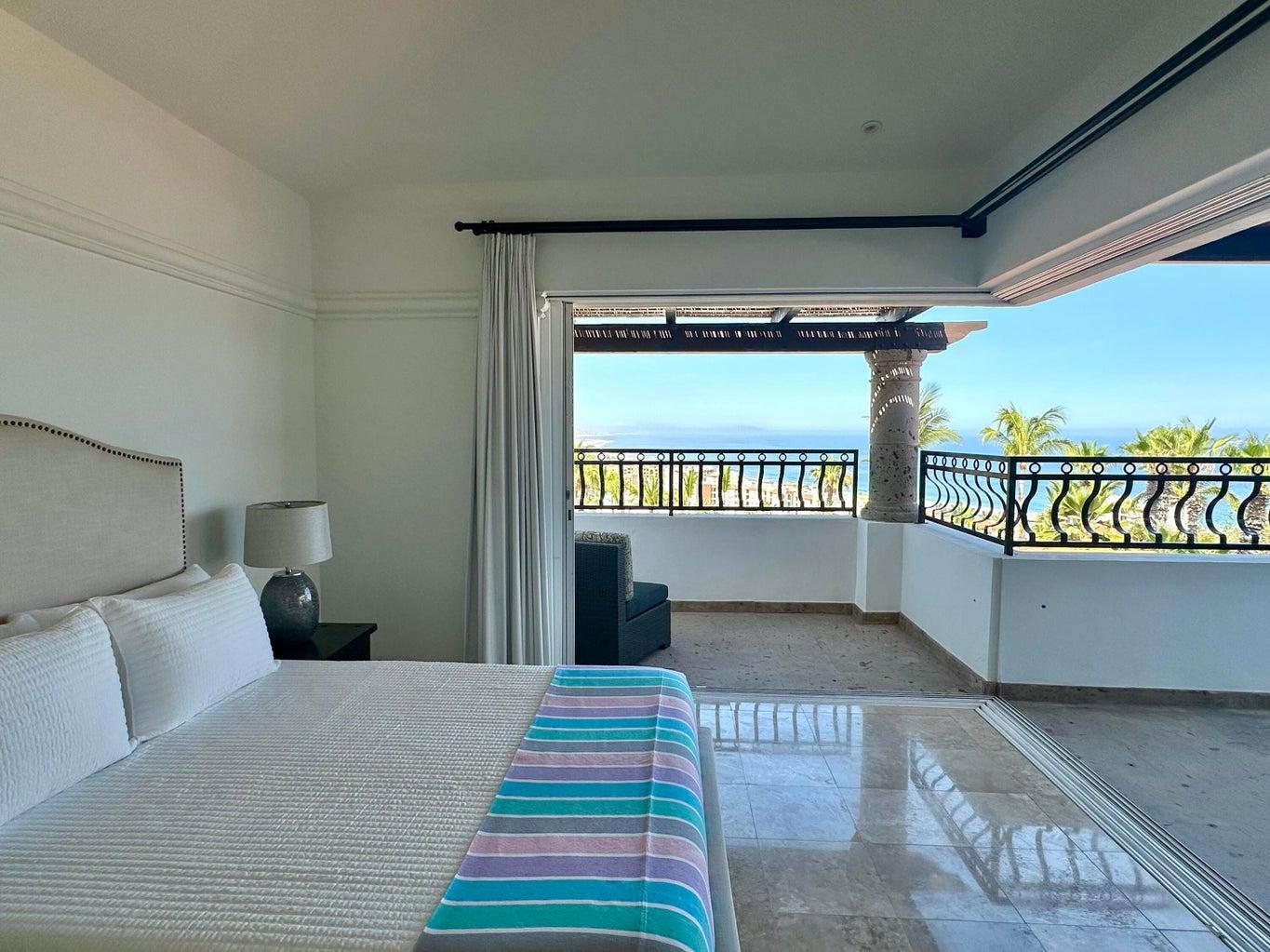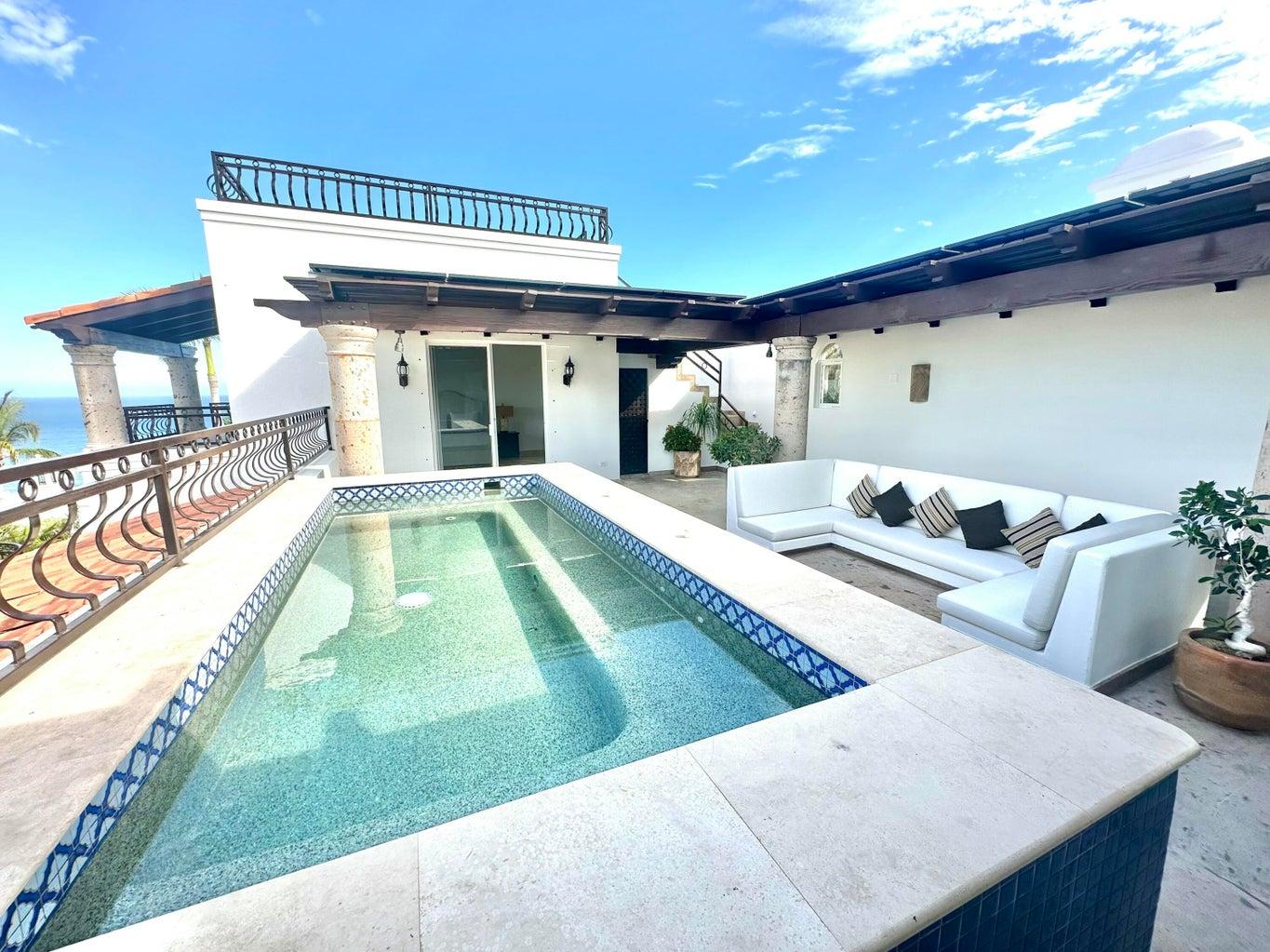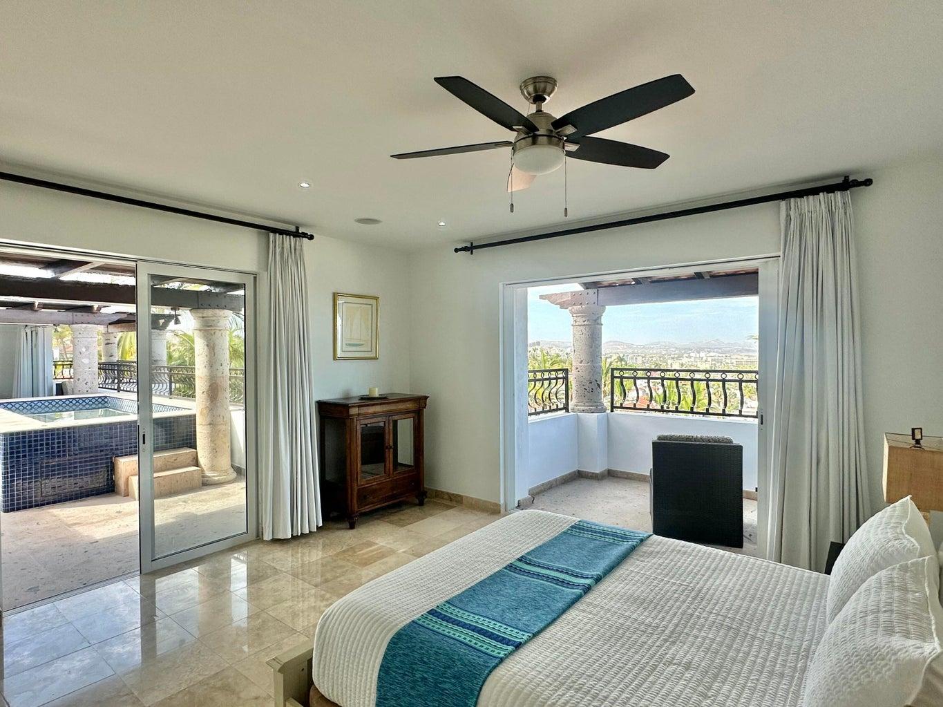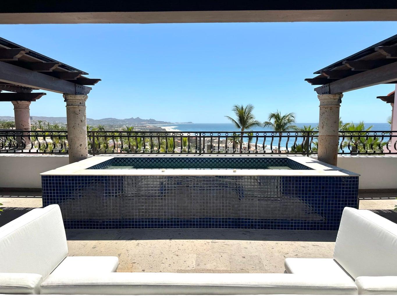 Second floor features 2 bedrooms with 2 ensuite bathrooms, outdoor jacuzzi, terrace, and sitting area with panoramic views from Punta Gorda to Palmilla Point.