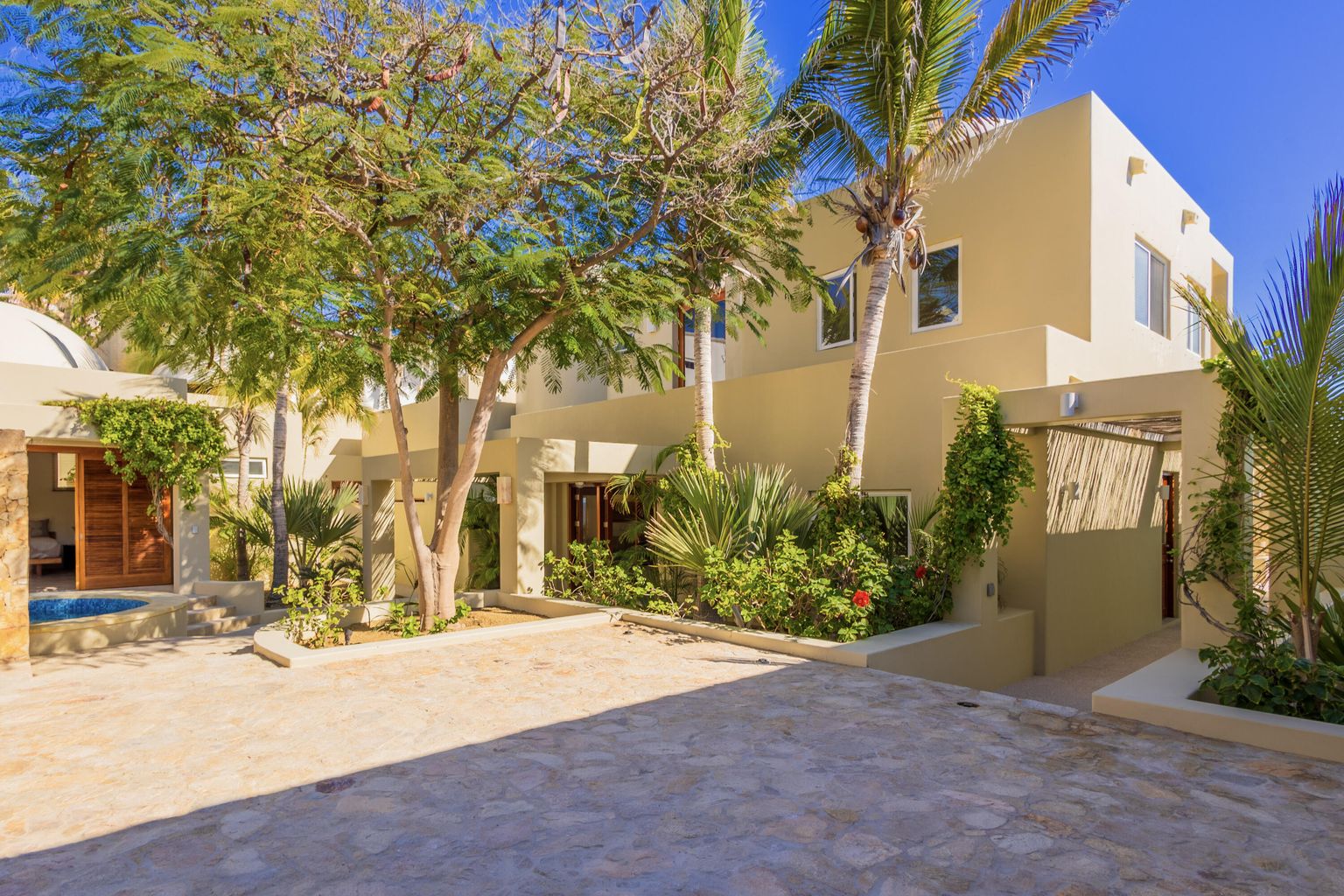 This magnificent beachfront estate offers a perfect blend of elegance, privacy, and breathtaking ocean views. This 7-bedroom property is laid out as follows: The main house features three beautifully designed bedrooms, including an extraordinary primary suite that feels like a private retreat. Complete with two terraces overlooking the ocean, a cozy TV nook, a spacious office or multipurpose room, and a private gym, the suite is a haven of comfort and sophistication. The main house opens to a resort-style pool area with palapa pergolas, a fire pit, and a large sunbathing deck, creating a seamless indoor-outdoor living experience.