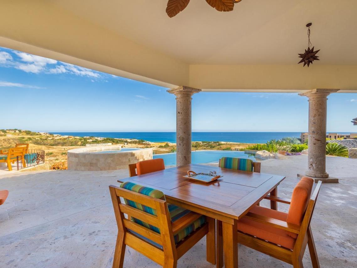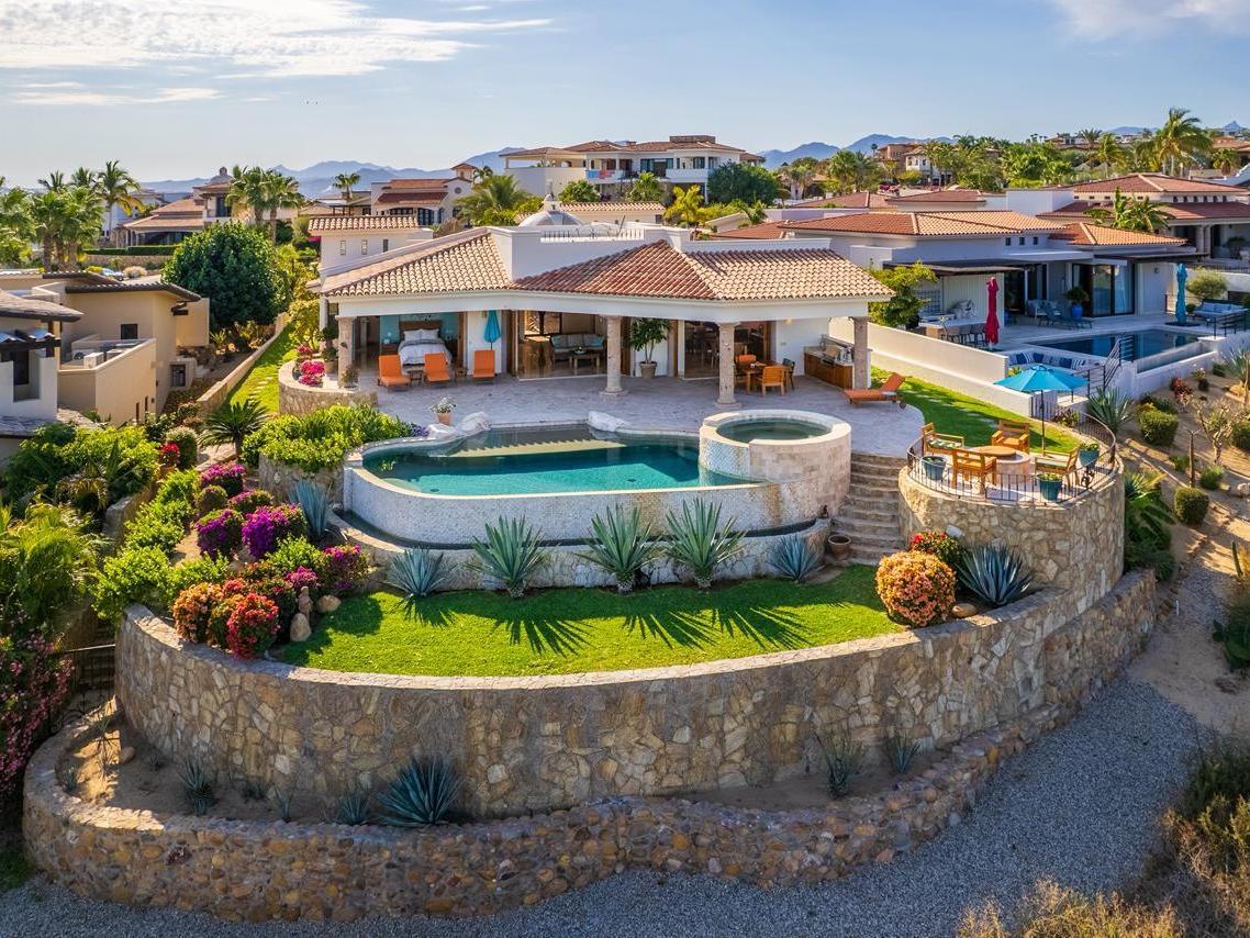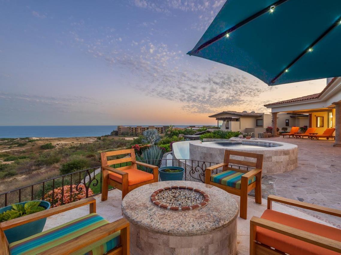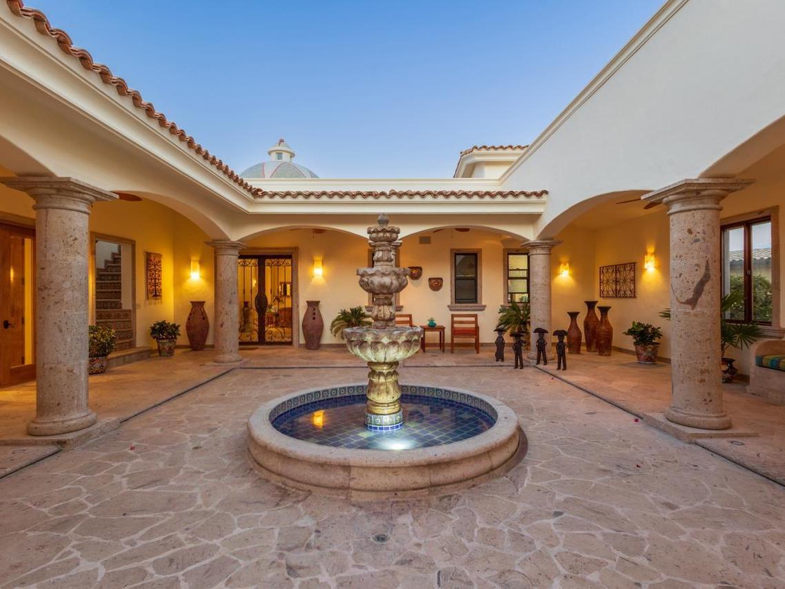 Cozy, charming and exceptionally private, La Noria 104 is set on a ridge within a double-gated community overlooking the Sea of Cortez and the Puerto Los Cabos Golf Course. Designed around a serene interior courtyard, the home blends traditional architectural character with a warm transitional style. Beautifully maintained, the residence offers seamless indoor-outdoor living. Expansive outdoor spaces feature a built-in BBQ, dining and lounge areas, a sparkling pool, Jacuzzi, and fire pit--perfect for entertaining or relaxing while enjoying both shaded retreats and sunny terraces. Additional features include a two-car garage, a rooftop terrace with sweeping views, and plenty of storage throughout. Ideally located just two minutes from the Puerto Los Cabos Golf Course, five minutes from the