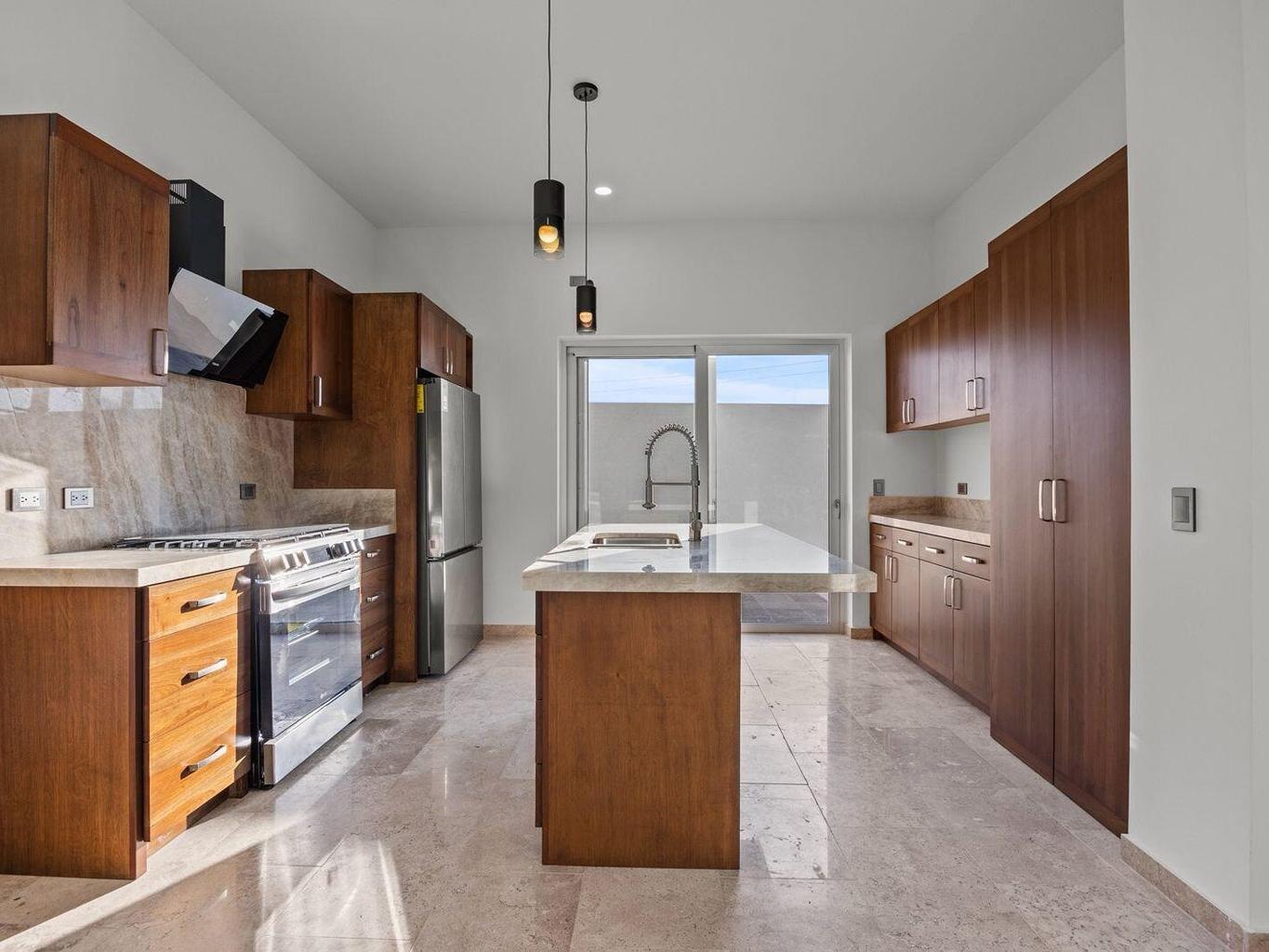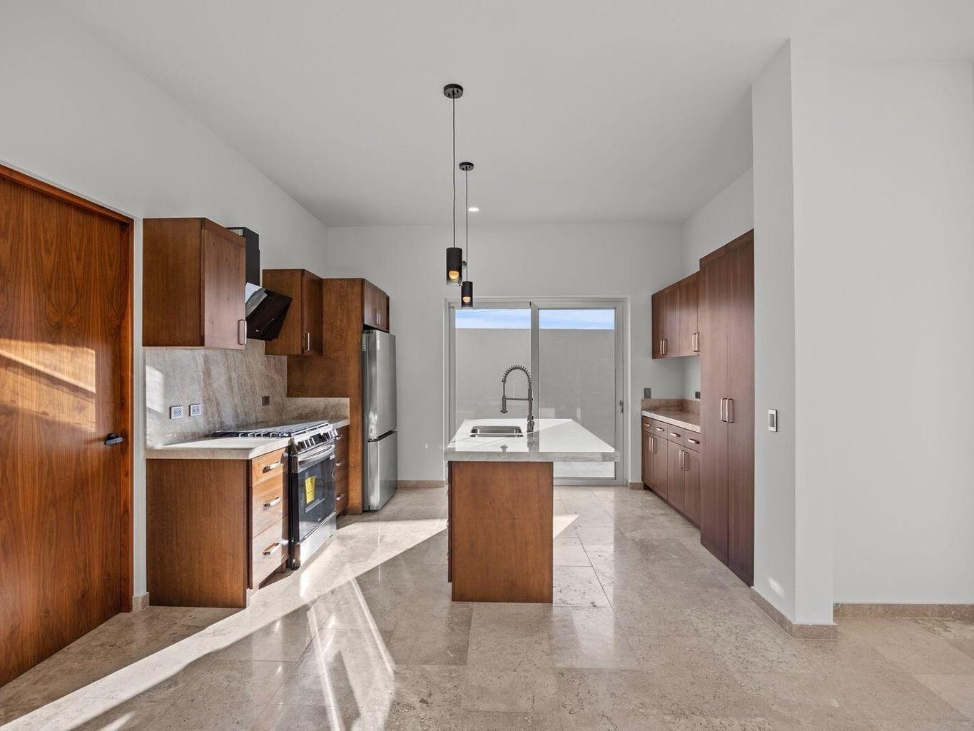House with 3 bedrooms, 2 full bathrooms, 2 half bathrooms, a fully equipped kitchen; Caoba wood and Taj Mahal quartz countertops, Nogal interior doors, fans included, marble bathroom countertops, paving stones in the garage, and the terrace has a volcanic rock, cistern with a 2,800-liter tank and a 1,200-liter water tank.